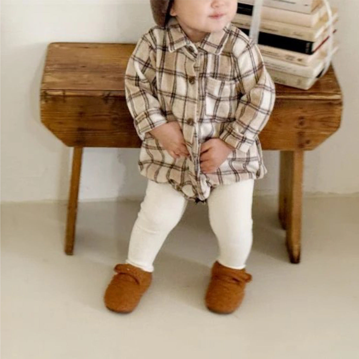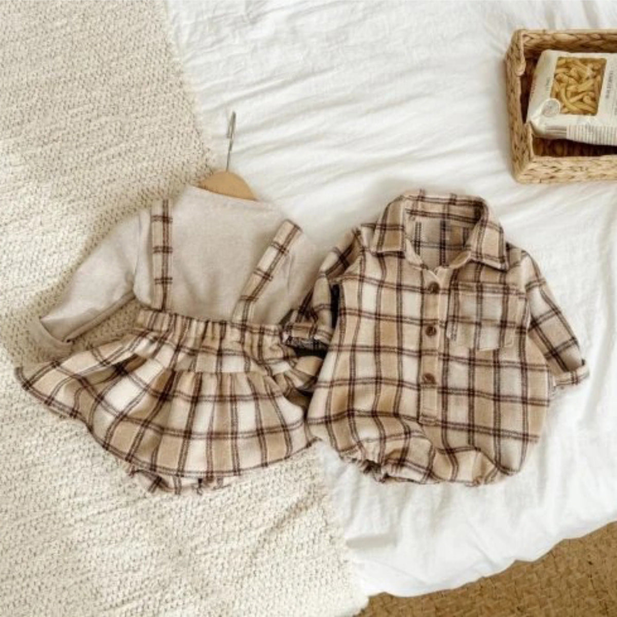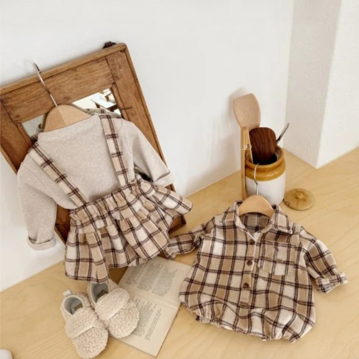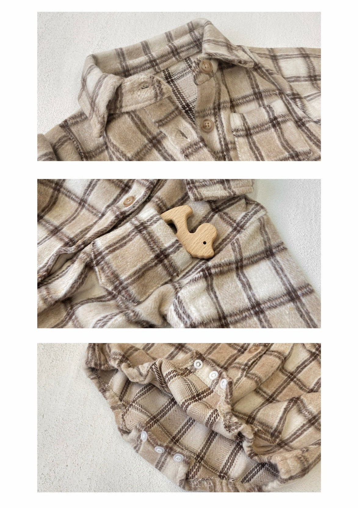 長袖ロンパース チェック シャツ襟 ボディスーツ【mh0011633】