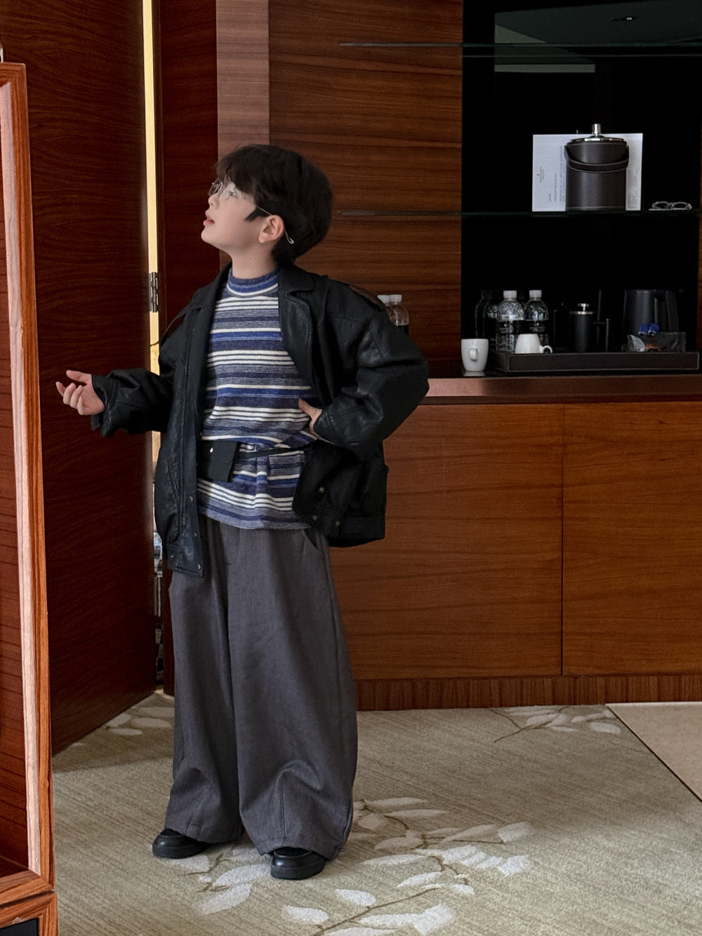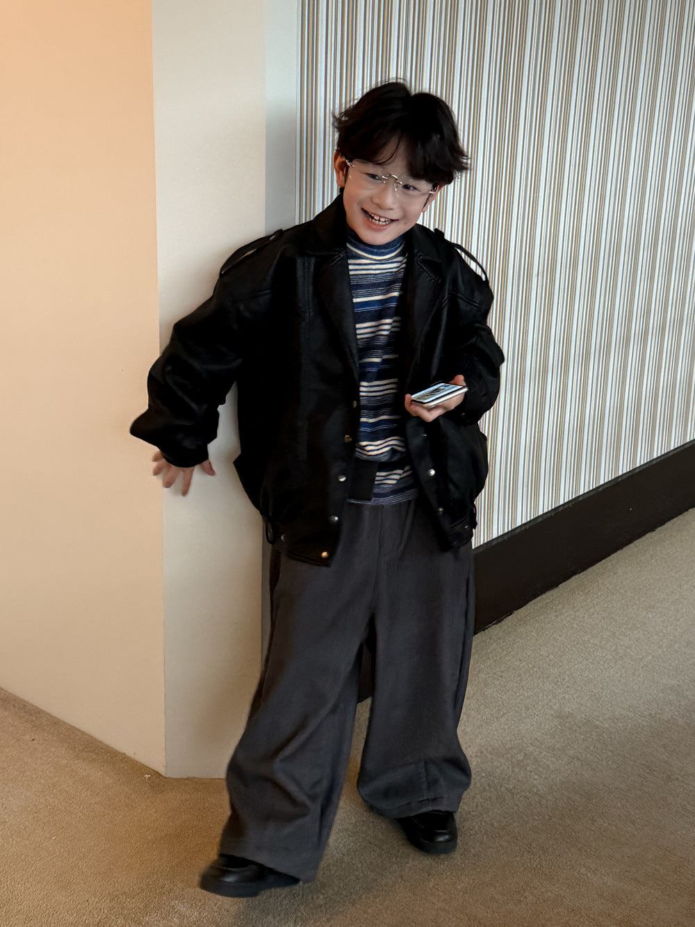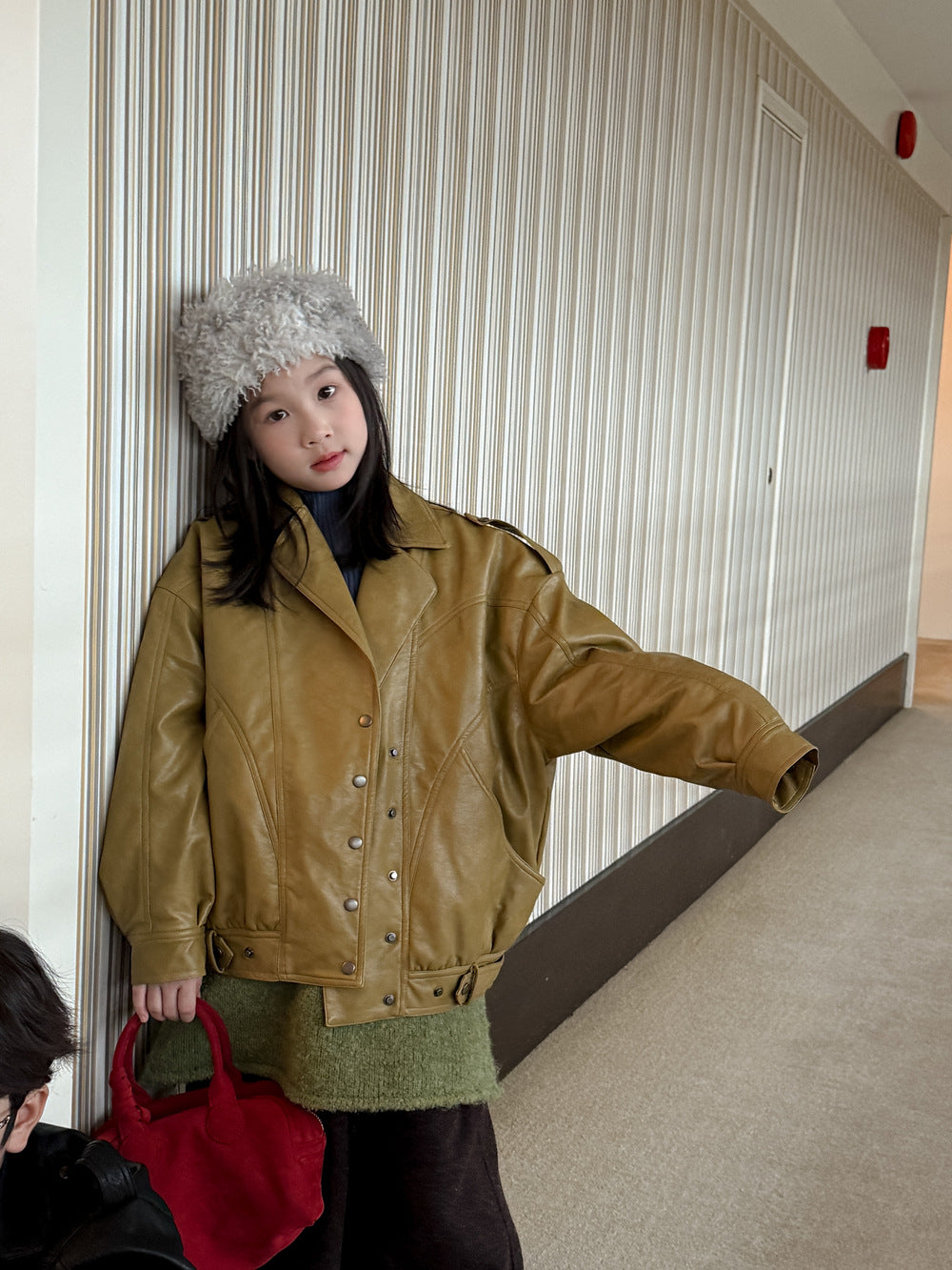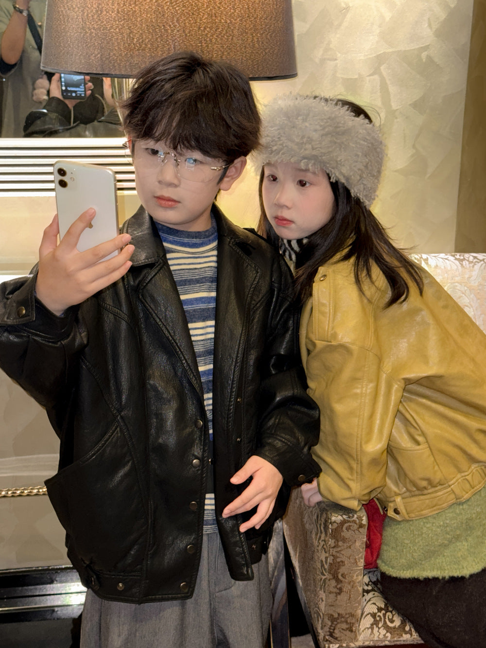 フェイクレザージャケット キッズ 厚手 ラペル モード ライダース【mh0011668】
