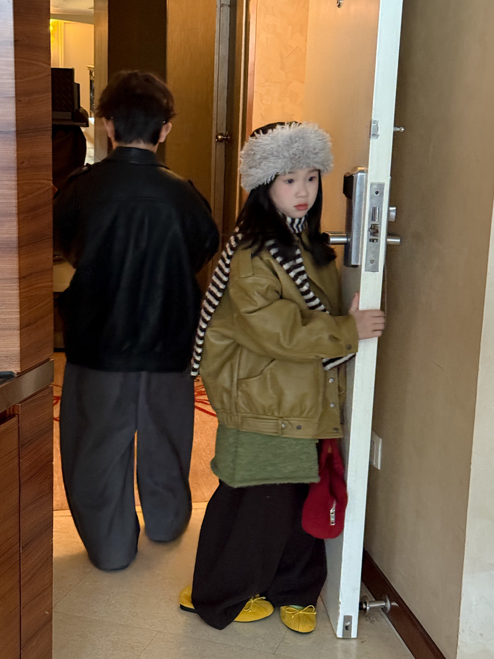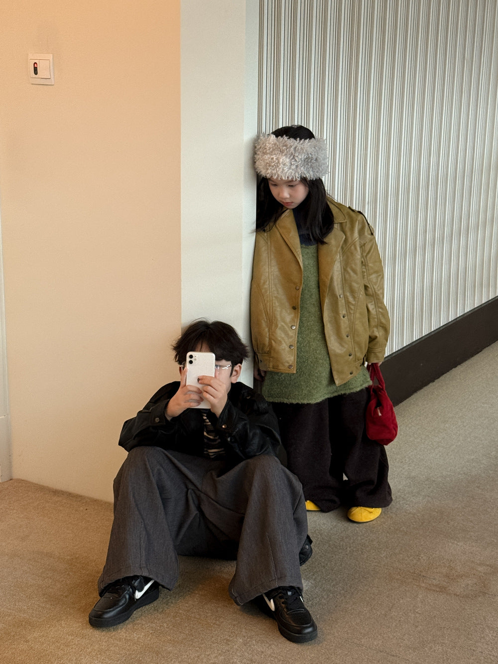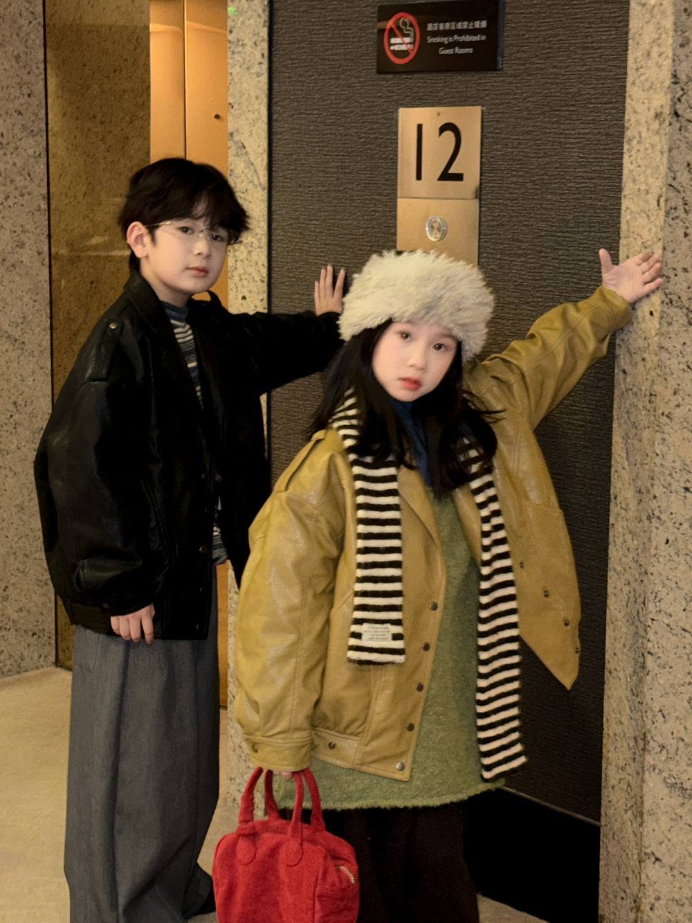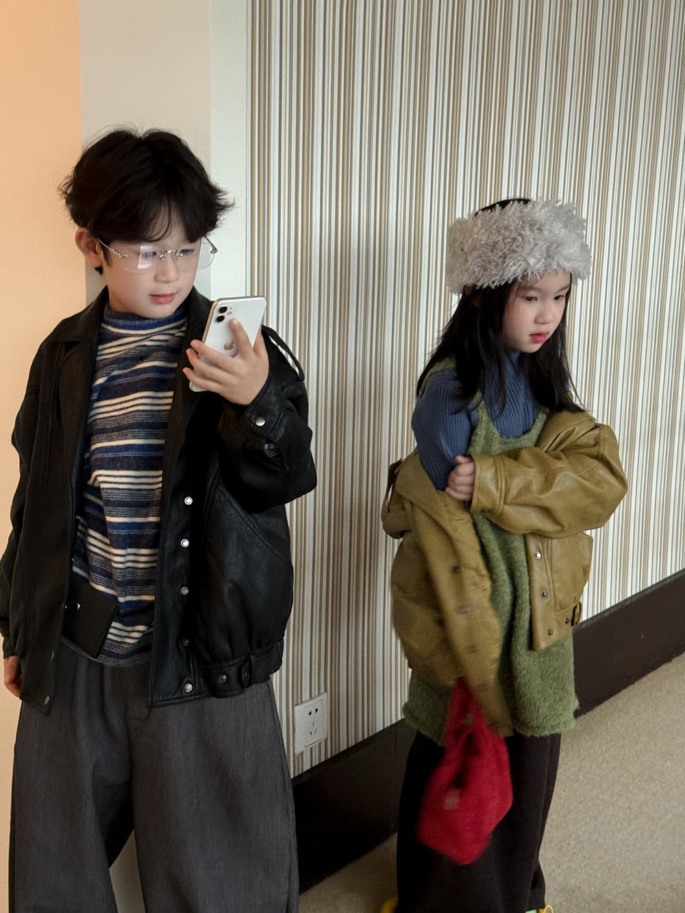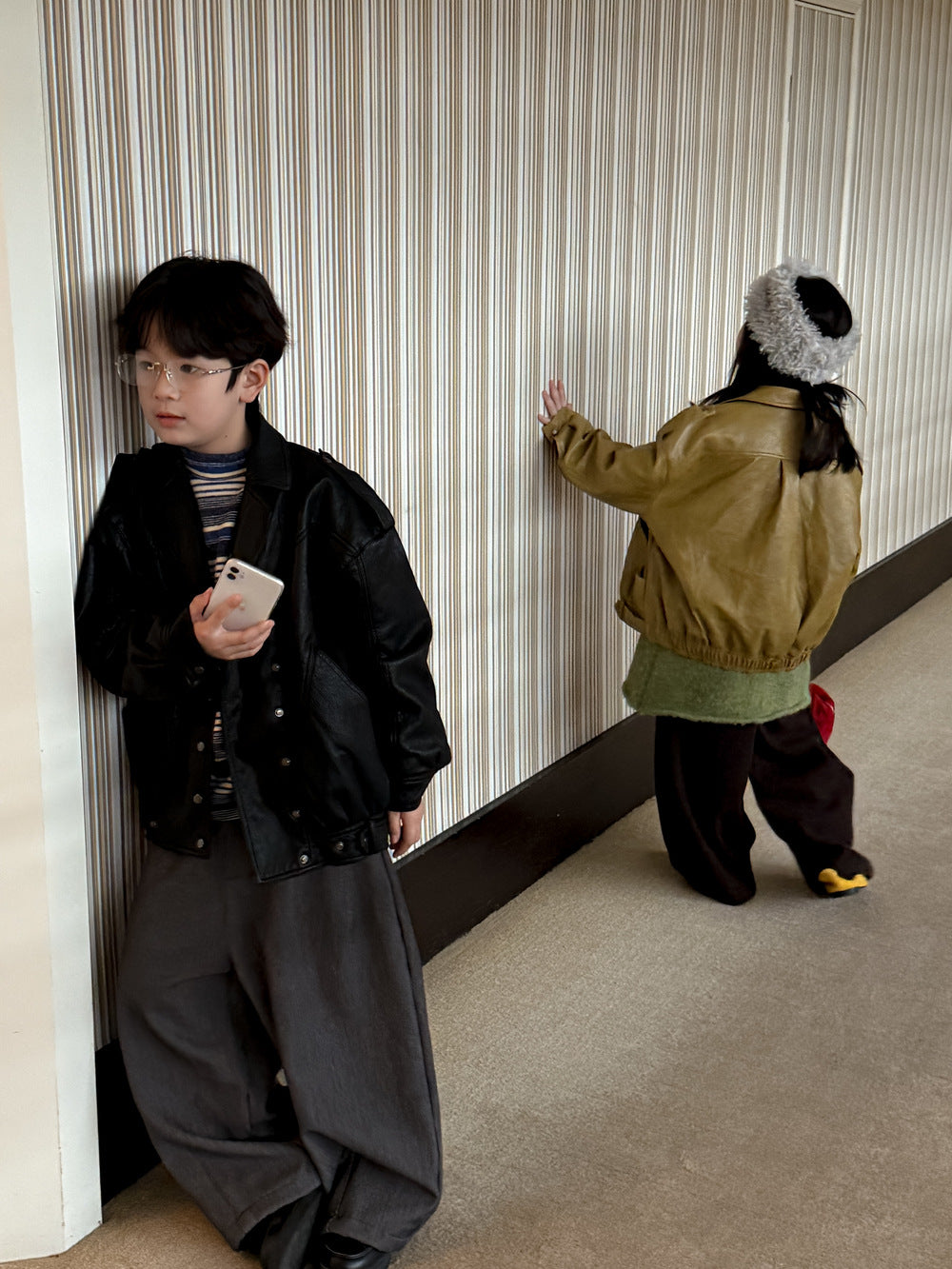 フェイクレザージャケット キッズ 厚手 ラペル モード ライダース【mh0011668】
