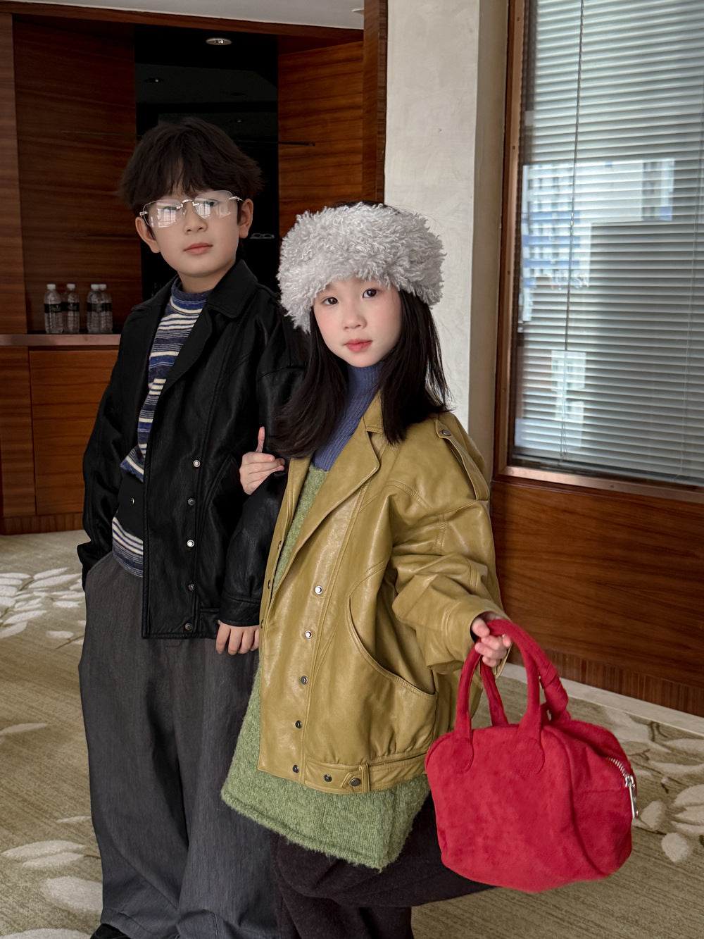 ラペルデザインがクールでハンサムな印象を与える、キッズ用のフェイクレザージャケットです。厚手の裏地と中綿を施し、寒い日でも快適に過ごせる温かさを追求したアウター。本格的なライダースジャケットのディテールを取り入れながら、ベビーや子どもたちが着用しやすいモードな雰囲気に仕上げた子ども服です。いつものコーディネートに羽織るだけで、ぐっとおしゃれでエッジの効いたスタイルが完成する一枚です。