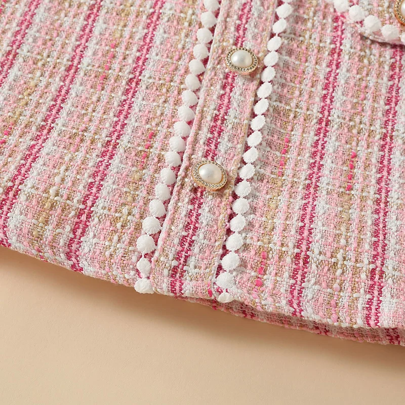 この可愛いキッズ ツイード チェック 半袖 パフスリーブ お出かけ タイト ワンピースは、おしゃれな素材で仕立てられているので、おしゃれキッズにぴったりなデザインです。ピンクの色とツイード チェックが、華やかな印象を与えるので、お出かけの際の選択肢でいかがでしょうか。