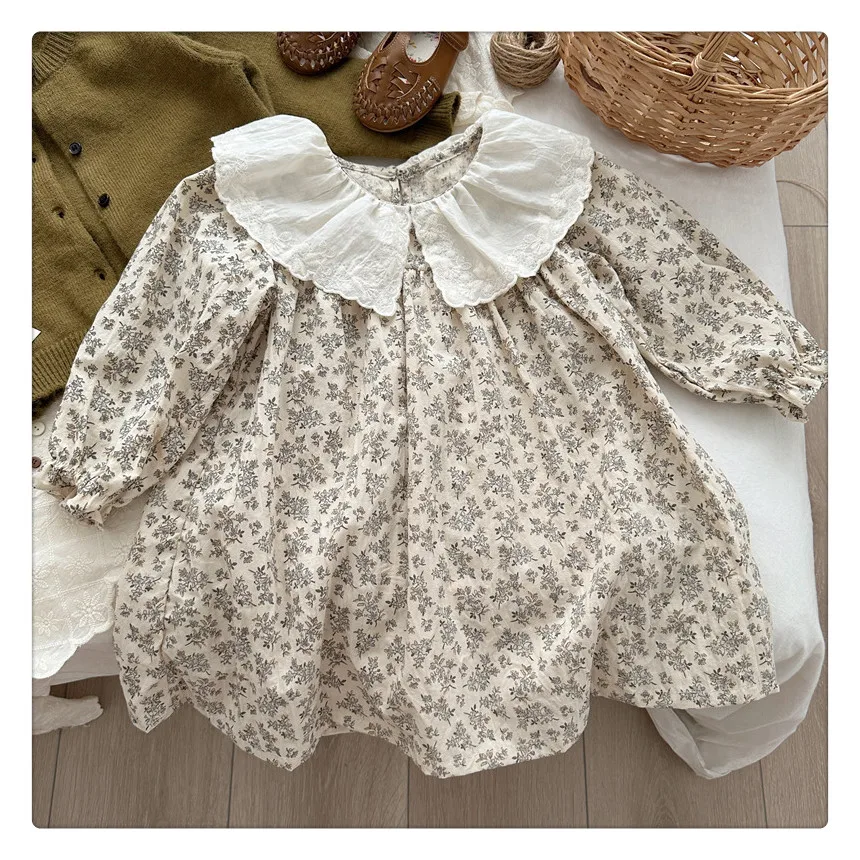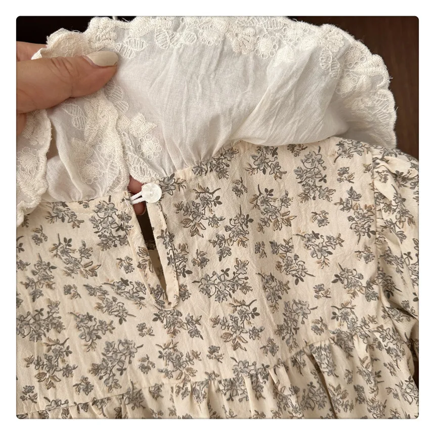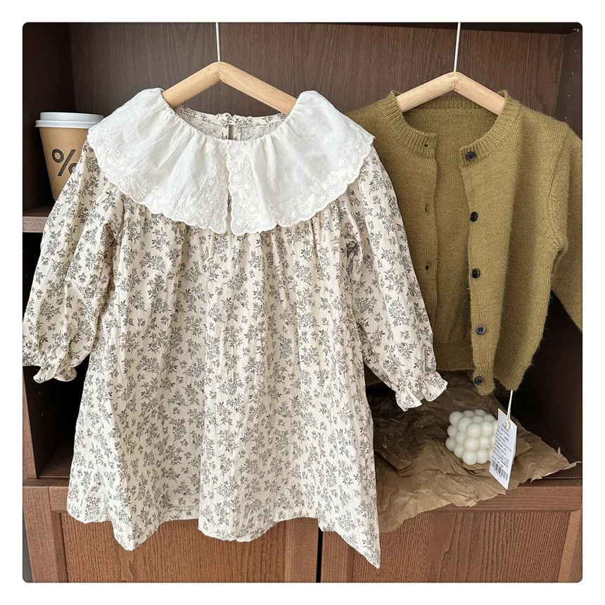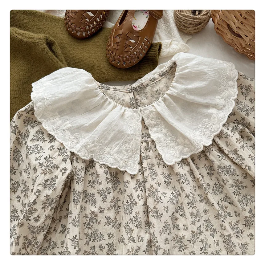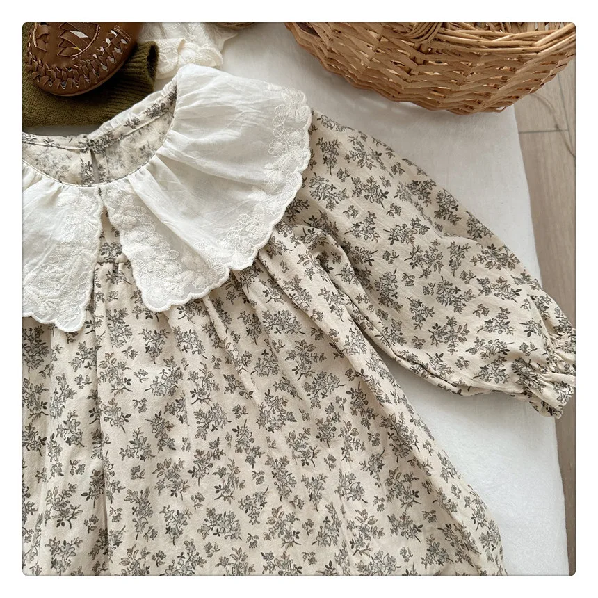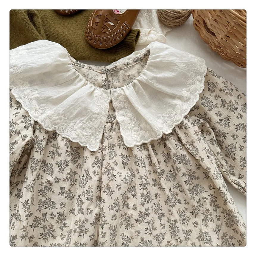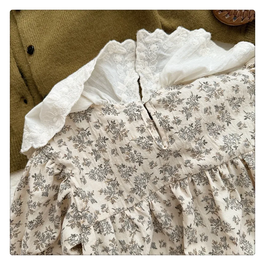 キッズ レース ビッグカラー フラワー 花柄 長袖 ワンピース ガールズ