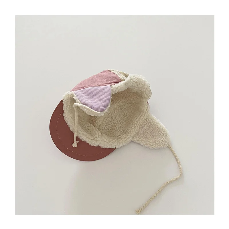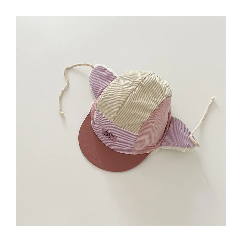 キッズ帽子 耳付き帽子 裏ボアフリースキャップ パッチワークデザインハット 3カラー ユニセックス 男の子 女の子 子供服