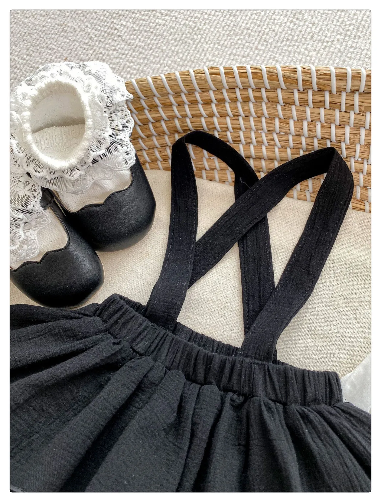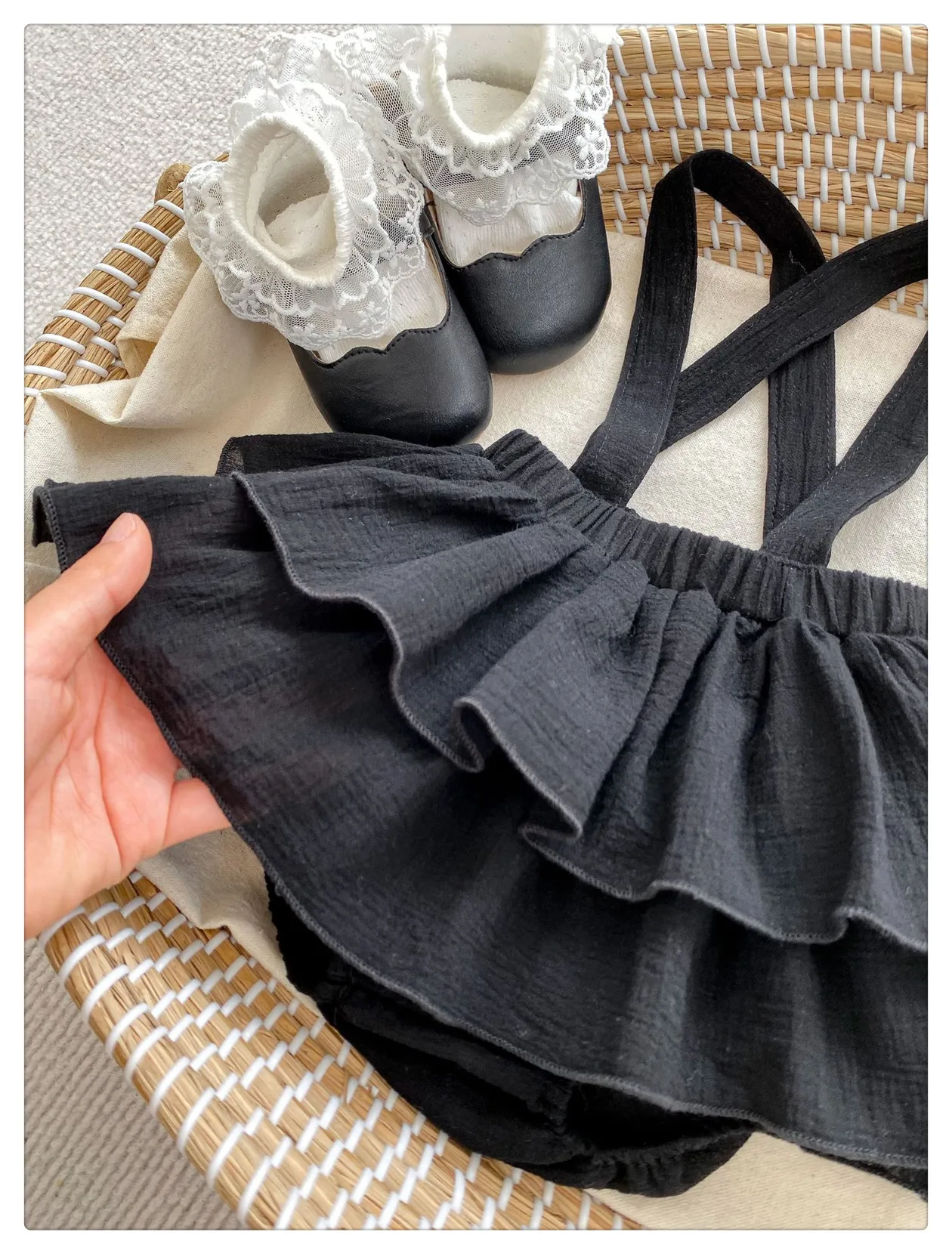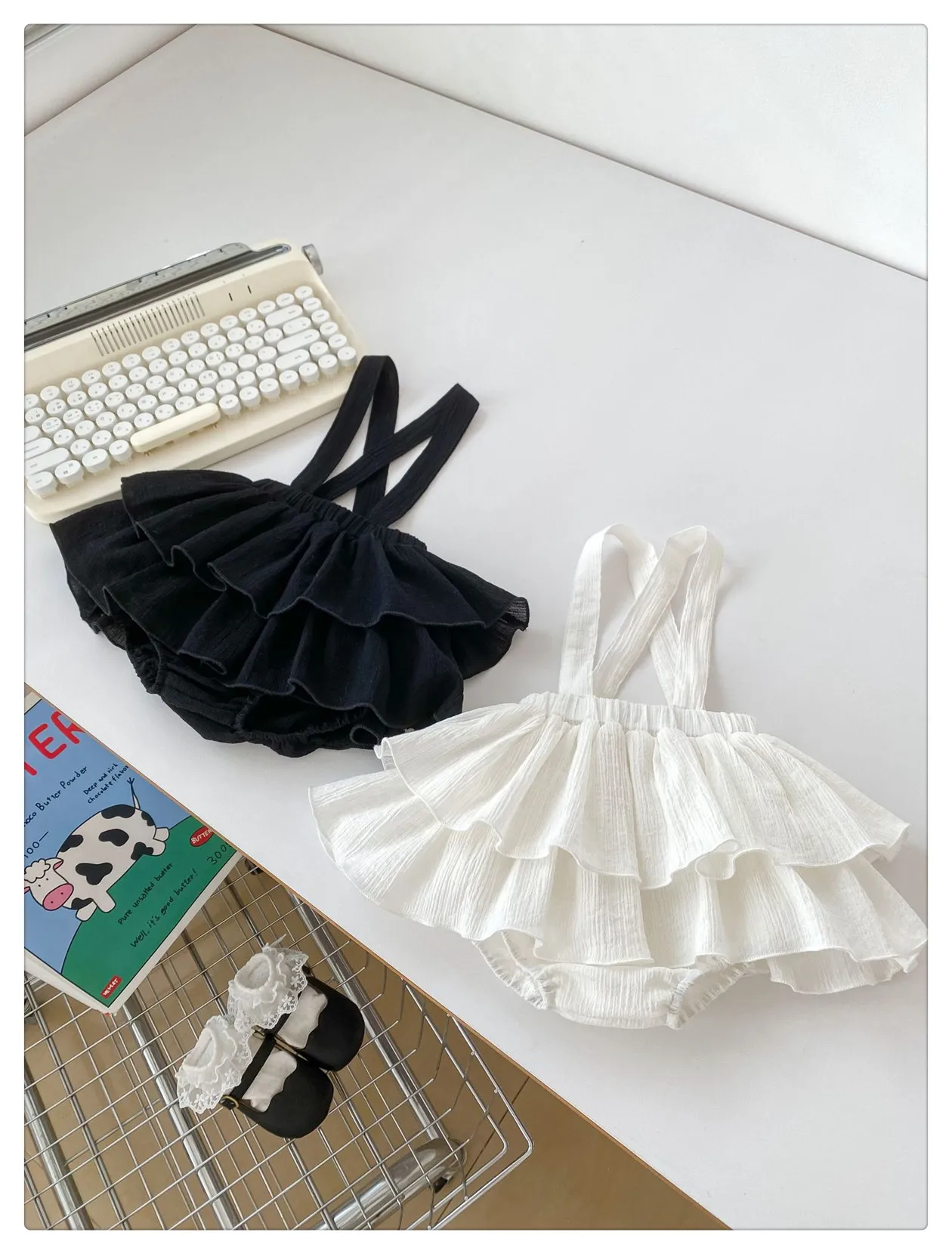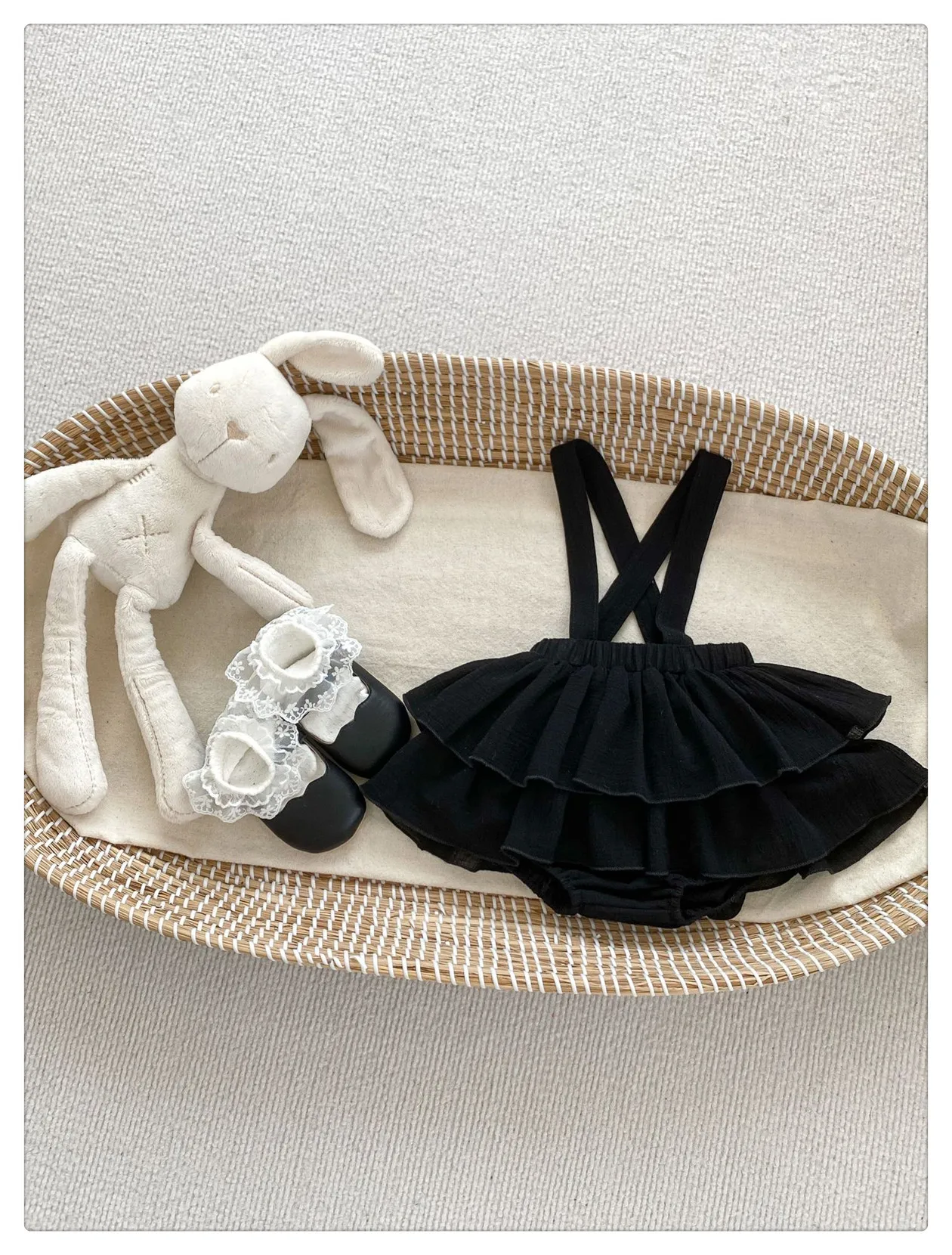 ベビーサスペンダーブルマ フリルケーキスカート ストラップブルマパンツ ブラック/ホワイト/2カラー