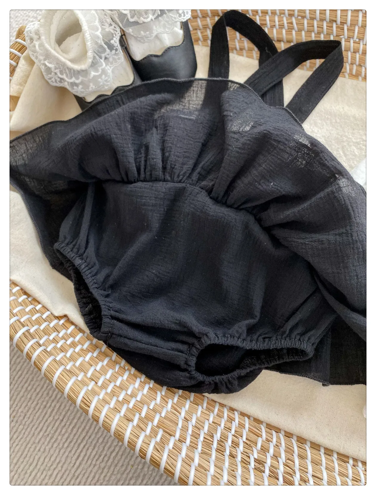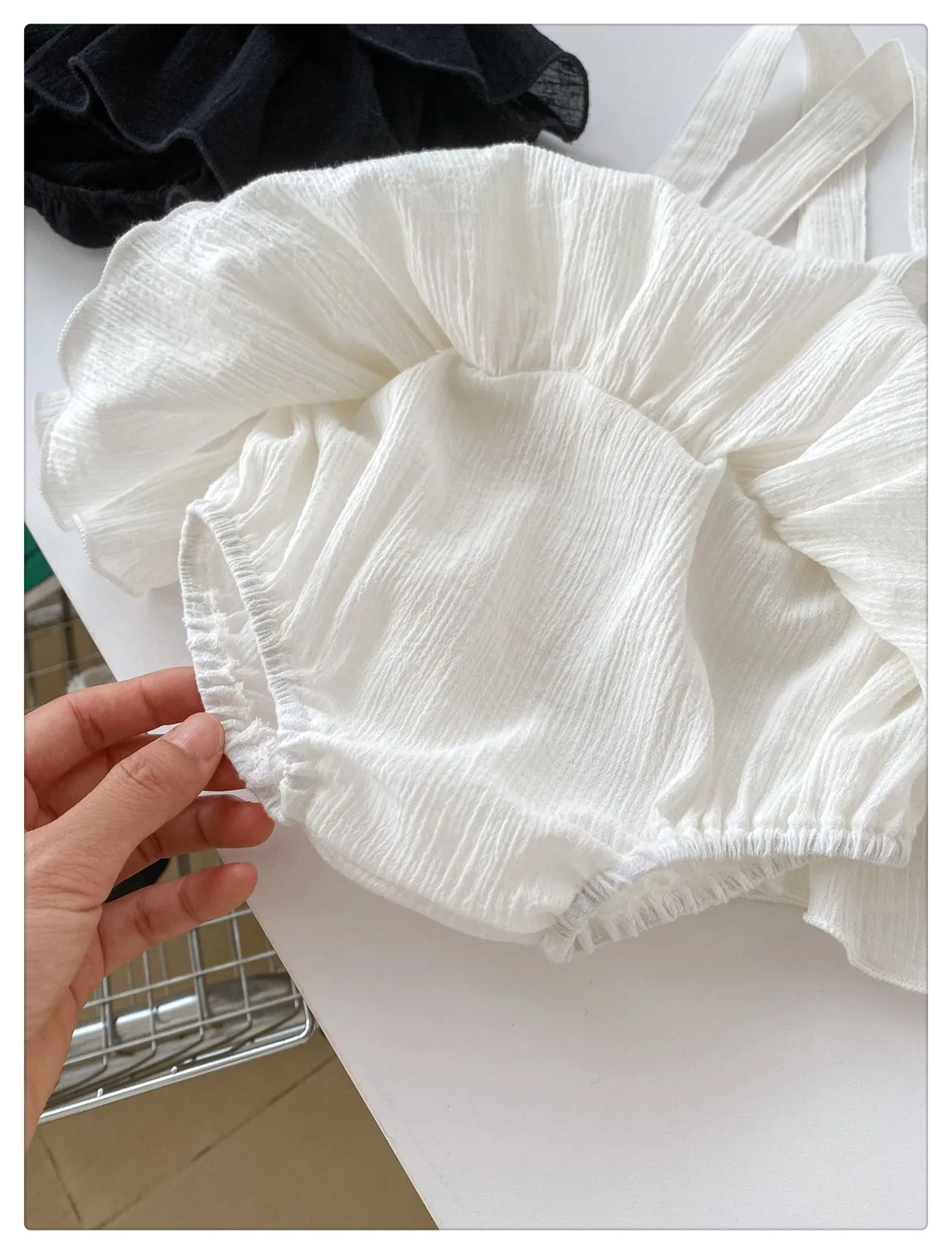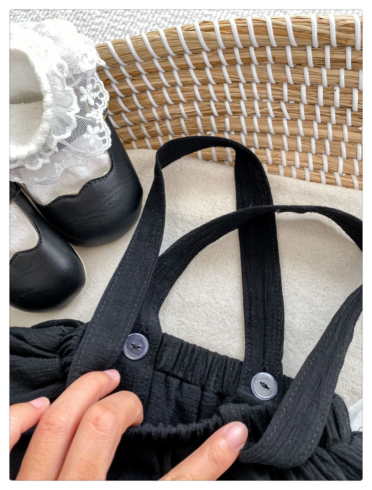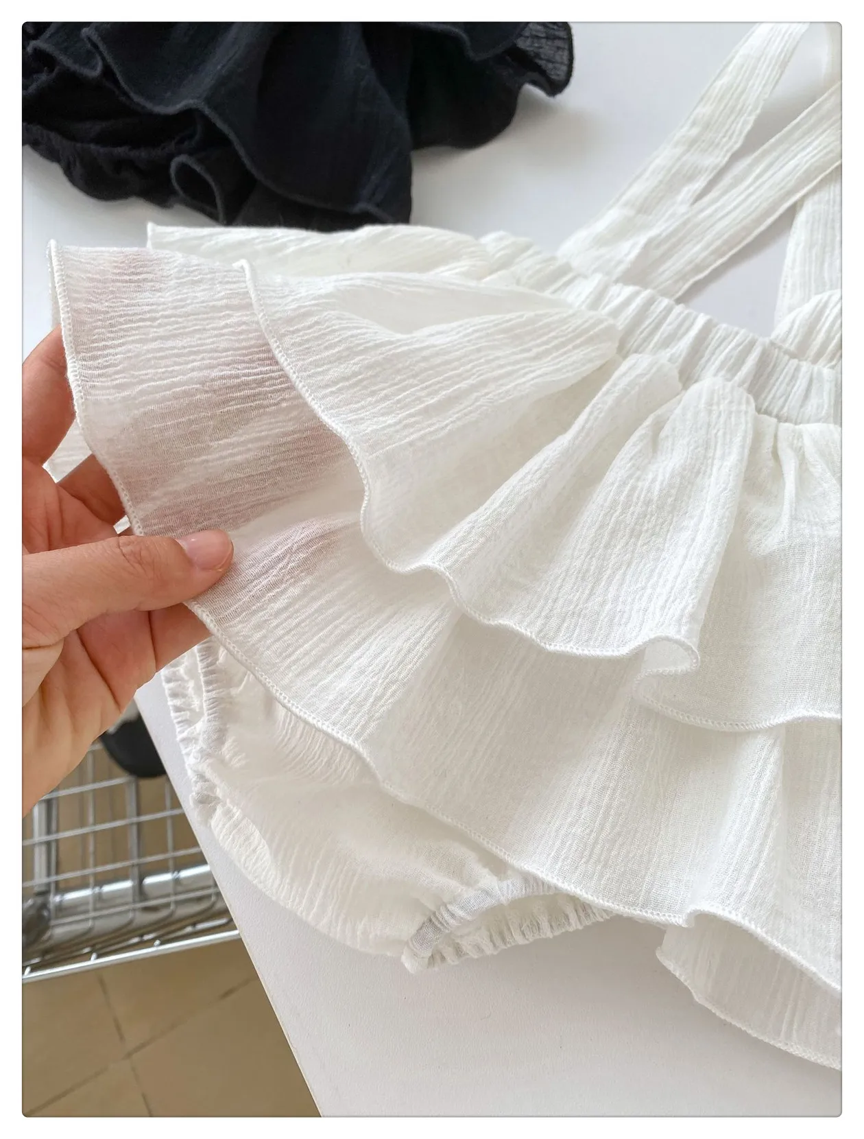 ベビーサスペンダーブルマ フリルケーキスカート ストラップブルマパンツ ブラック/ホワイト/2カラー
