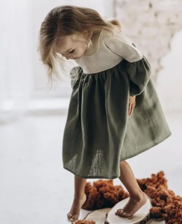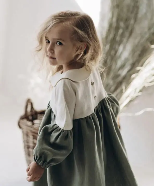 季節を問わず、おしゃれなキッズワンピースが登場しました。長袖で、さりげない切り替えがポイント。丸襟が女の子らしさを引き立てます。ブラウンとグリーンの2カラーからお選びいただけます。着心地の良い素材で、お子様が快適に過ごせます。普段使いからちょっとしたお出かけまで、様々なシーンで活躍する一着です。
