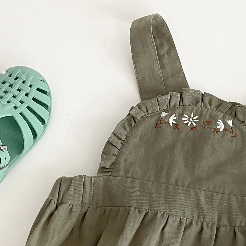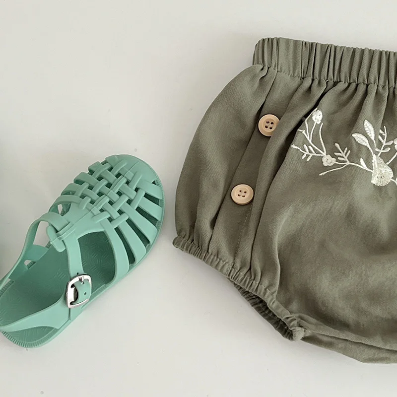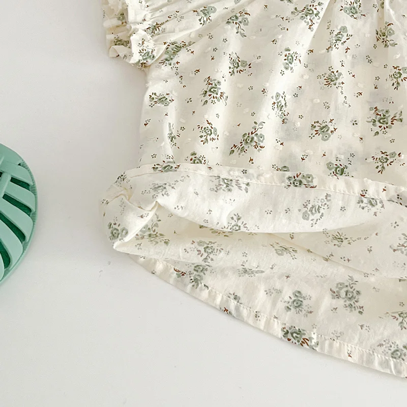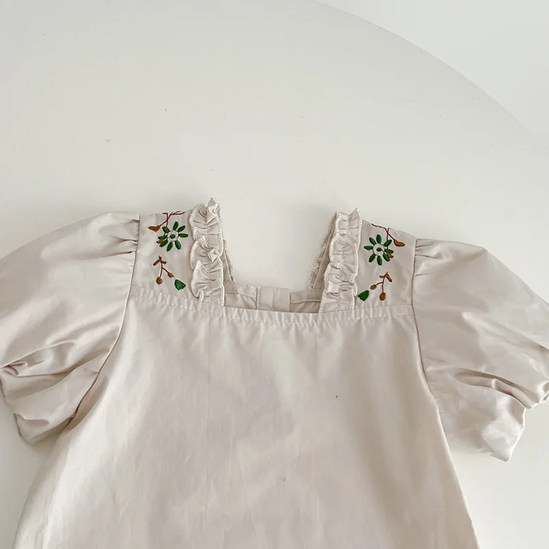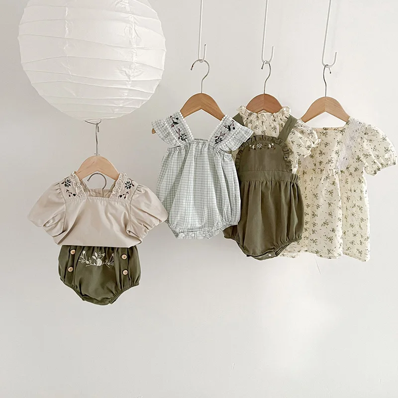 ベビー フラワー 刺繍 半袖 ノースリーブ ロンパース ブルマパンツ 半袖 ブラウス トップス【mh0001513】