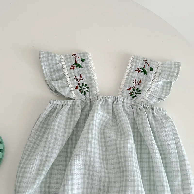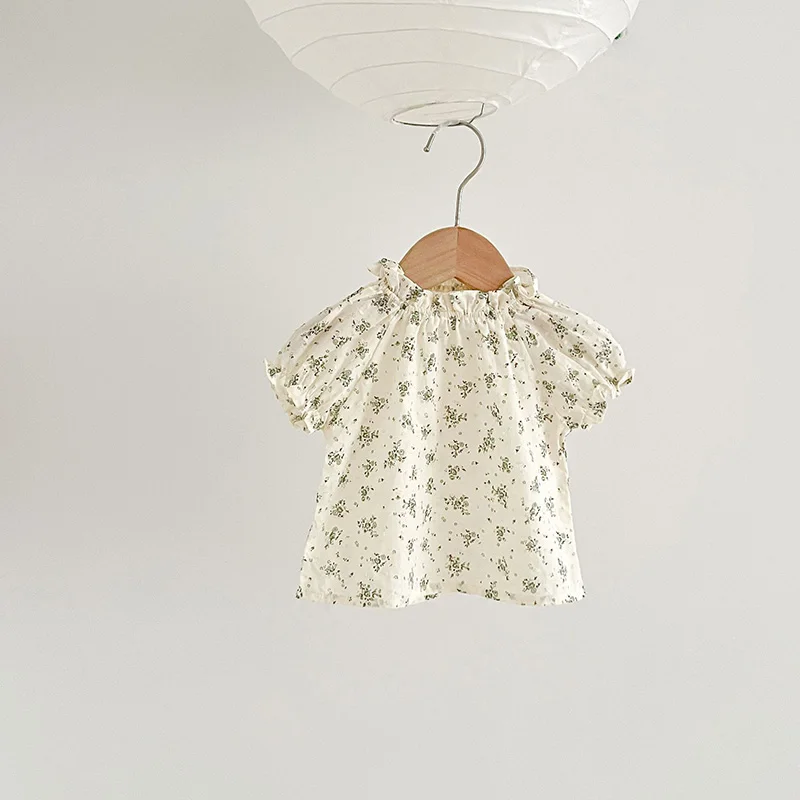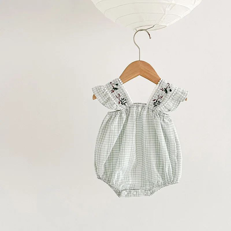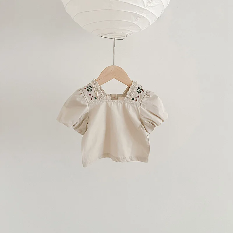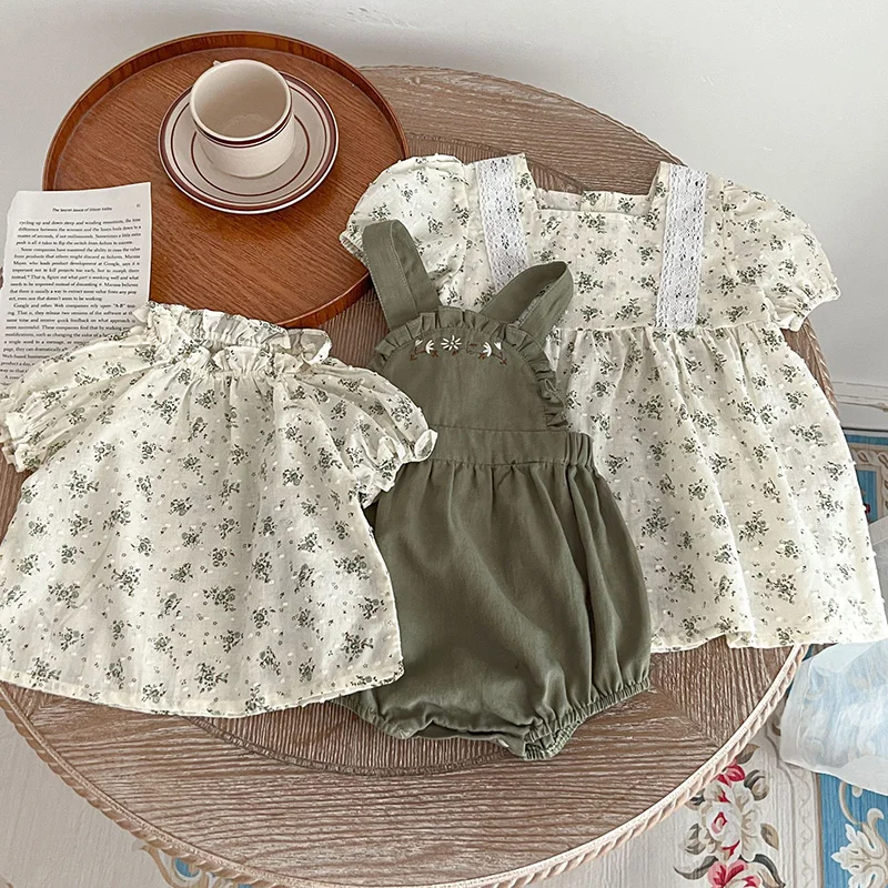 ベビー フラワー 刺繍 半袖 ノースリーブ ロンパース ブルマパンツ 半袖 ブラウス トップス【mh0001513】