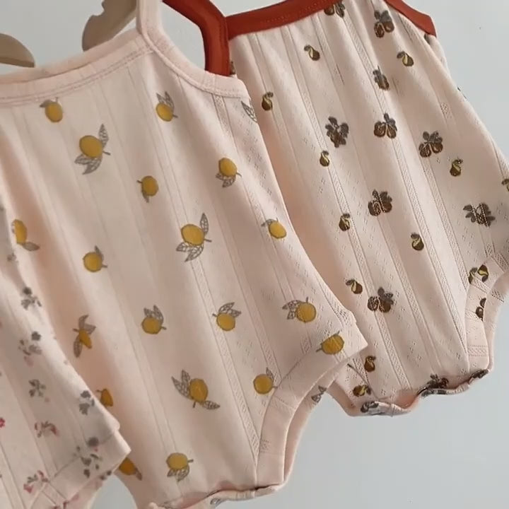 ベビー メッシュ キャミソール ロンパース レモン フラワー 洋梨【mh0001810】