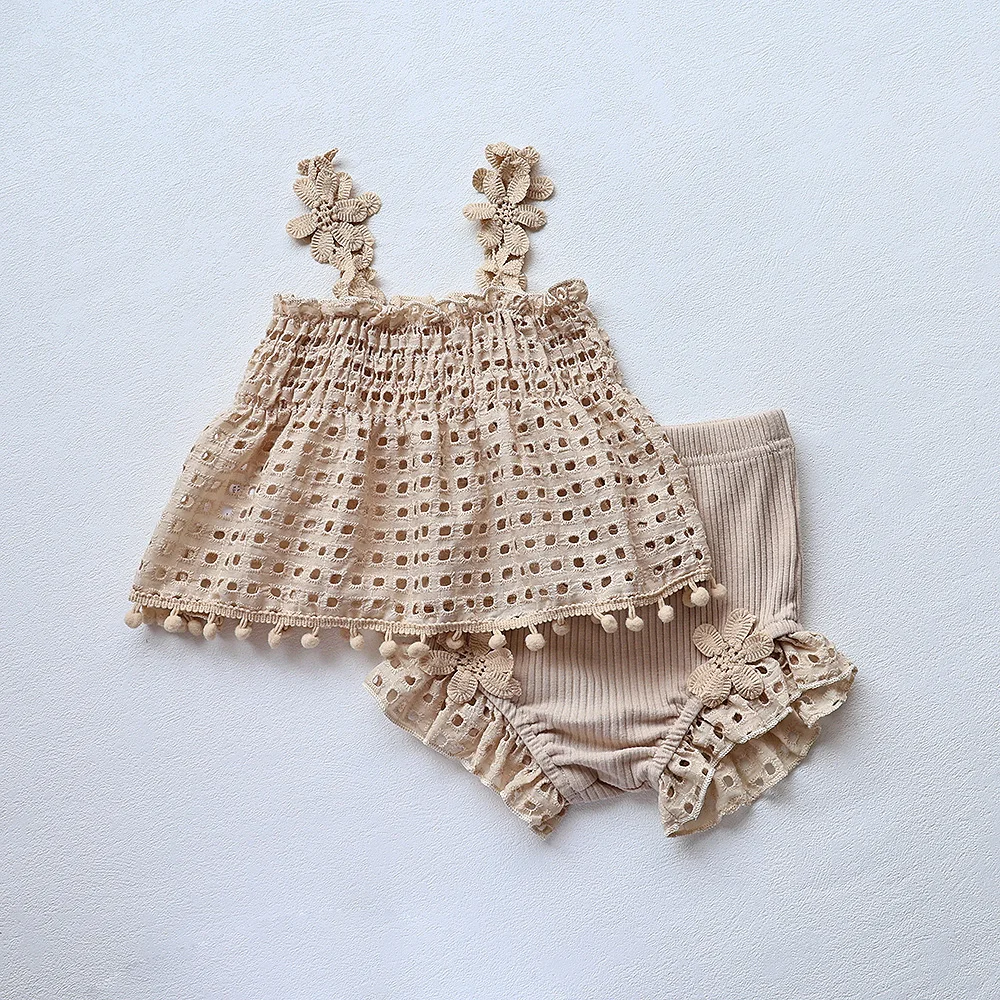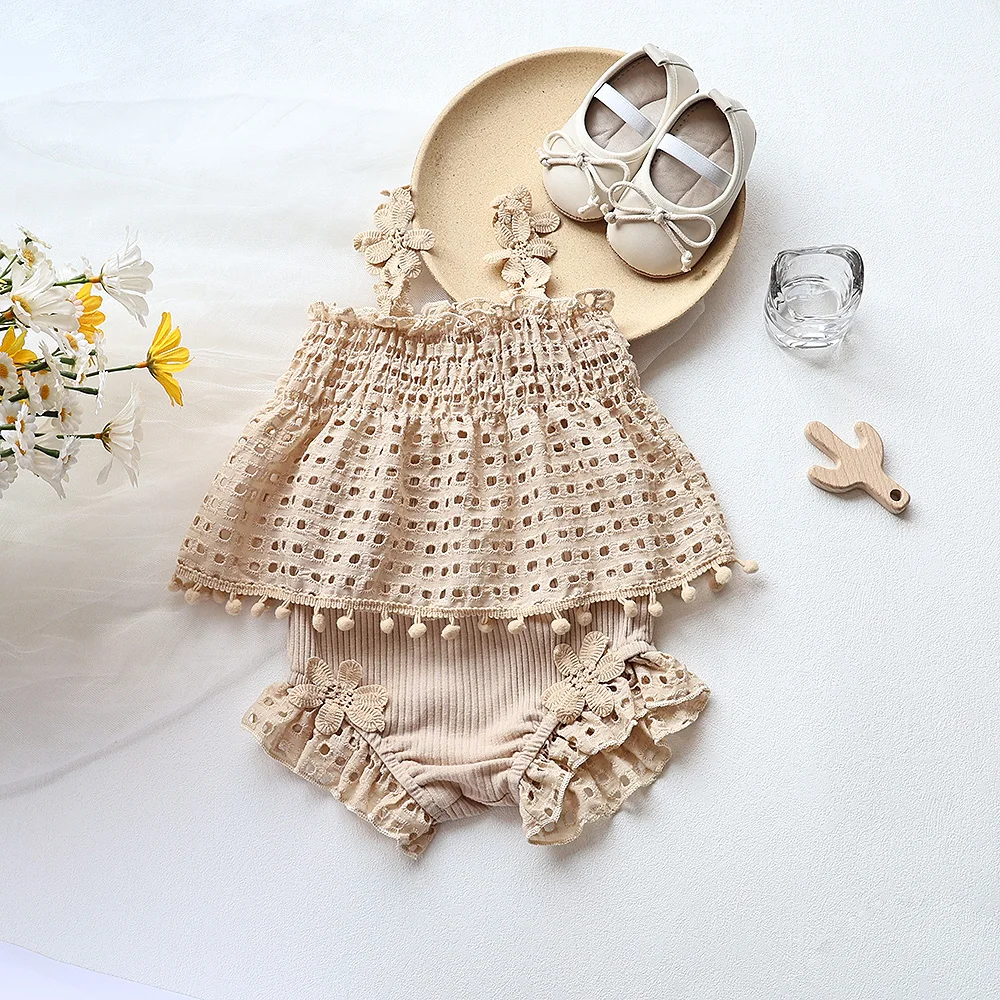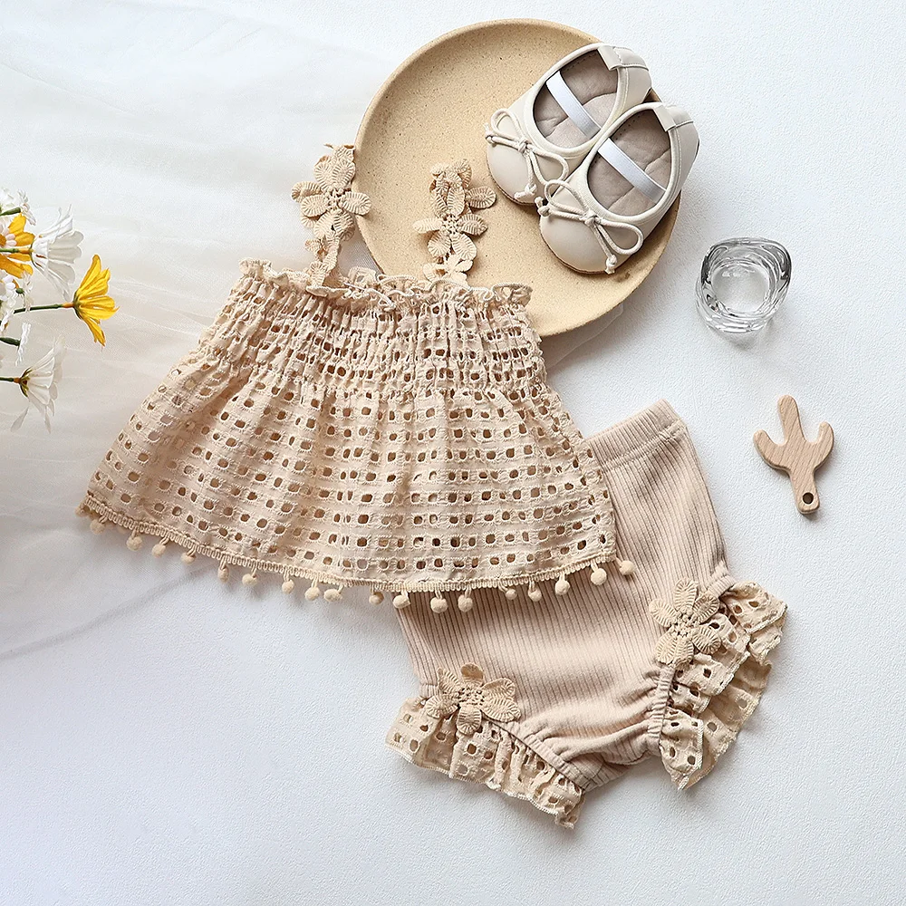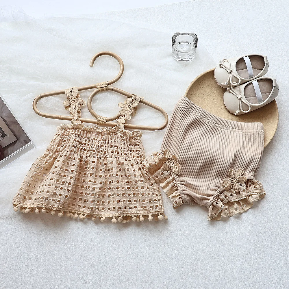 ベビー セットアップ レース フラワー キャミソール チュニック ブラウス フリル ブルマパンツ ショートパンツ ガールズ【mh0002162】