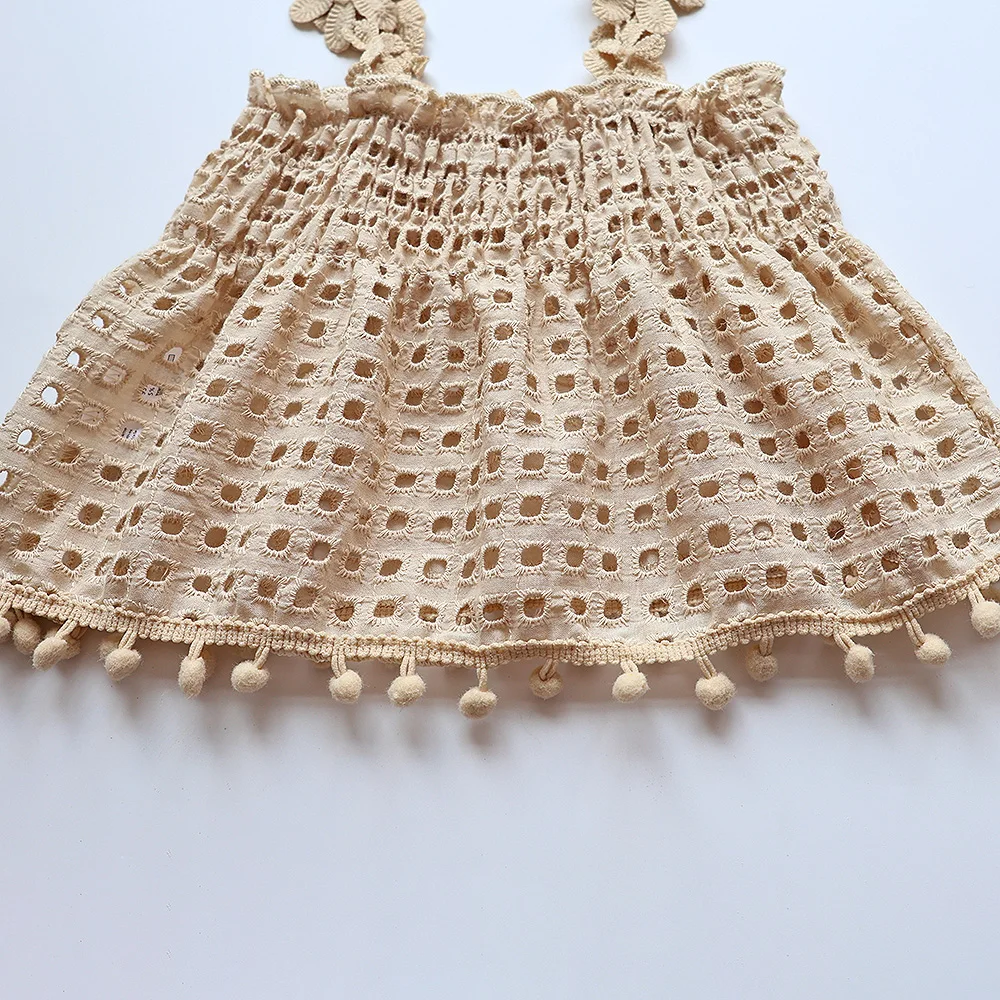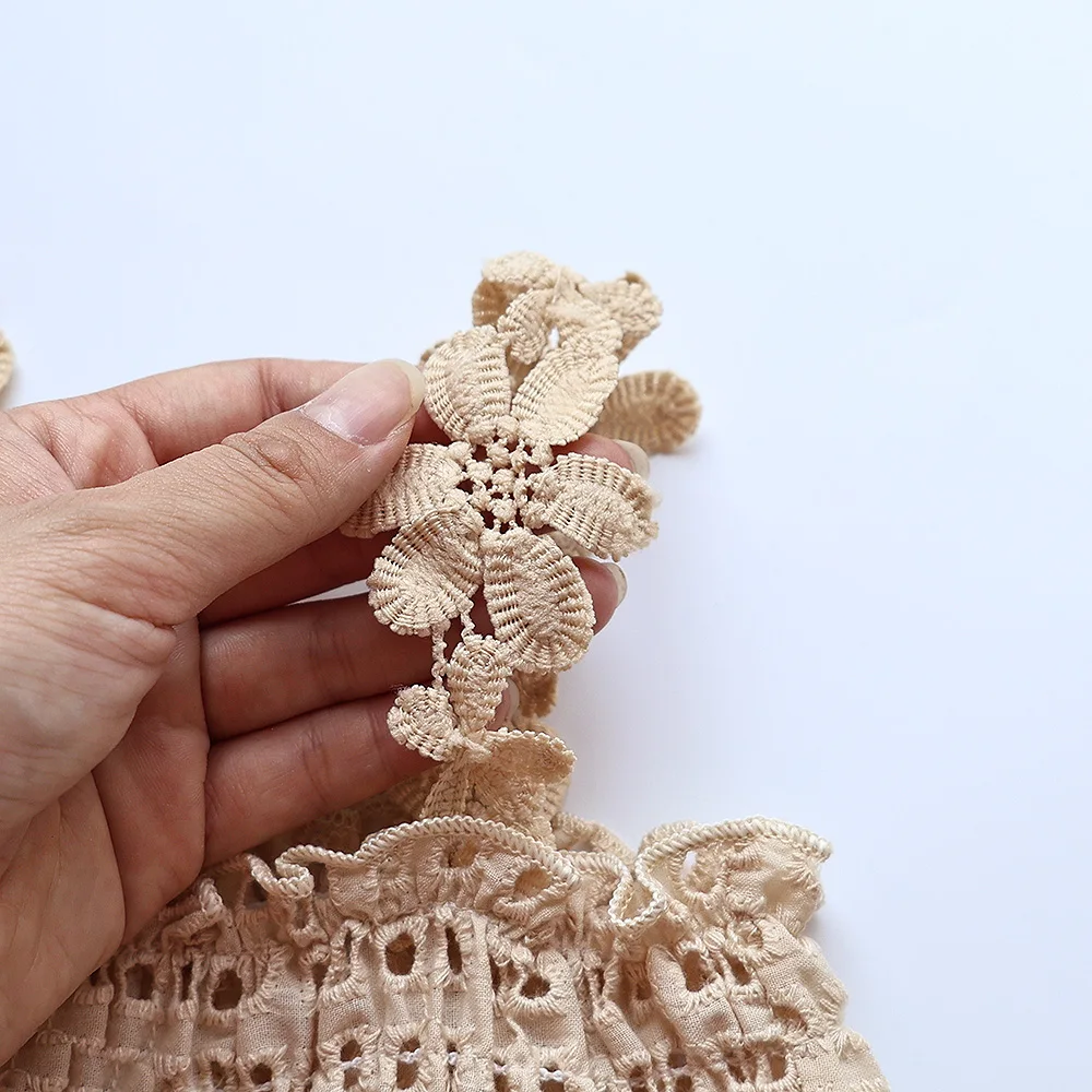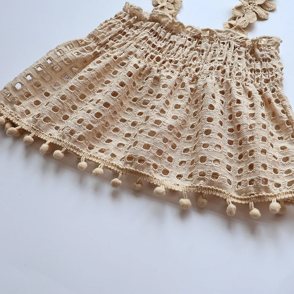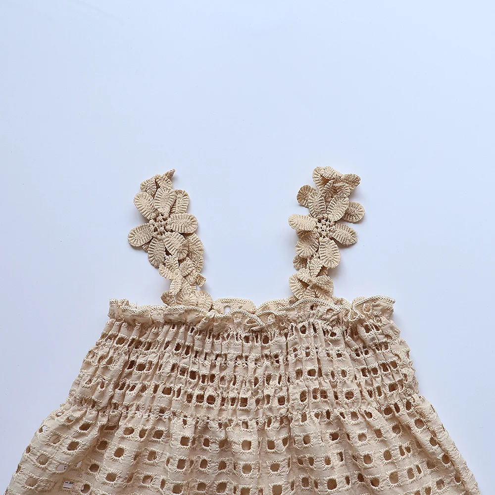 繊細なレースフラワーデザインが魅力のベビーセットアップです。キャミソールチュニックブラウスとフリル付きブルマパンツの組み合わせで、涼しげで可愛らしいスタイルに仕上がります。軽やかな生地を使用し、赤ちゃんの肌にも優しい柔らかな着心地。キャミソールは裾にかけてふんわり広がるシルエットで動きやすく、ブルマパンツは伸縮性があり快適なフィット感を提供します。ガーリーな雰囲気がありながらも、カジュアルなシーンにもぴったりなデザイン。夏のお出かけや特別な日のコーディネートにおすすめです。