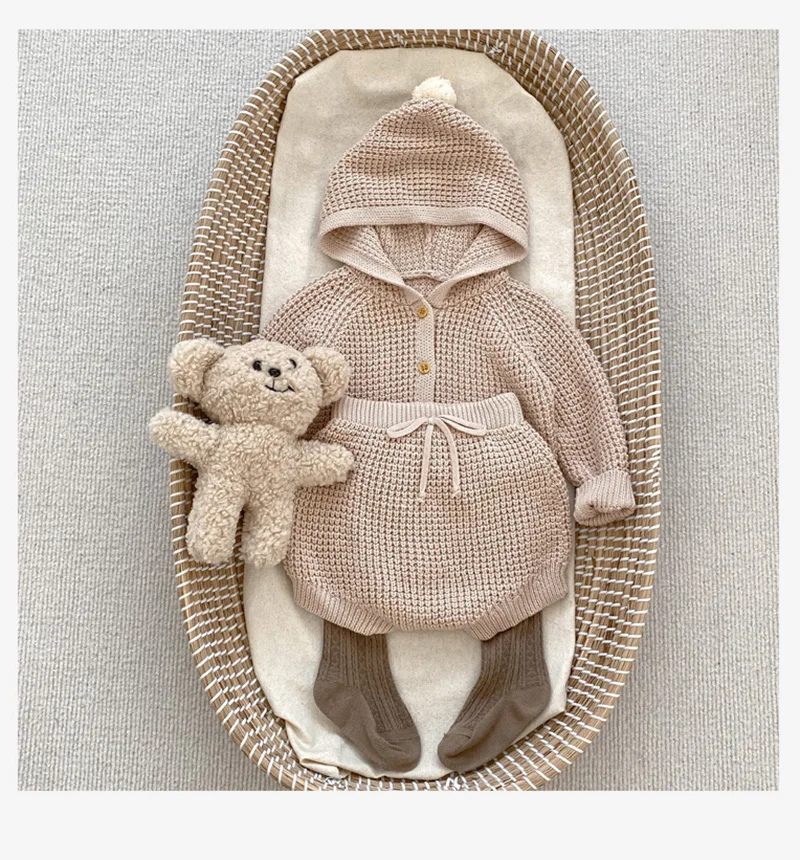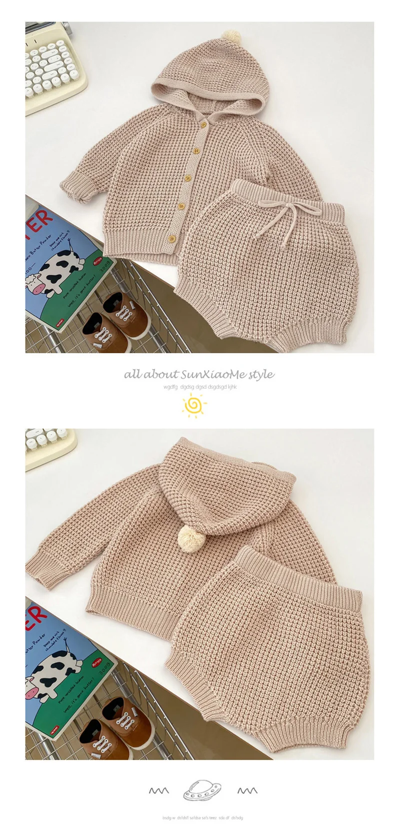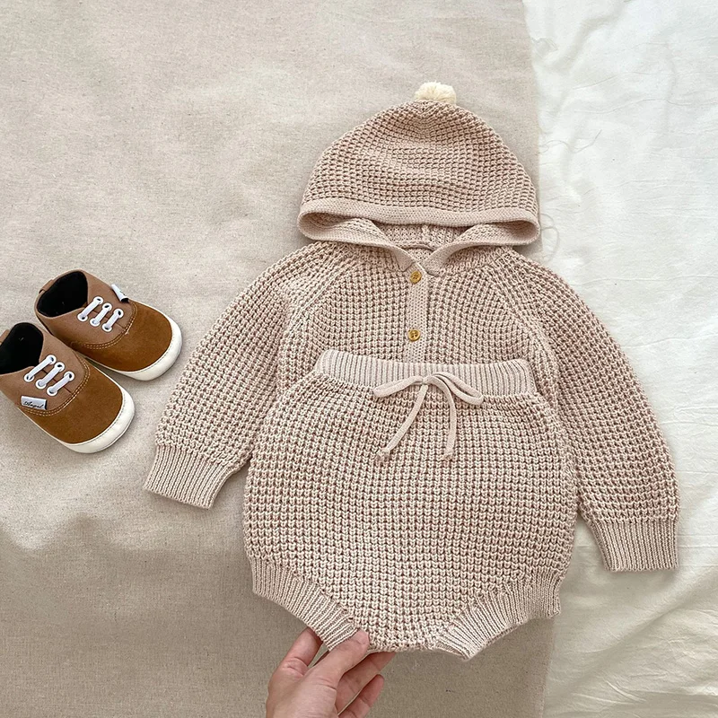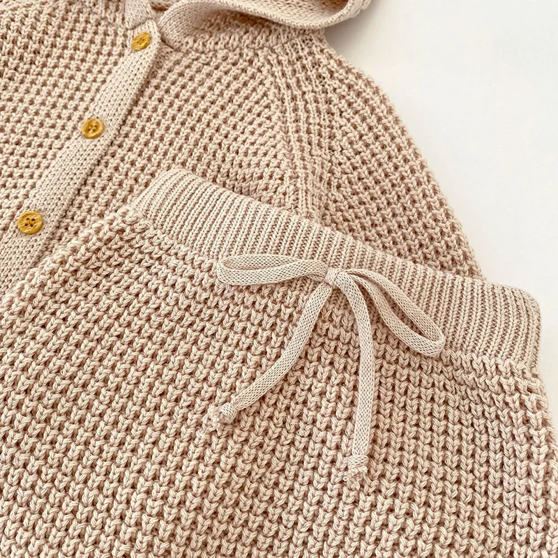 ベビー向けのニットフーディとブルマパンツは、お子様の着心地を最優先に考え、コットンで作られています。フード付きのパーカーは、ユニセックスなので、男の子・女の子のどちらにも合わせやすいデザインになっています。