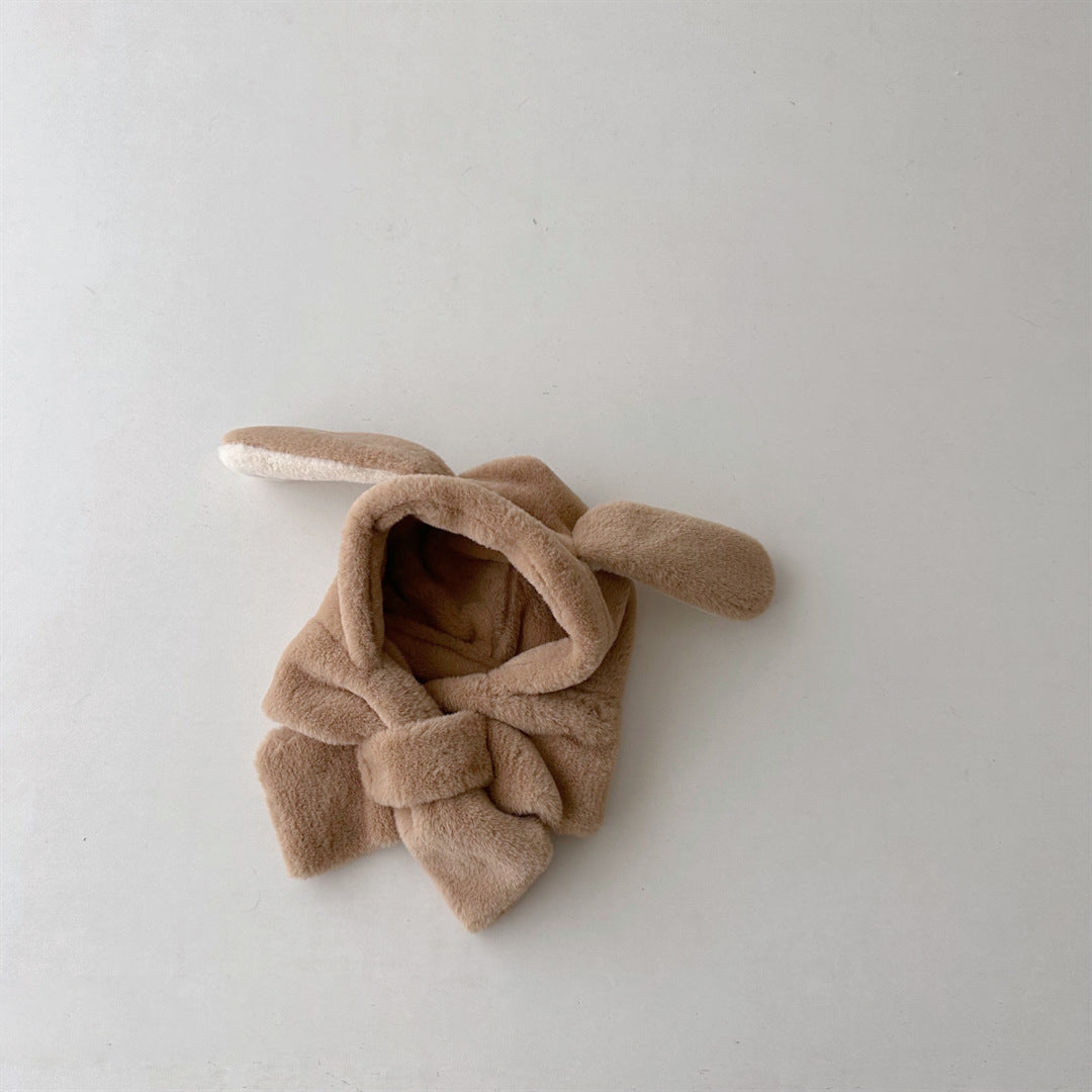 ベビーキッズマフラー付き帽子 耳付き帽子 ネックウォーマー イヤーマフ ボアフリース 3カラー ユニセックス 男の子 女の子 子供服【mh0003242】