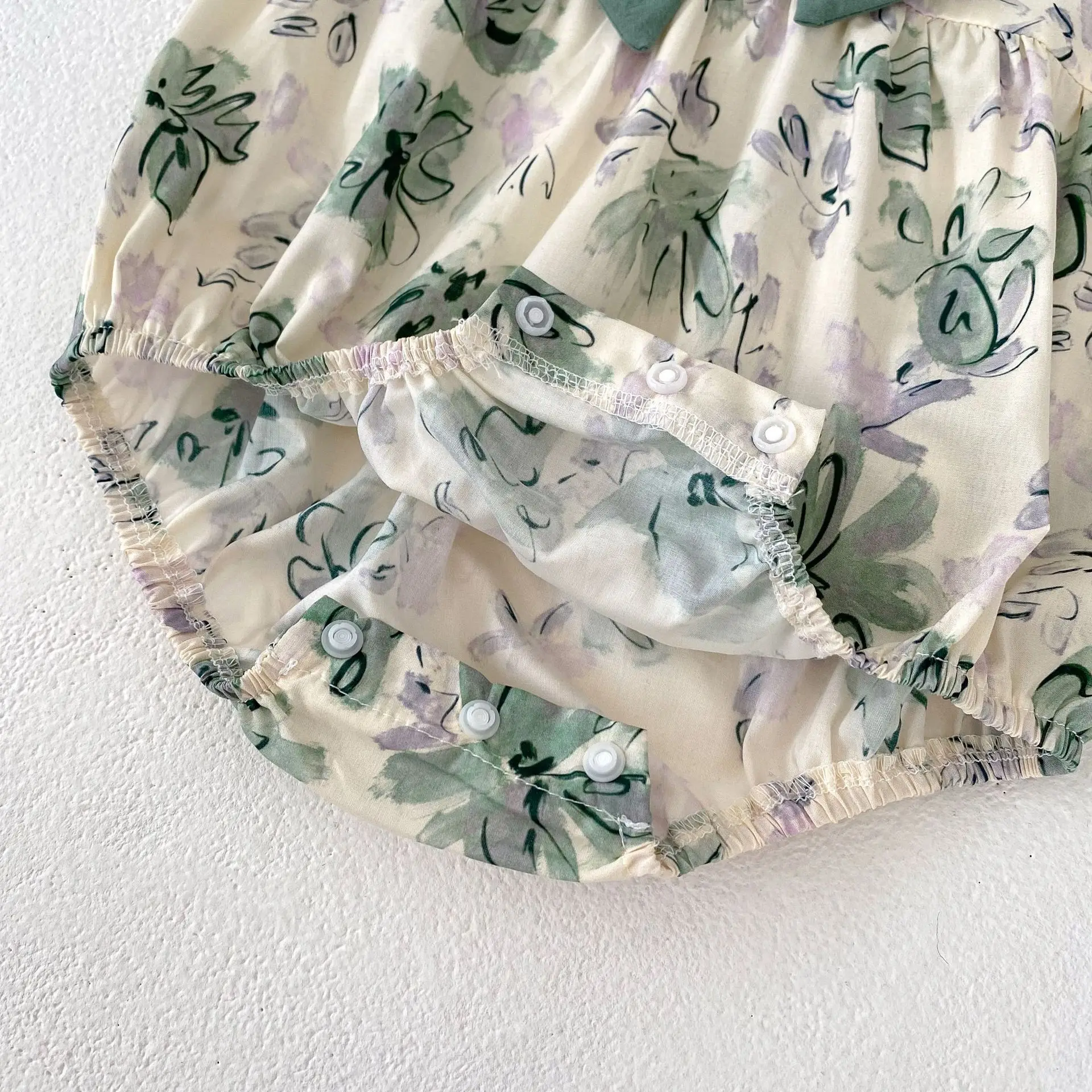 #ベビーファッション #夏のロンパース #フリルスリーブ #フラワープリント #可愛らしいリボン #赤ちゃんのお洋服 #女の子コーデ