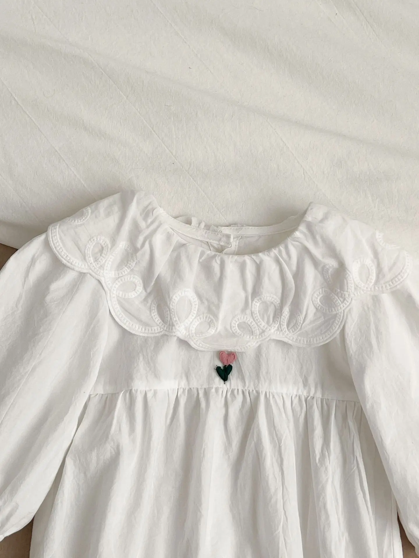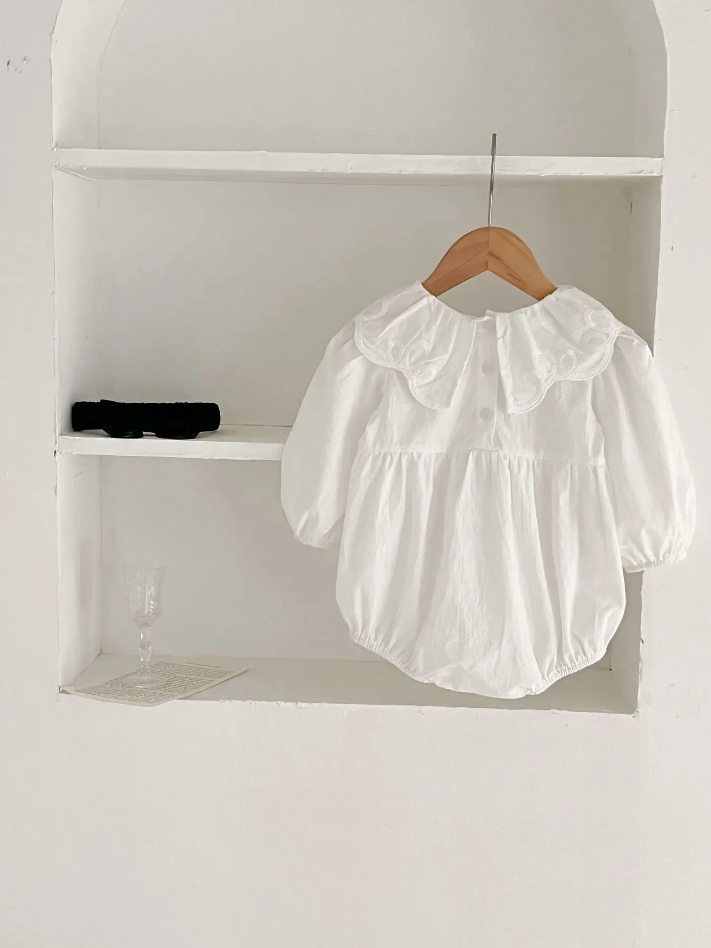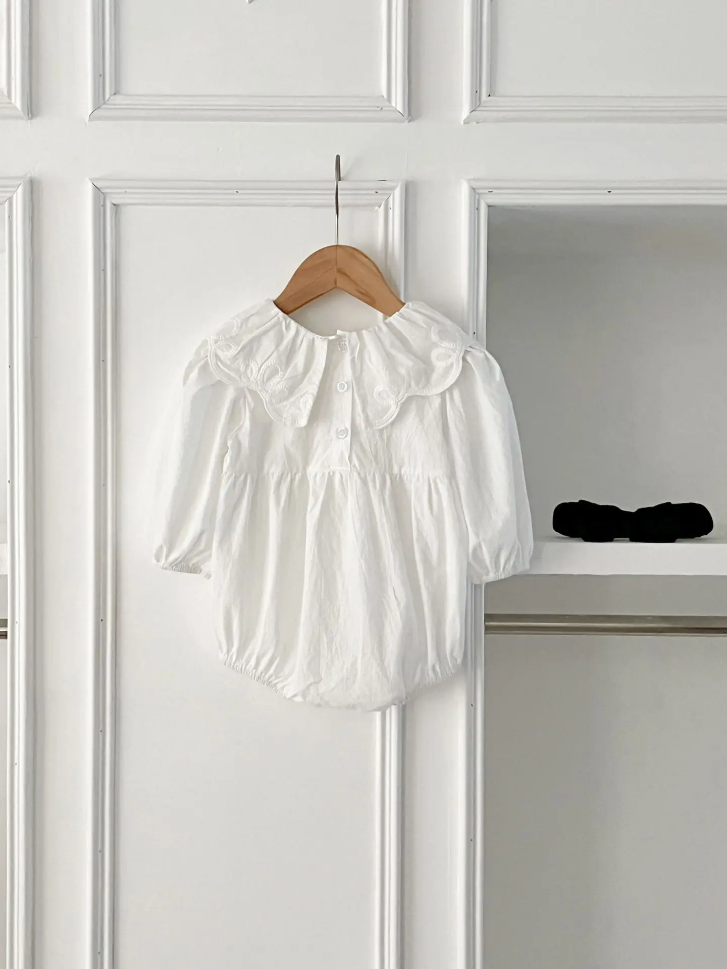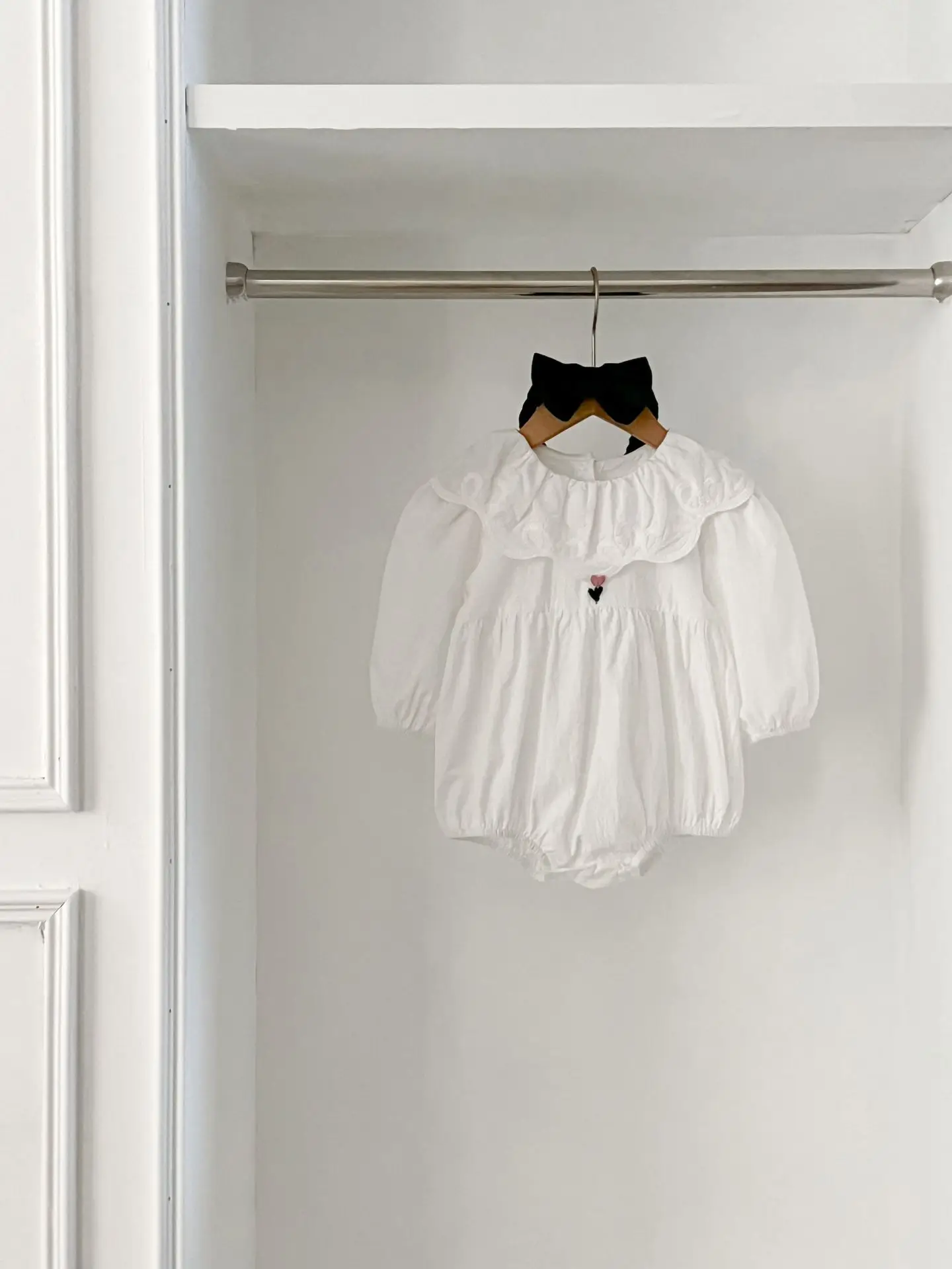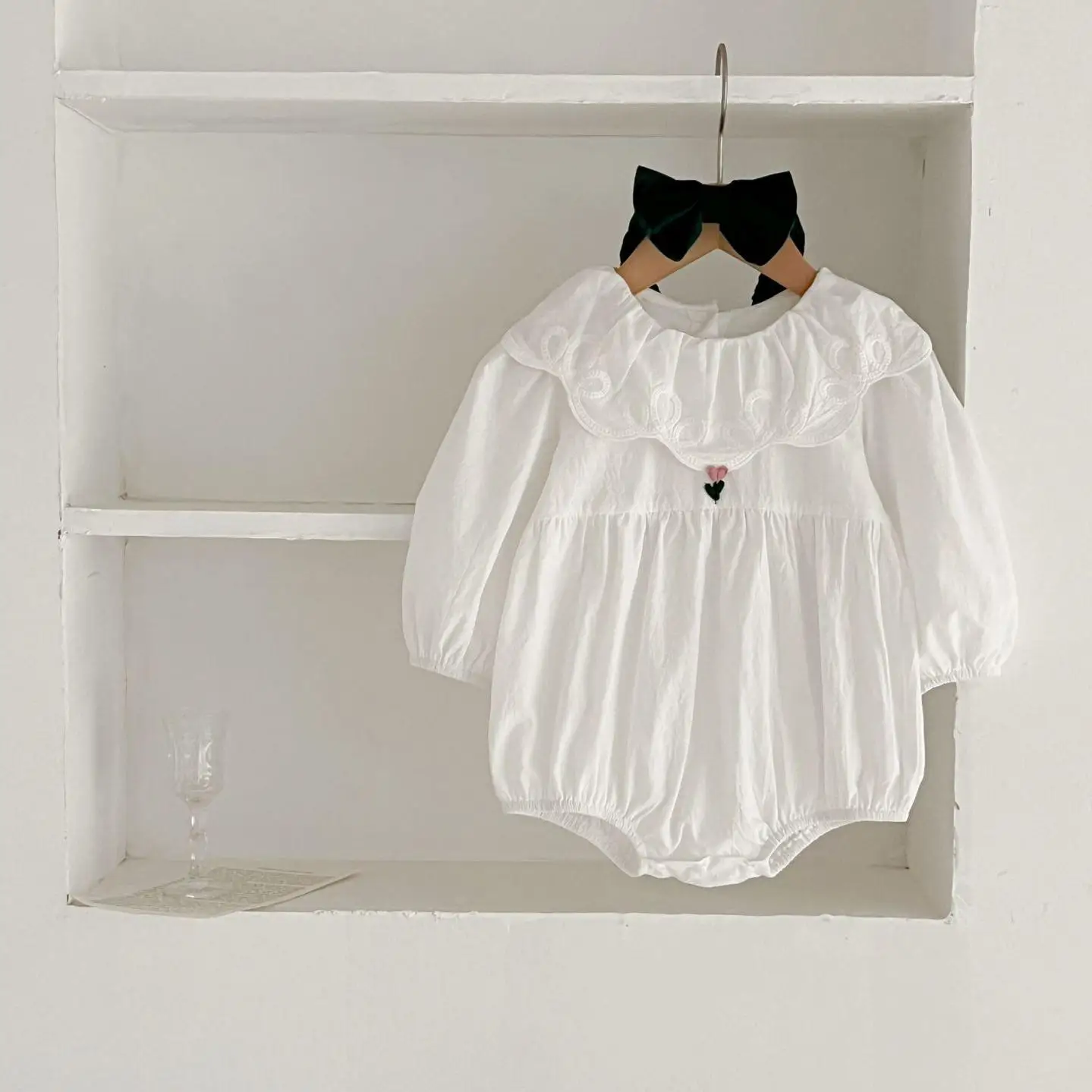 ベビーロンパース ヘアバンドセット 長袖サークル襟ボディスーツ+リボンヘアバンド ホワイト【mh0004697】