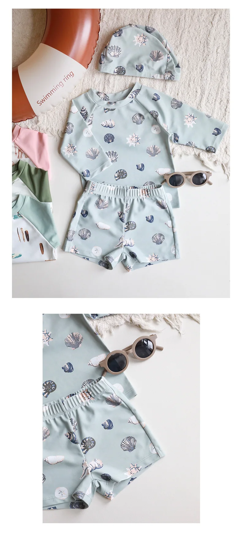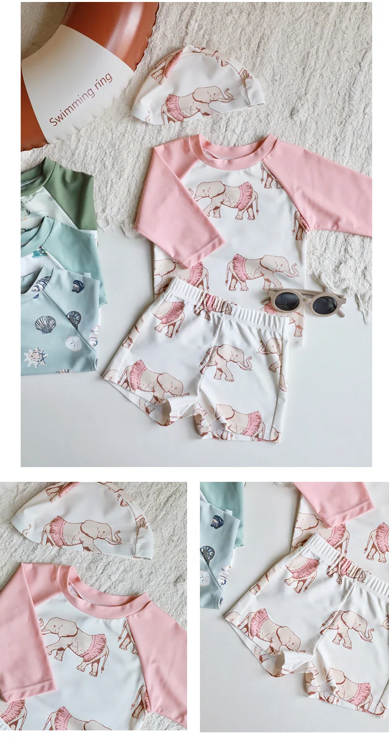 2024年新作 キッズ水着 セパレート 長袖 ラッシュガード ガールズ/ボーイズスイムウェア 帽子セット【mh0005024】