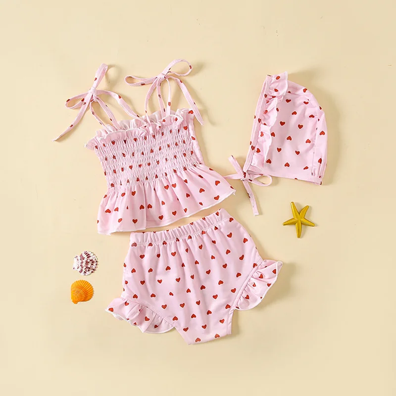 ベビー水着 帽子セット セパレート ビキニ ピンク ハート スイムウェア【mh0005122】