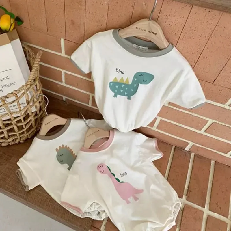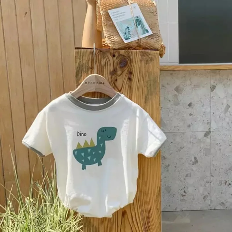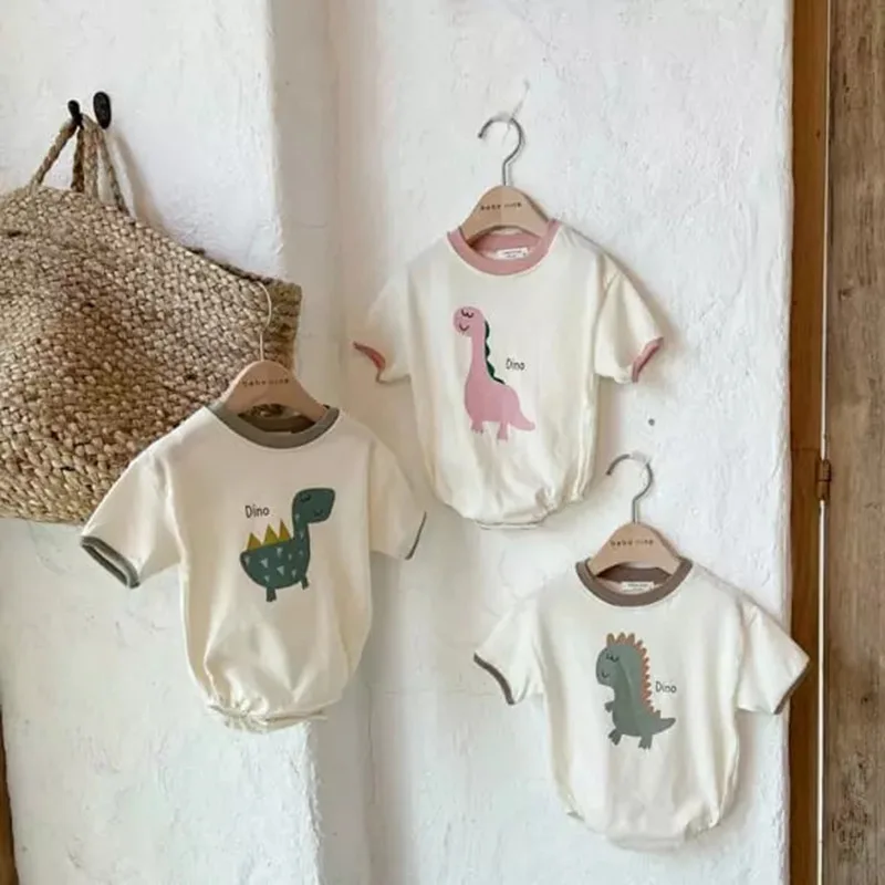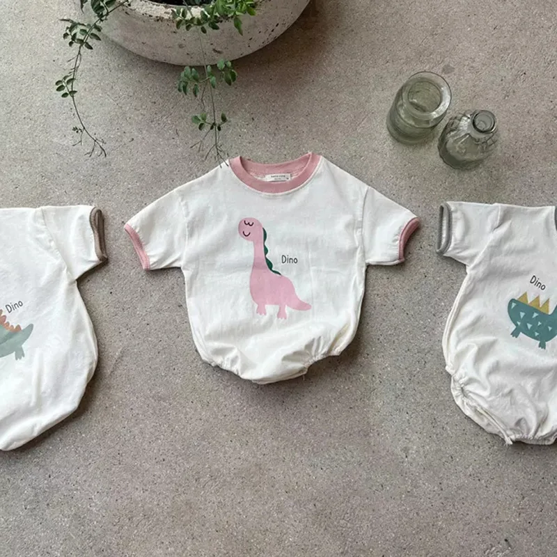 ベビーロンパース 恐竜ダイナソープリント 半袖ボディスーツ 3カラー【mh0005167】