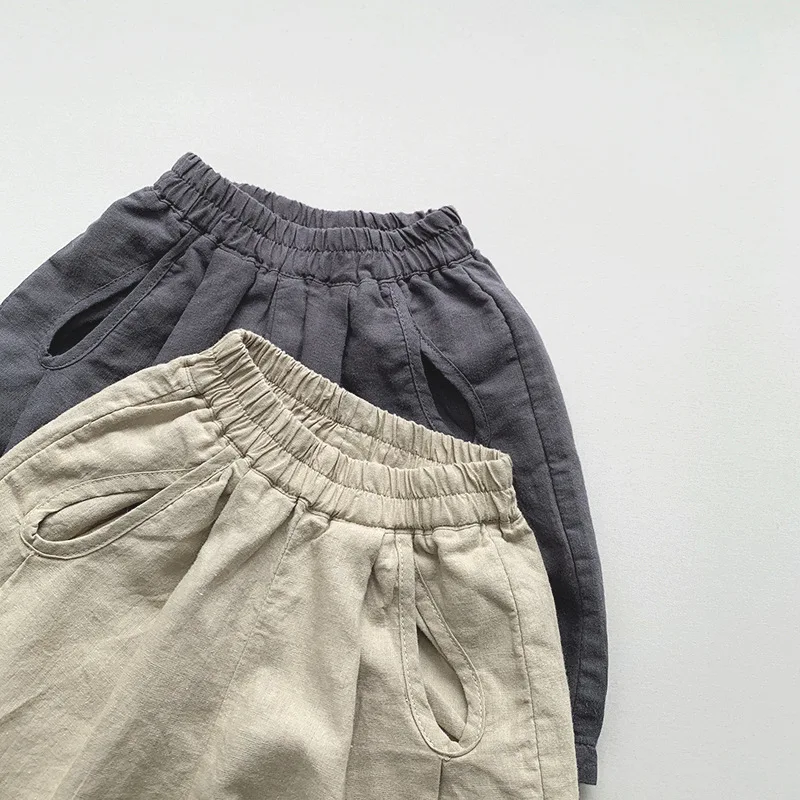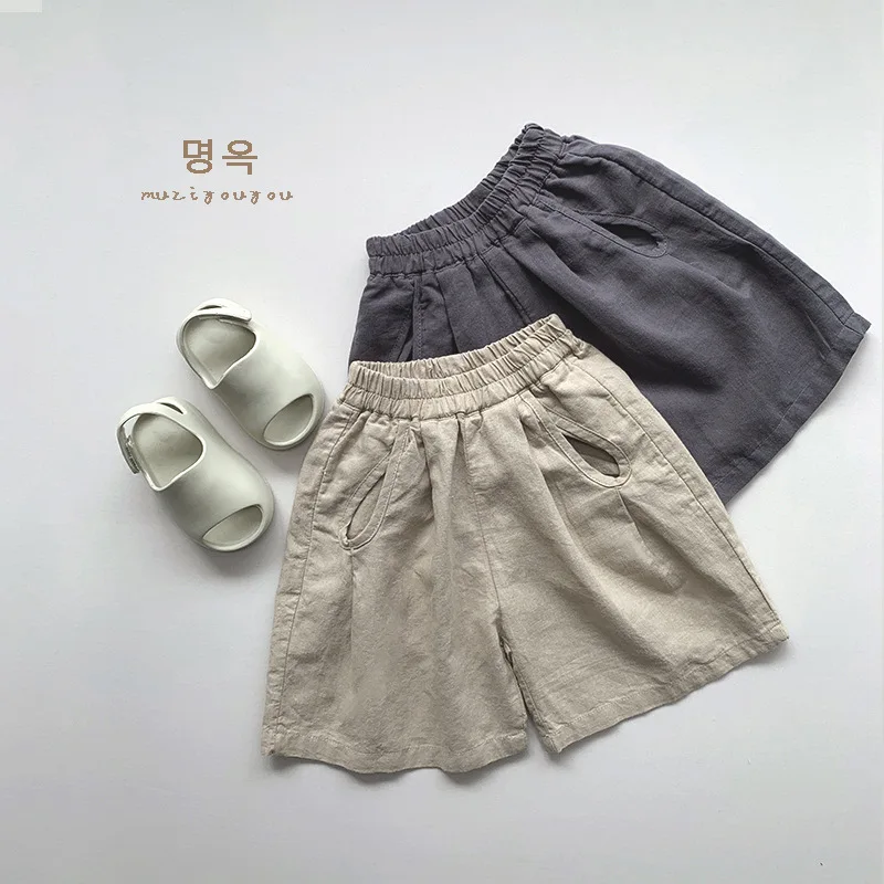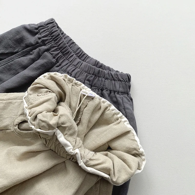 キッズに最適な夏用のボーイズ・ガールズ向けショートパンツです。リネン綿混合素材が涼しく、ゆったりとしたワイドルーズデザインが快適な履き心地を提供します。伸縮性のある腰回りで動きやすさも兼ね備え、カジュアルでトレンディなスタイルにぴったりです。男の子も女の子も活躍するマストアイテムです。