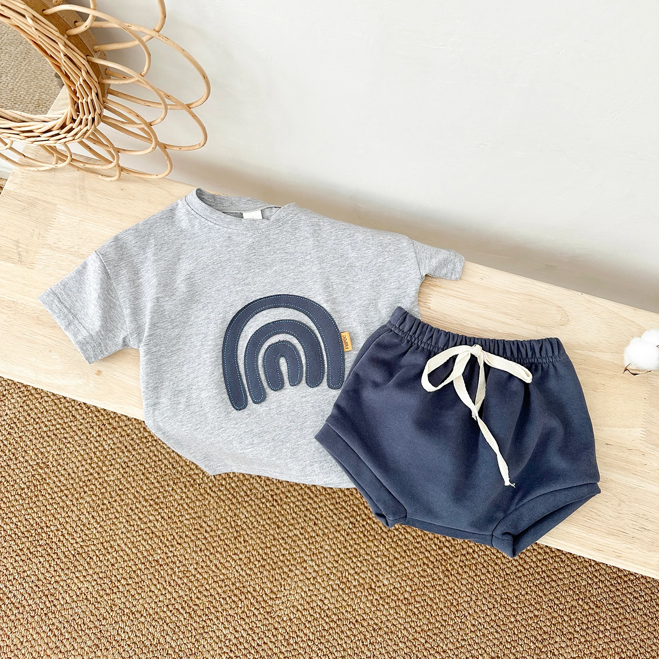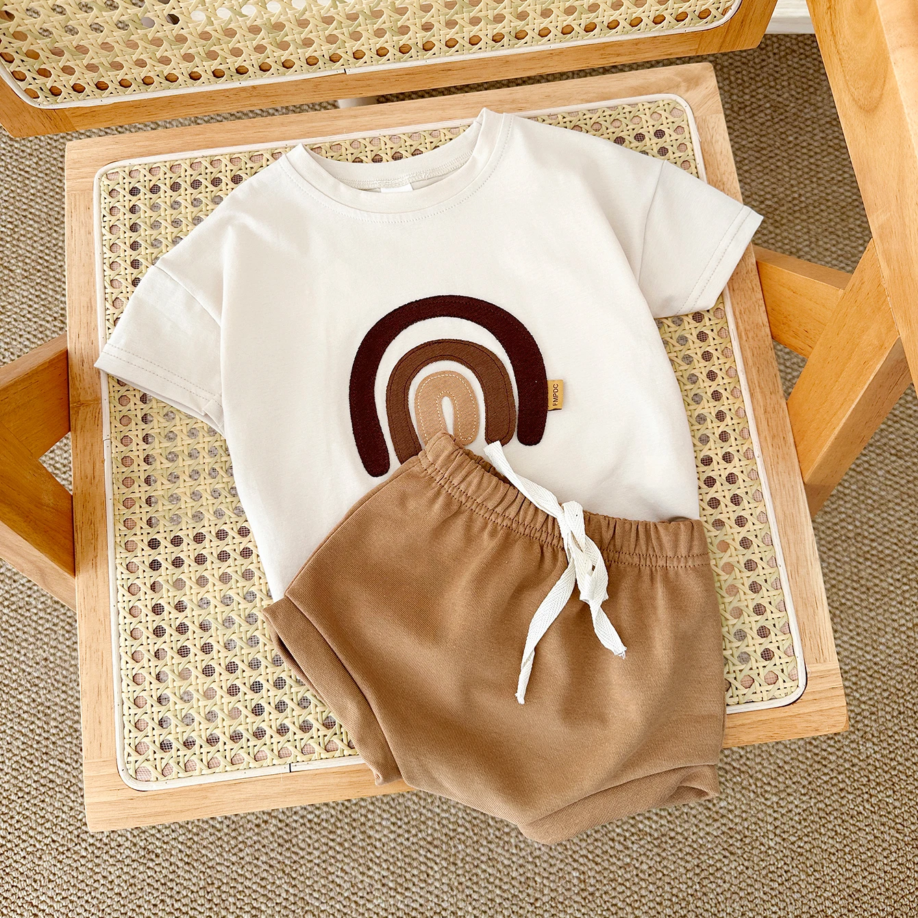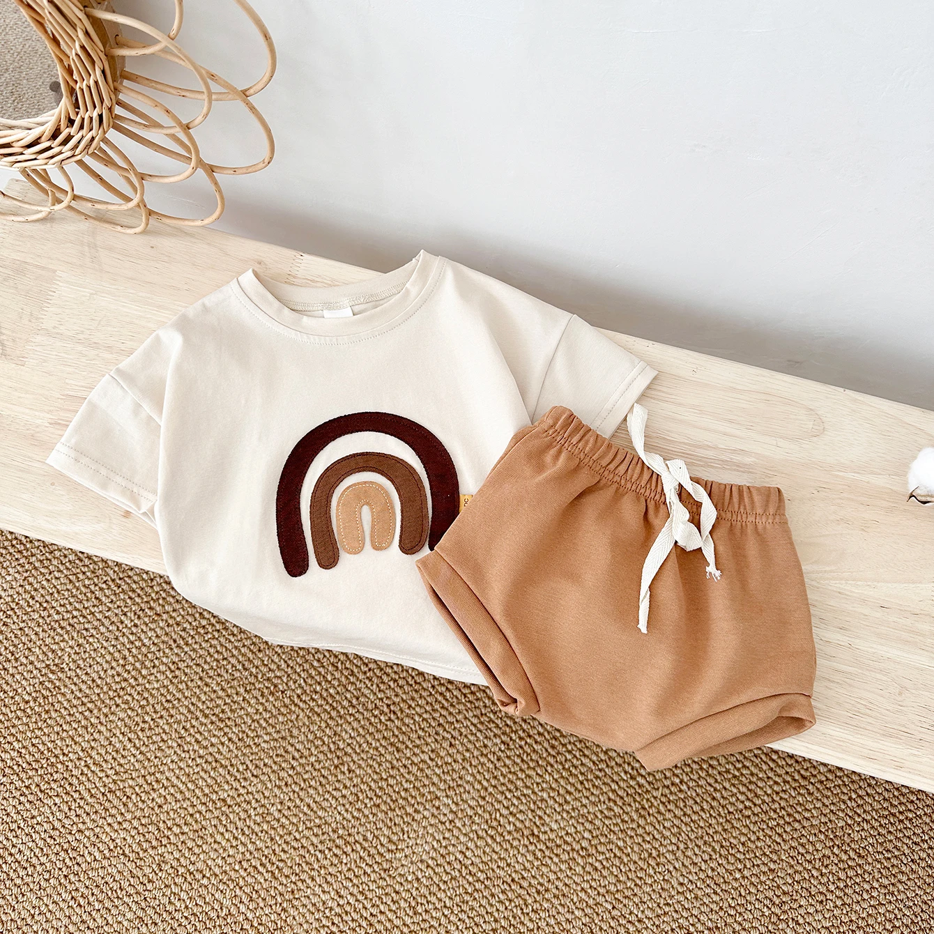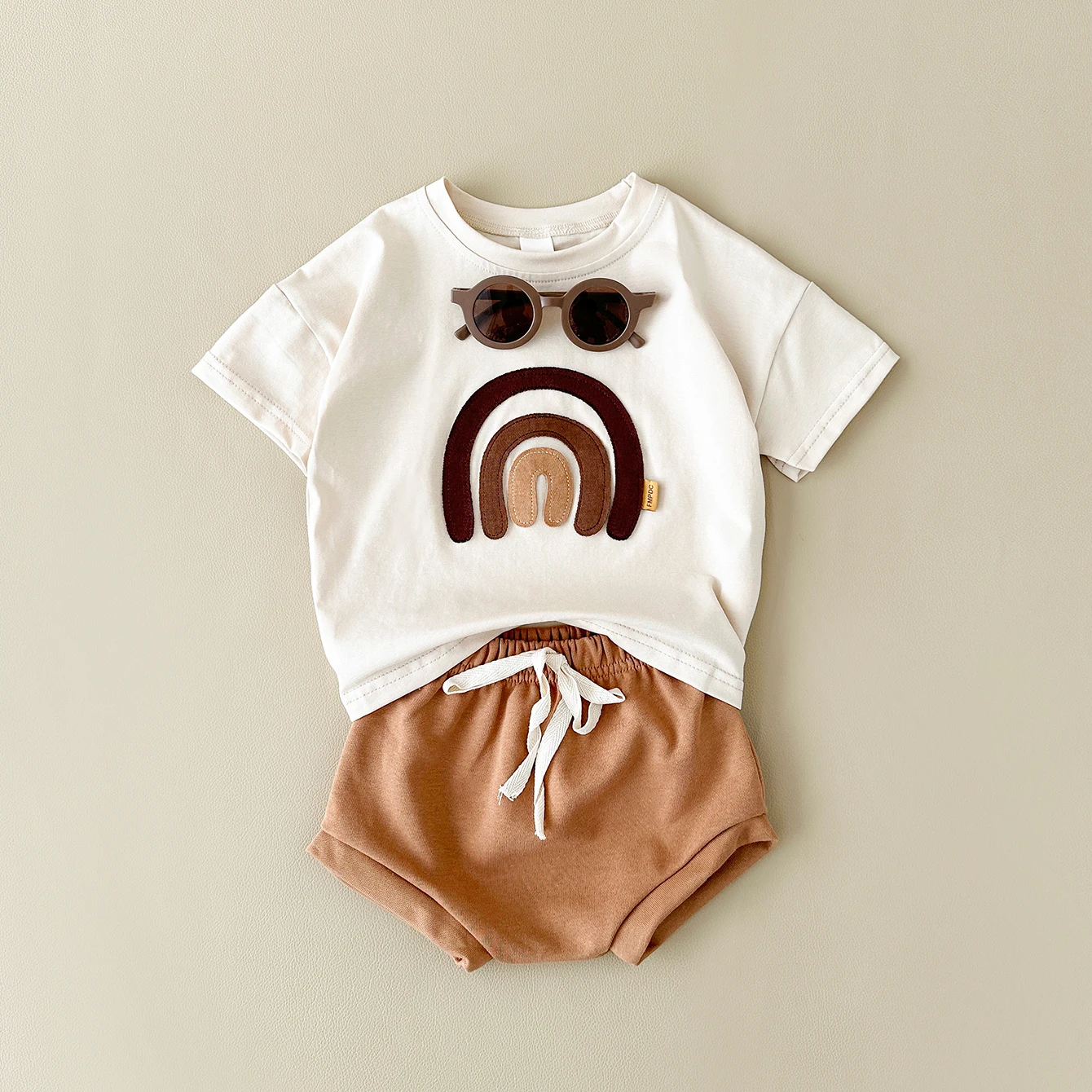 ベビーセットアップ 2点セット 半袖Tシャツ+ブルマパンツ レイボー虹刺繍【mh0005635】