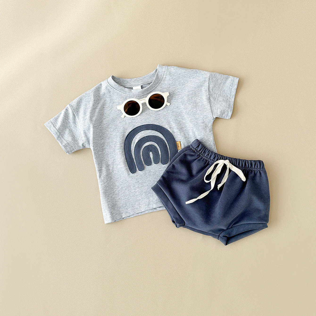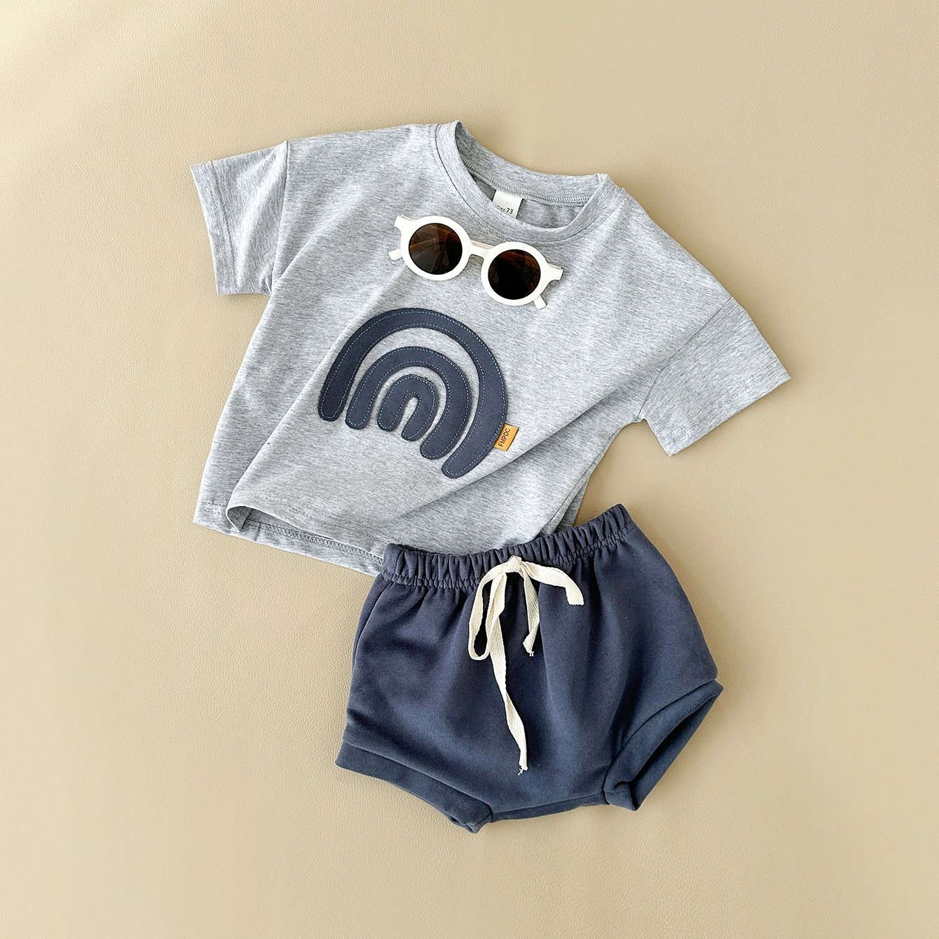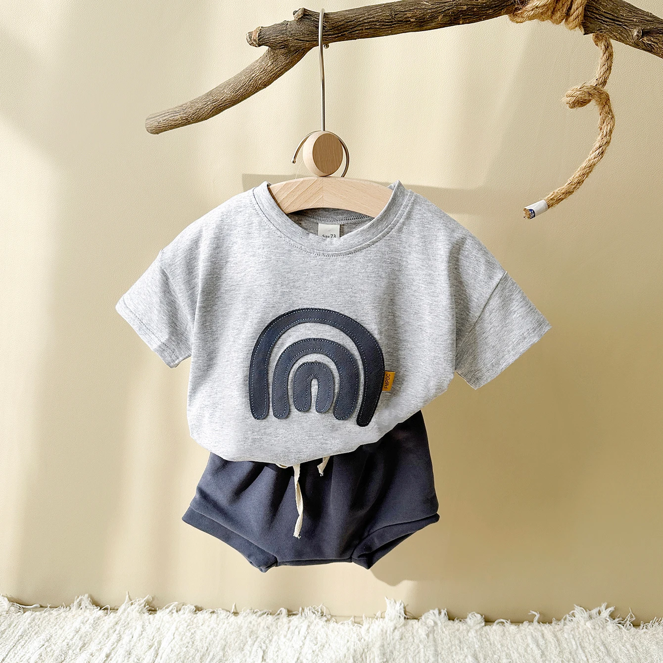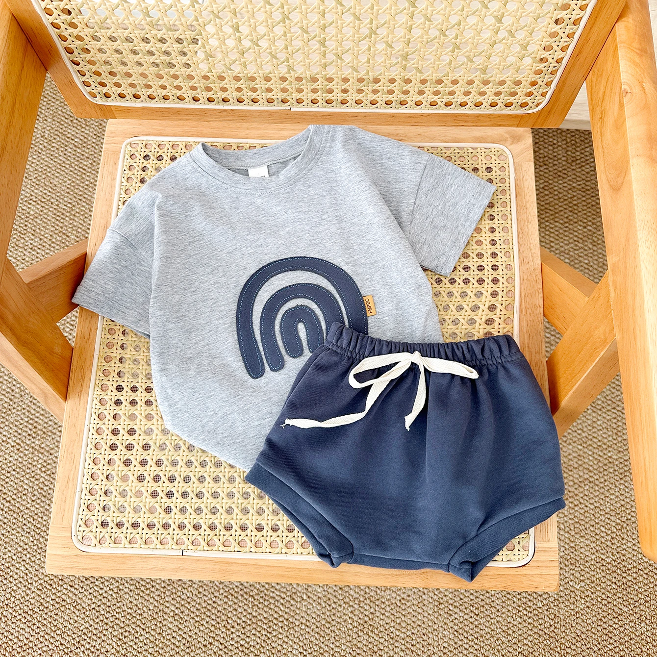 ベビーセットアップ 2点セット 半袖Tシャツ+ブルマパンツ レイボー虹刺繍【mh0005635】