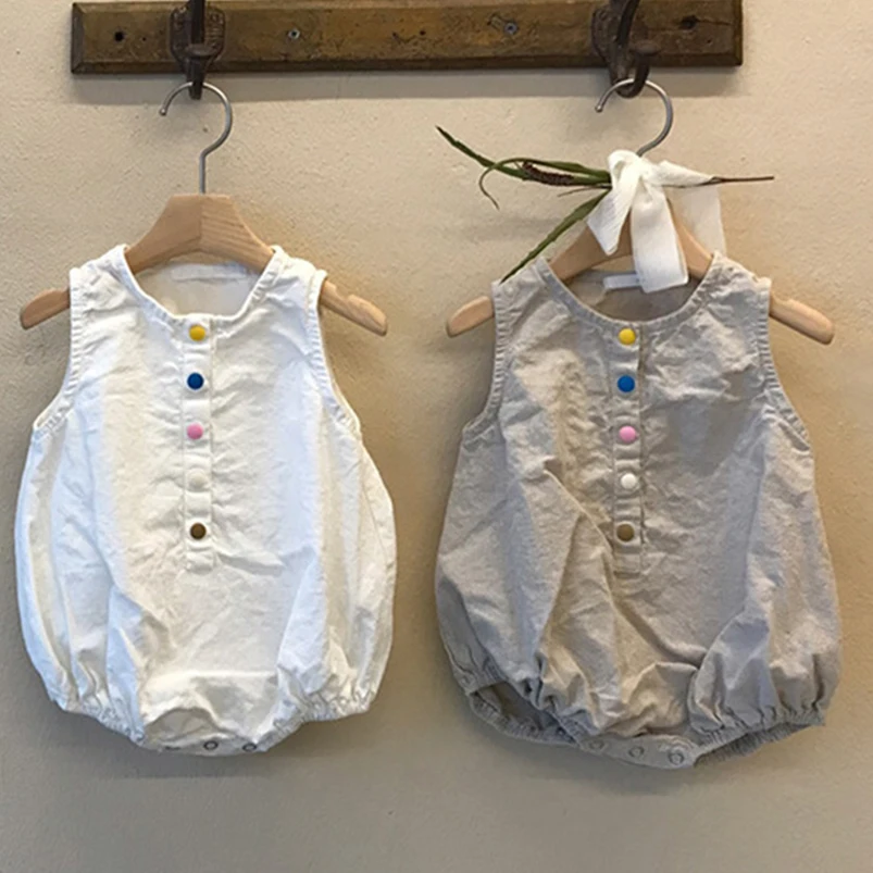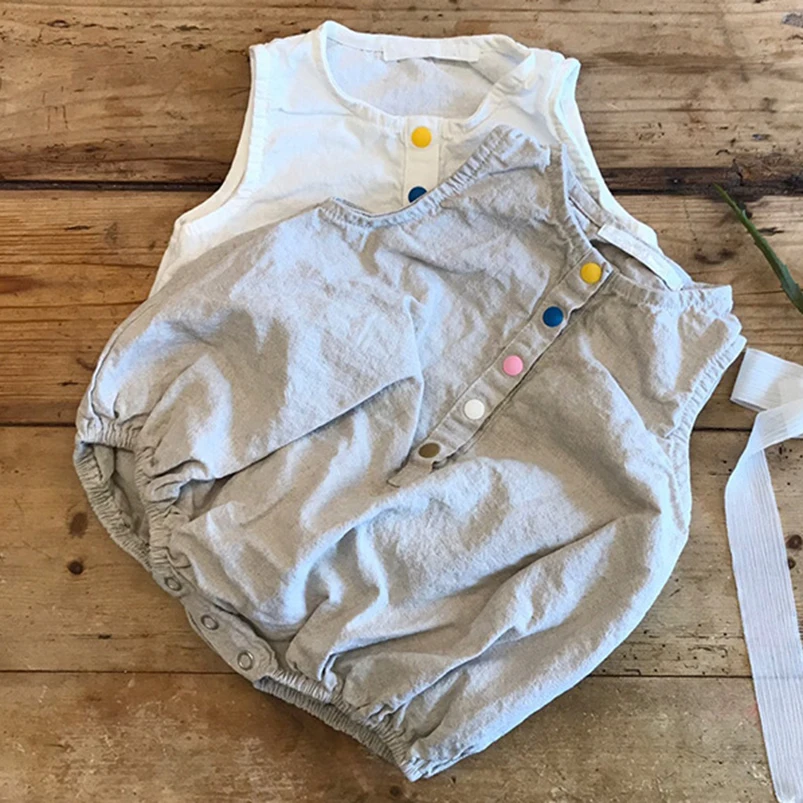 ベビーロンパース コットンリネン ノースリーブボディスーツ 2カラー【mh0005746】
