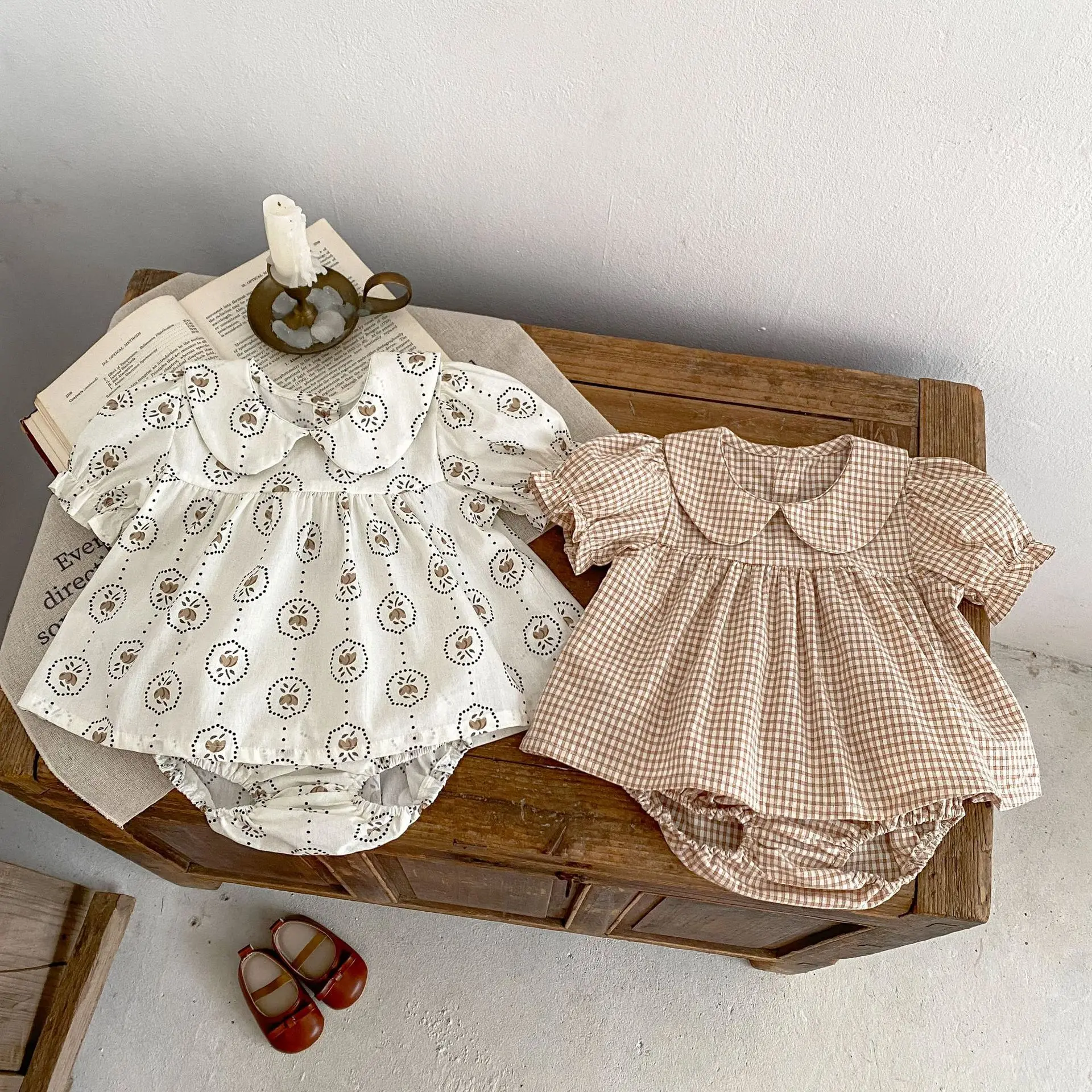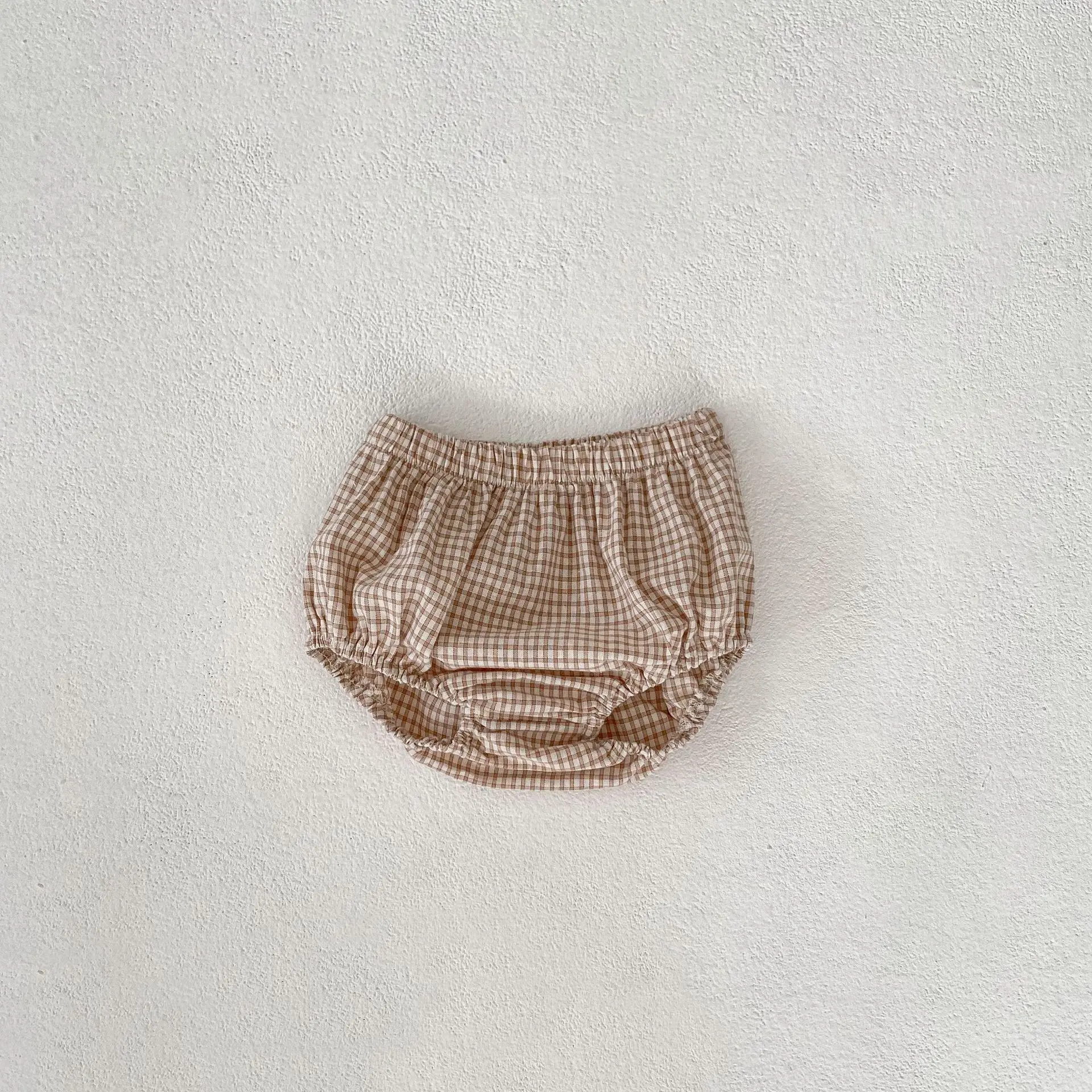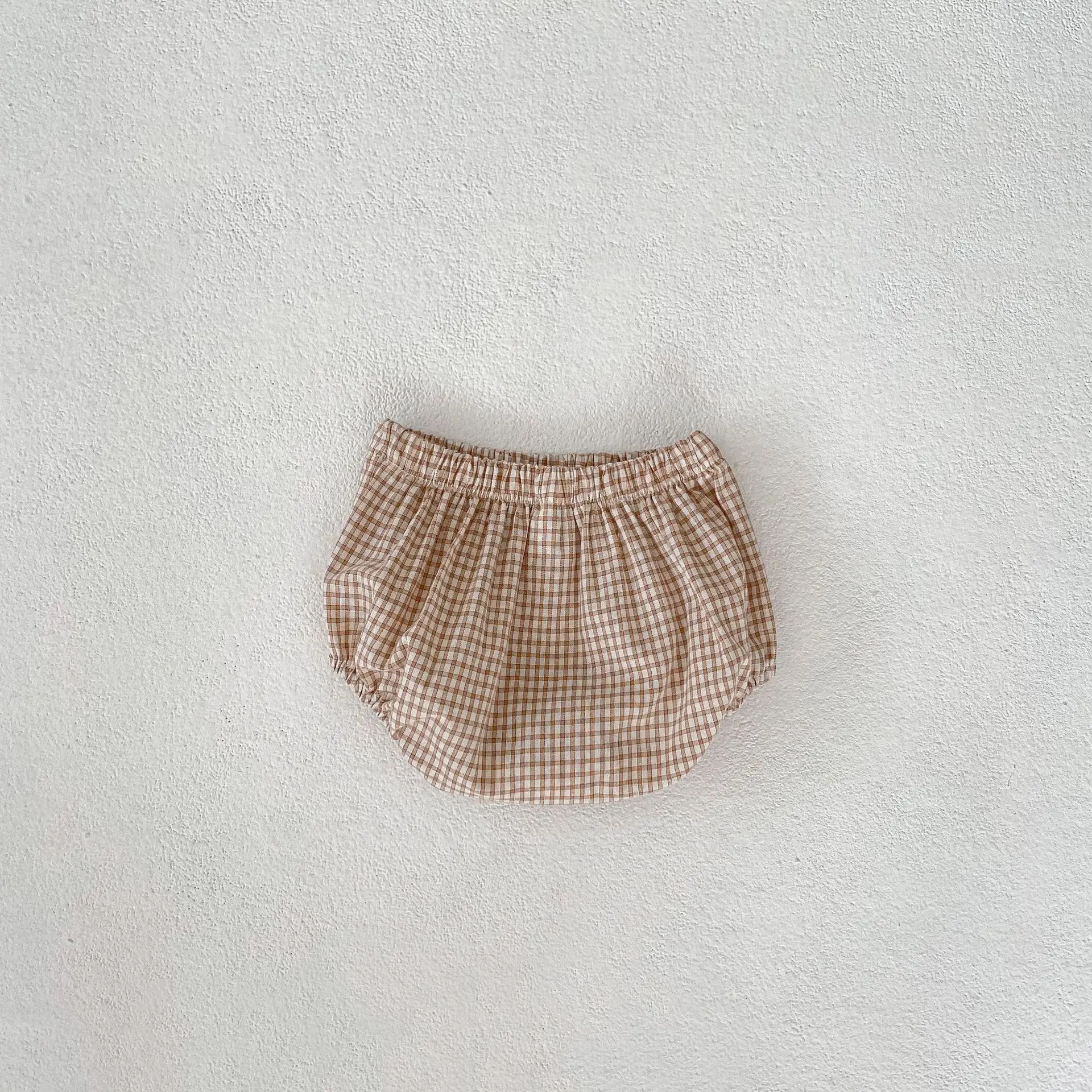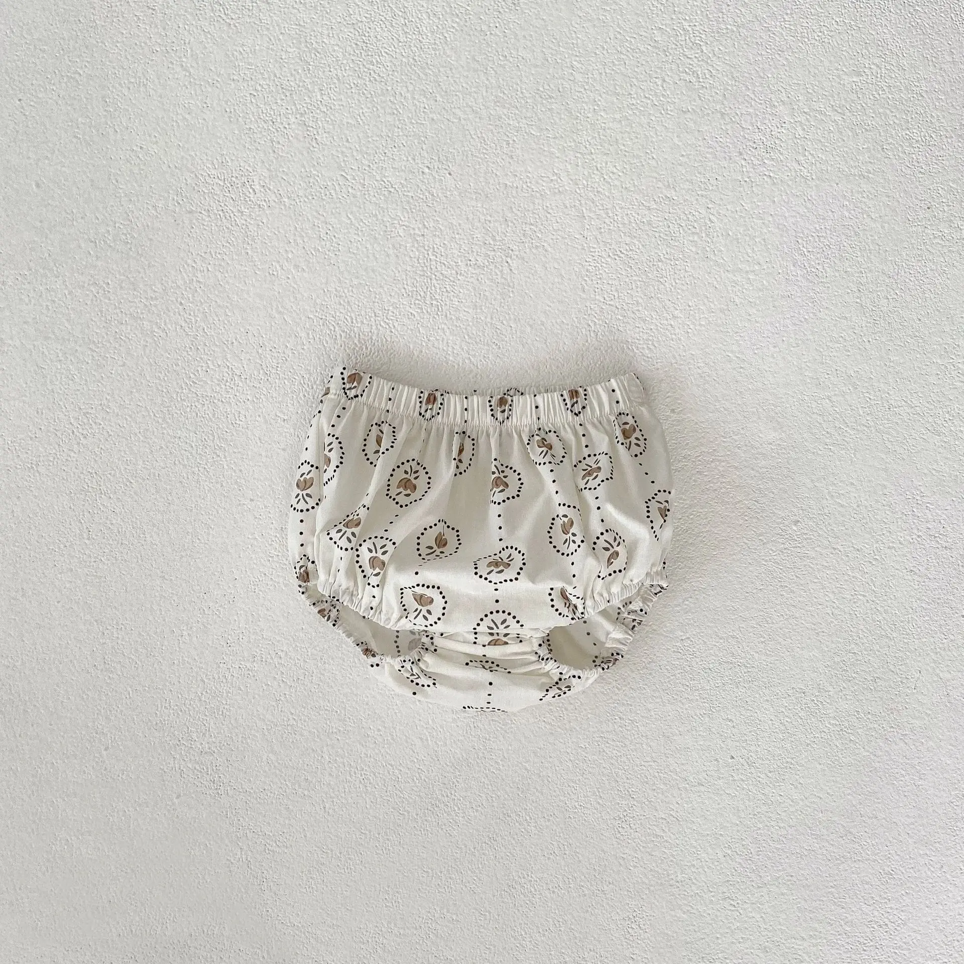 ベビーセットアップ 2点セット 半袖丸襟パプスリーブチュニックブラウス+ブルマパンツ フラワー花柄/チェックプリント【mh0005944】