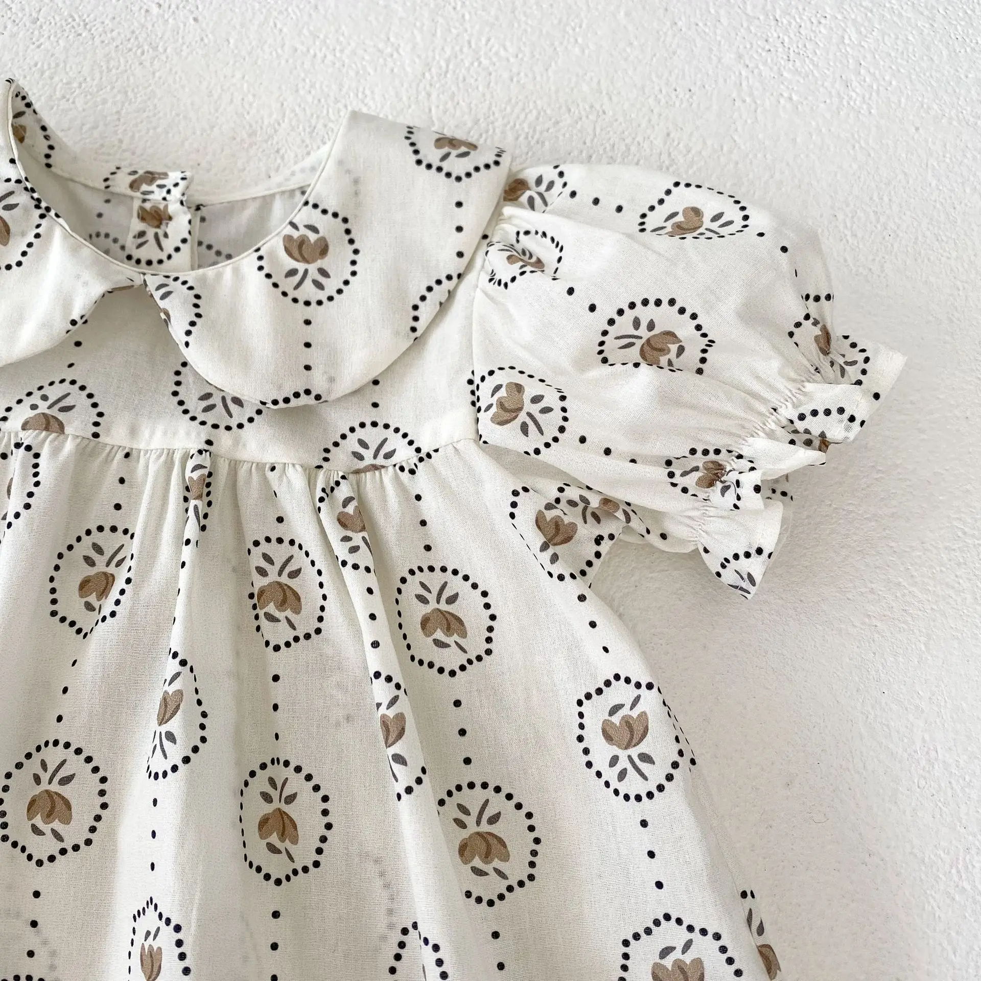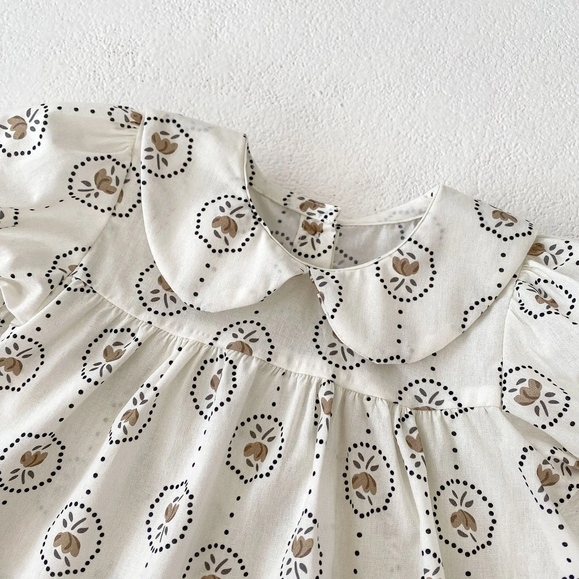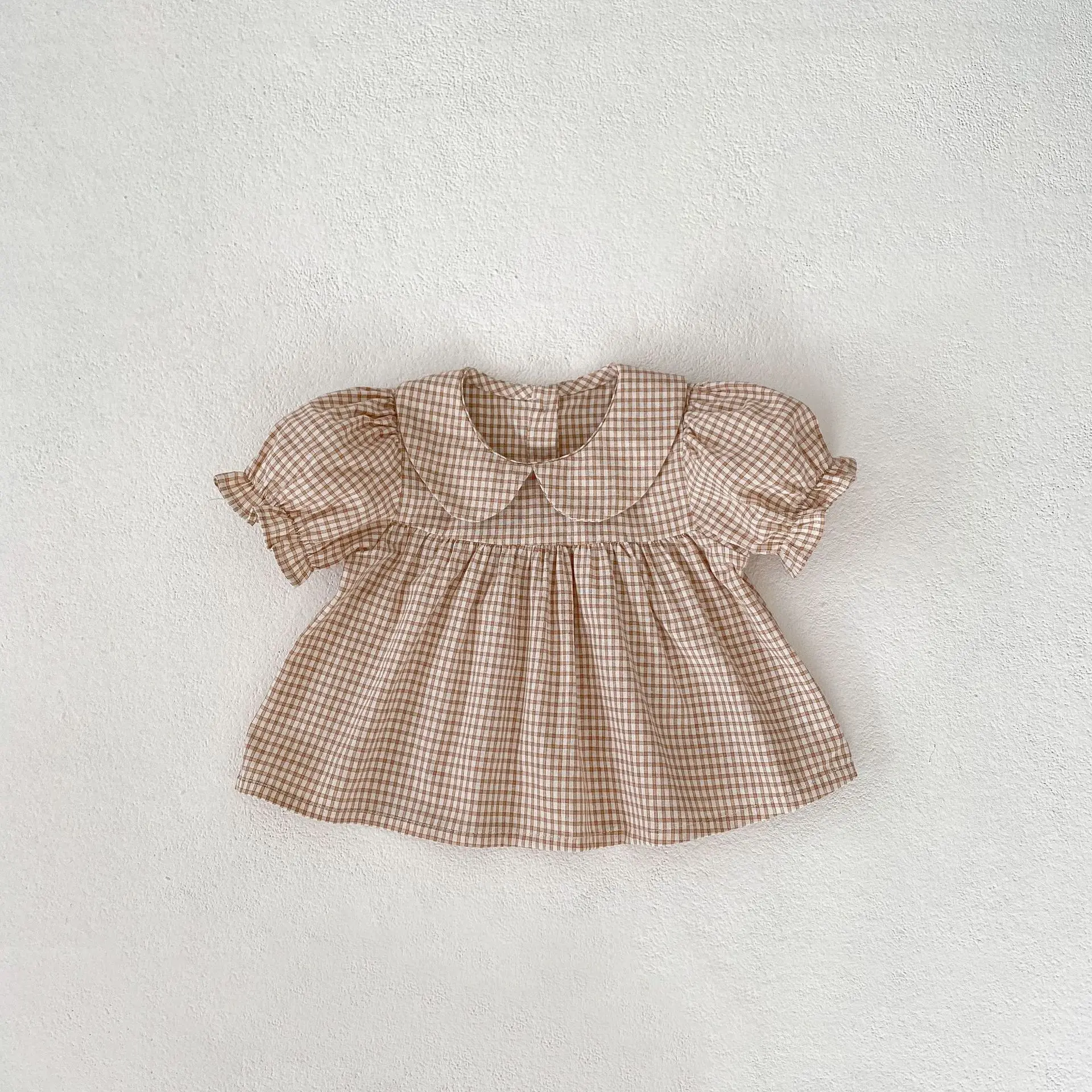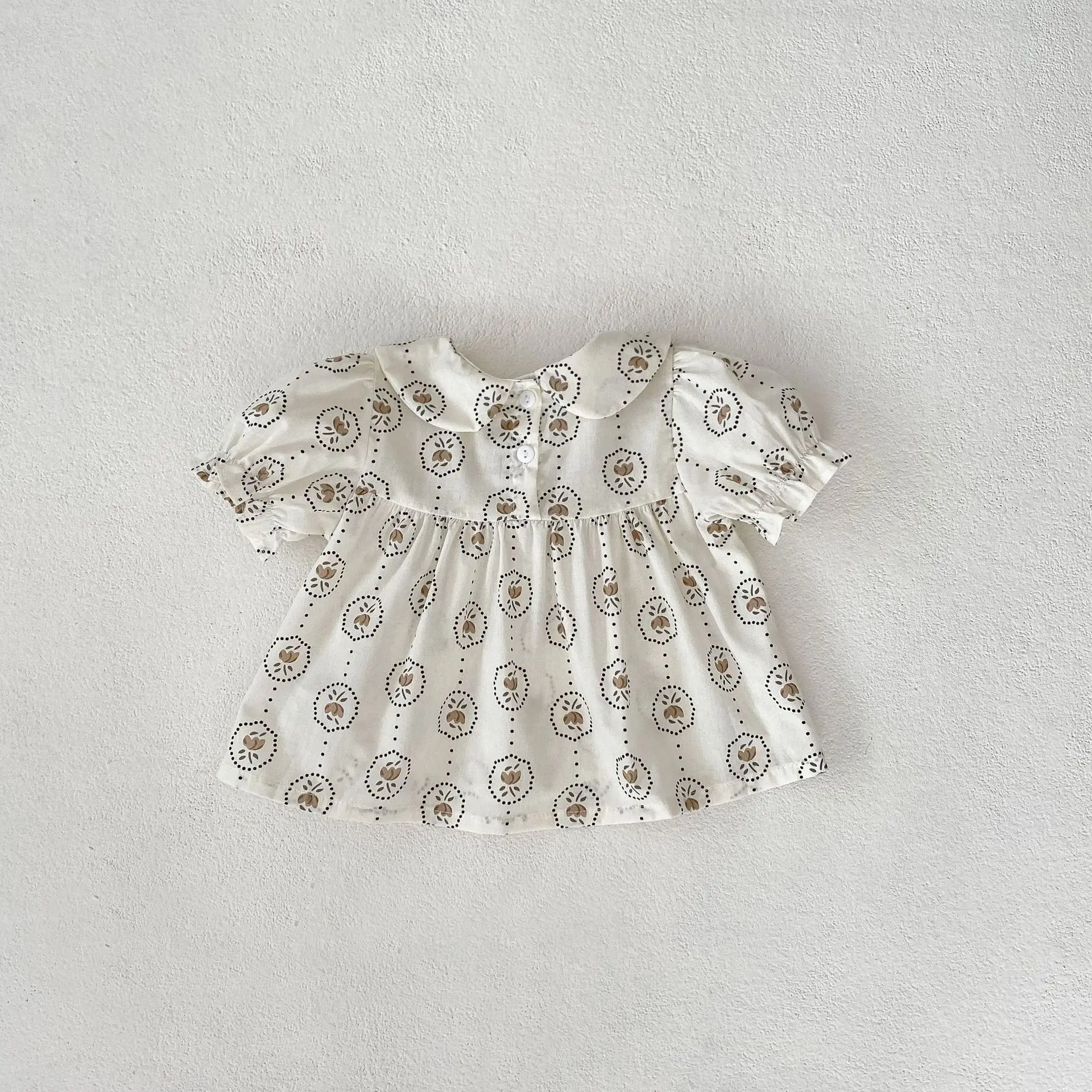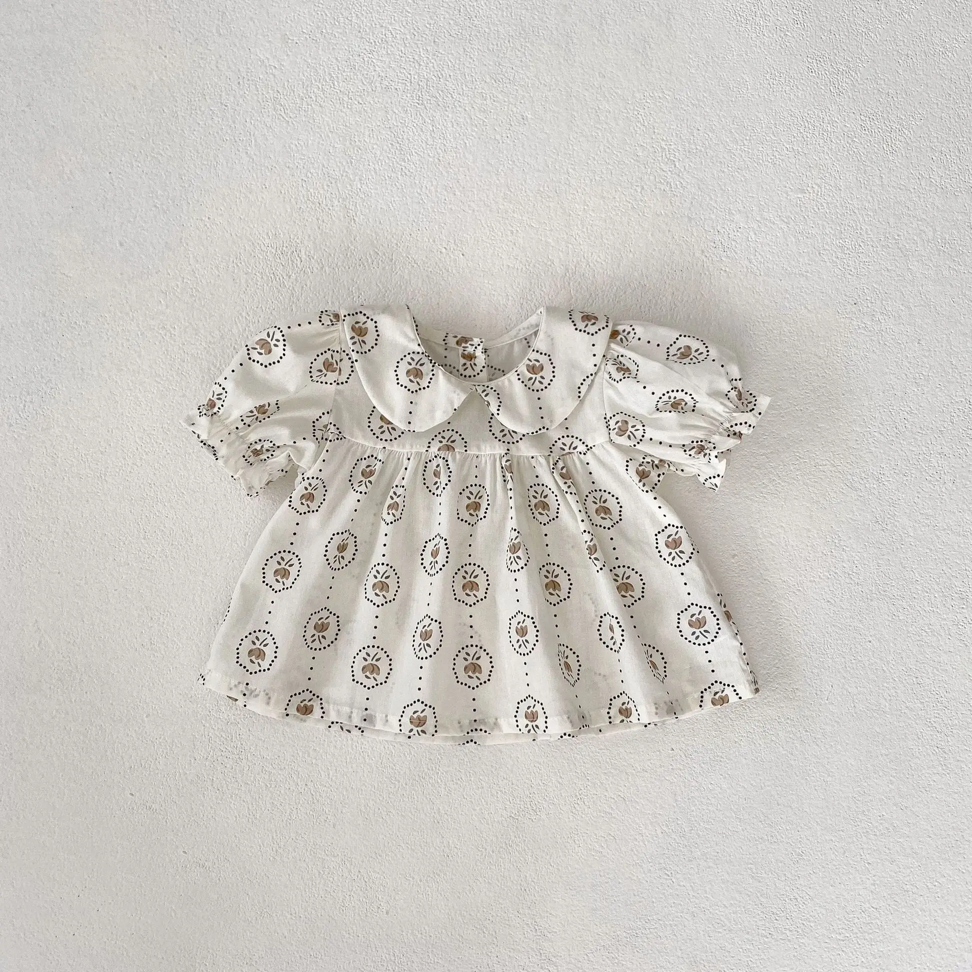 ベビーセットアップ 2点セット 半袖丸襟パプスリーブチュニックブラウス+ブルマパンツ フラワー花柄/チェックプリント【mh0005944】