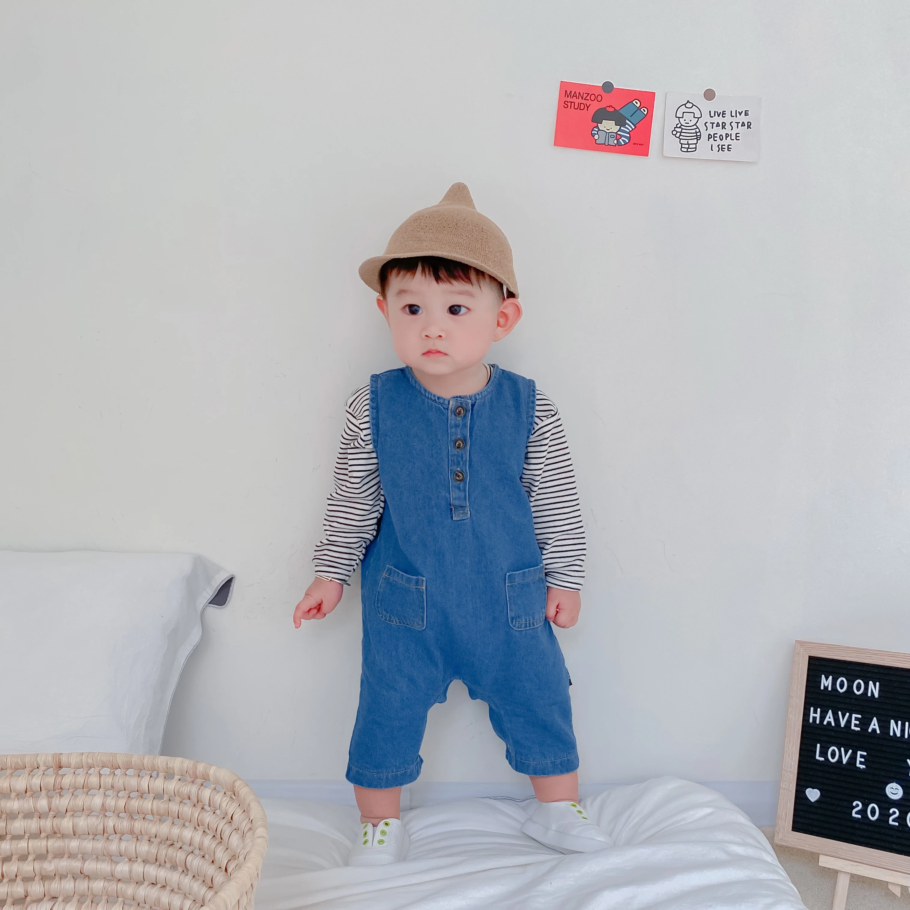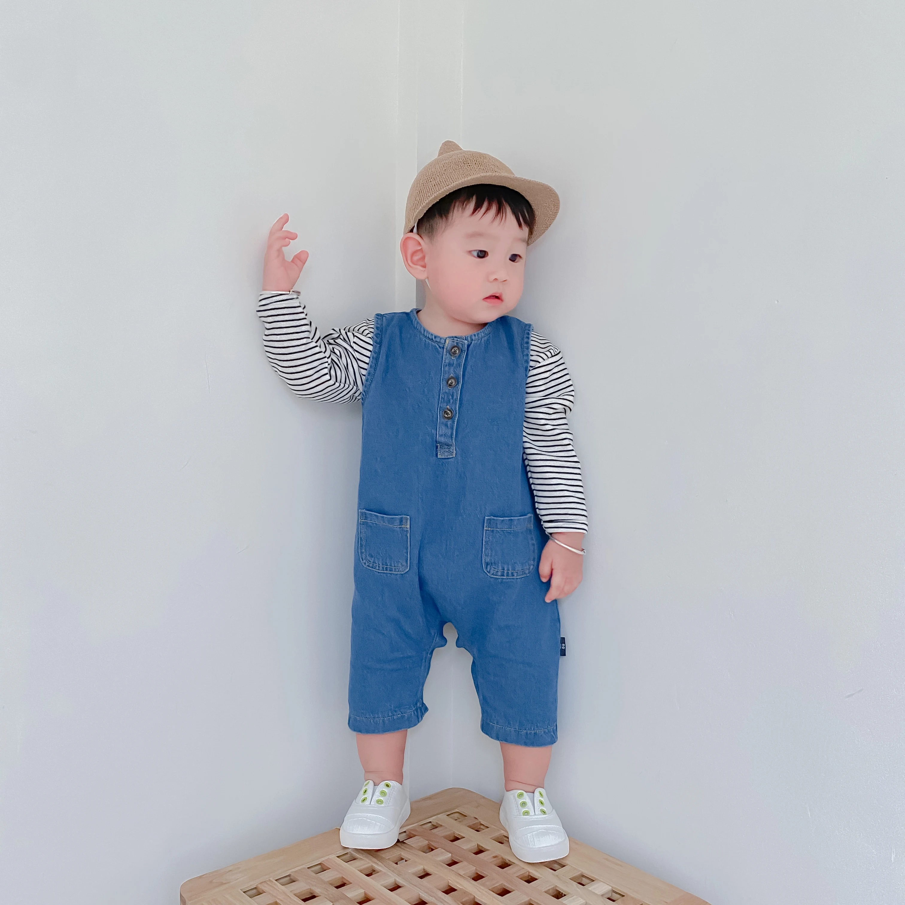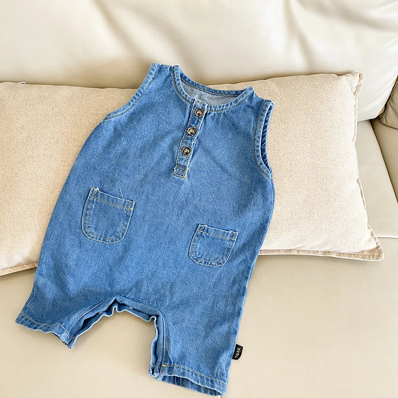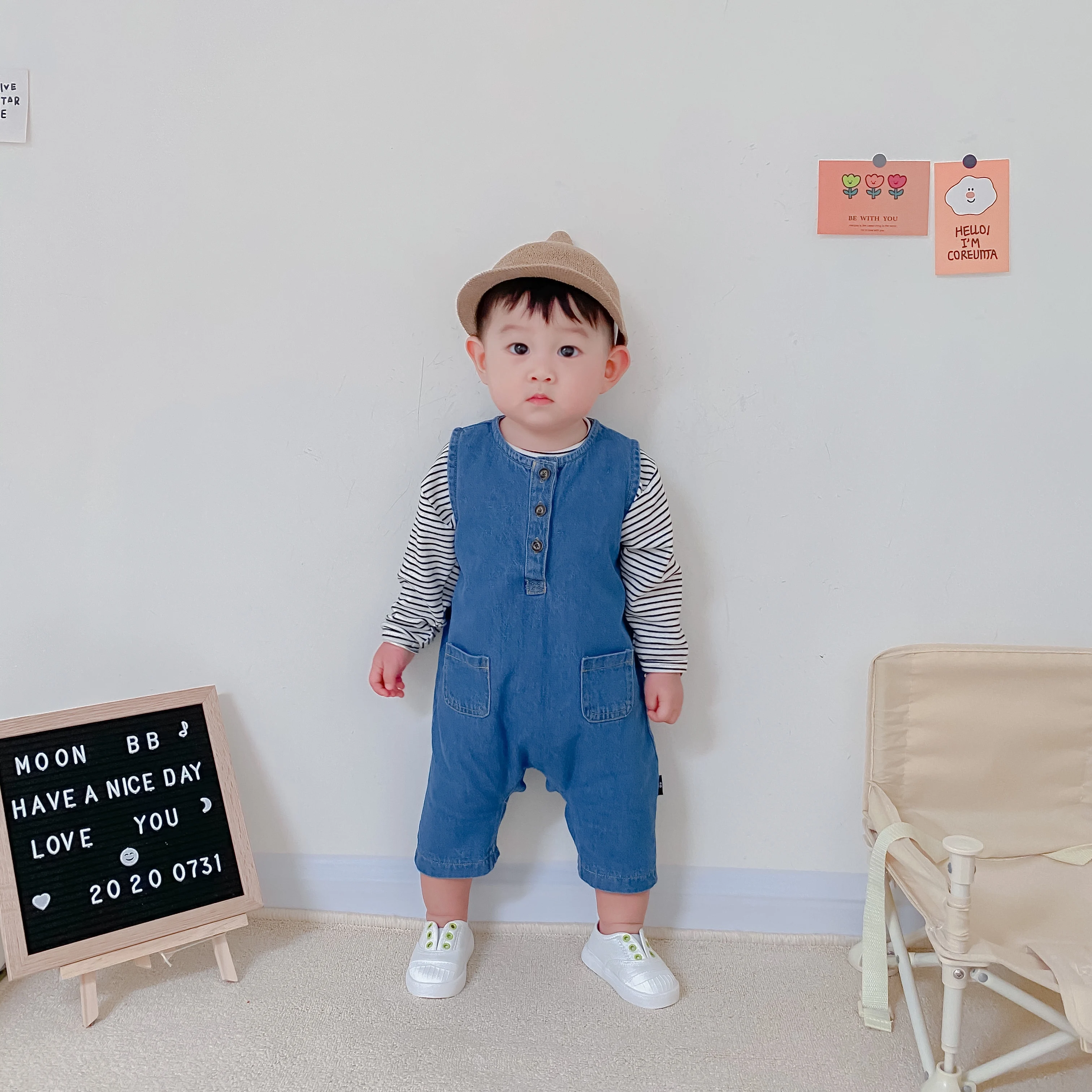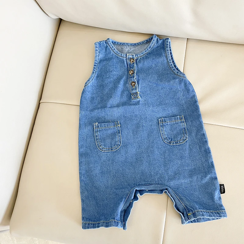 ベビージャンプスーツ デニム ノースリーブボディスーツ つなぎ【mh0006061】