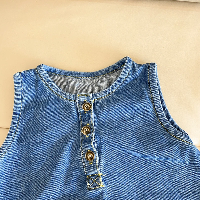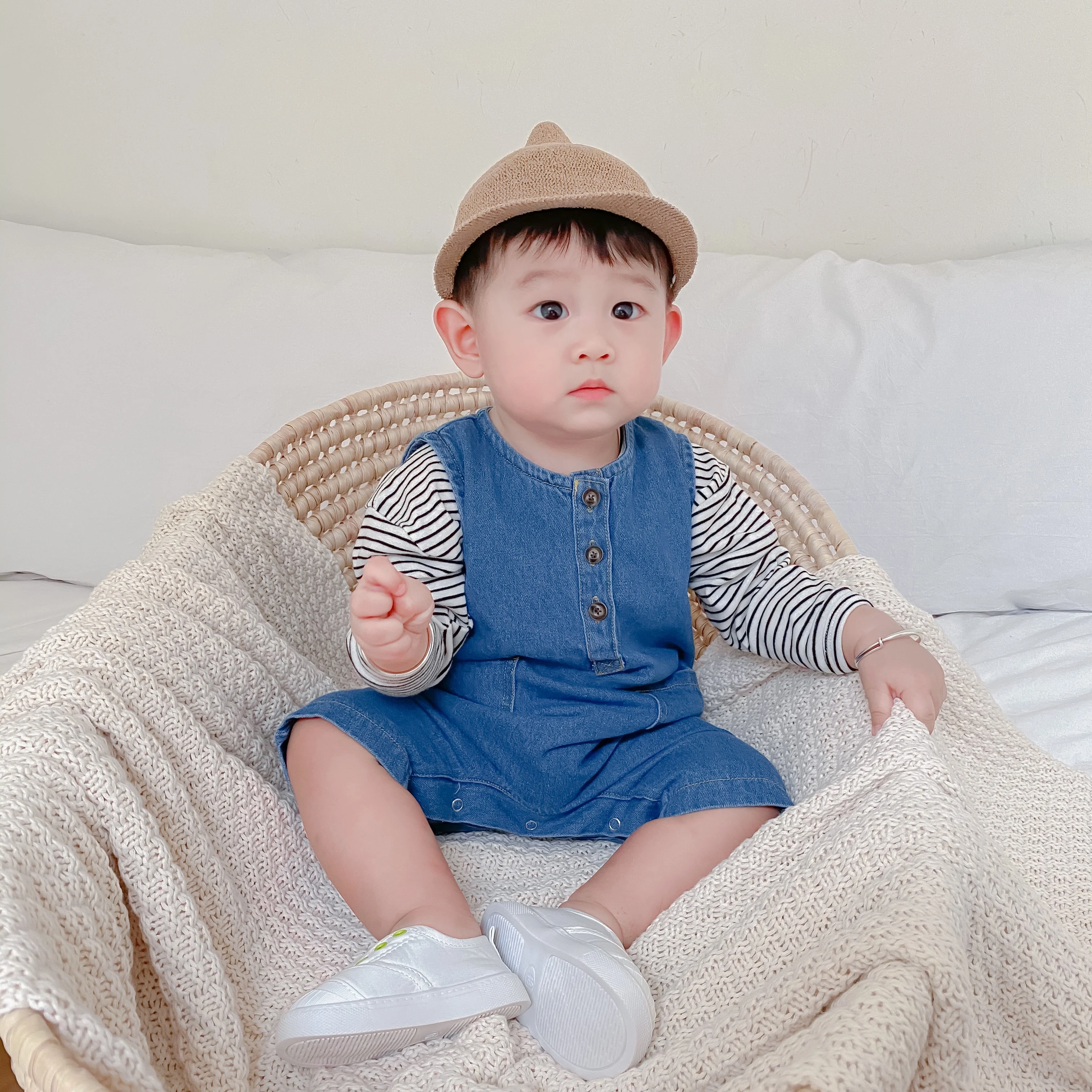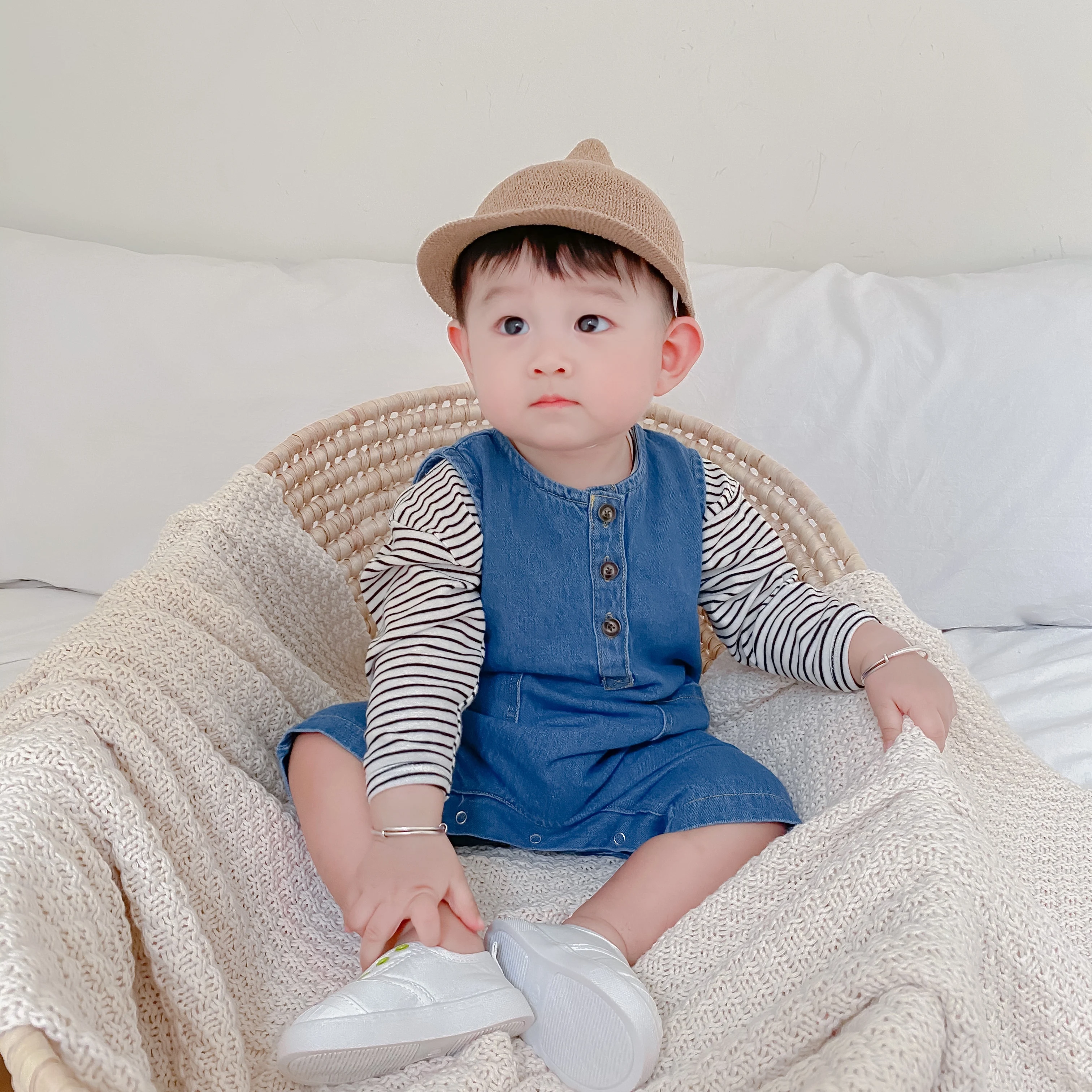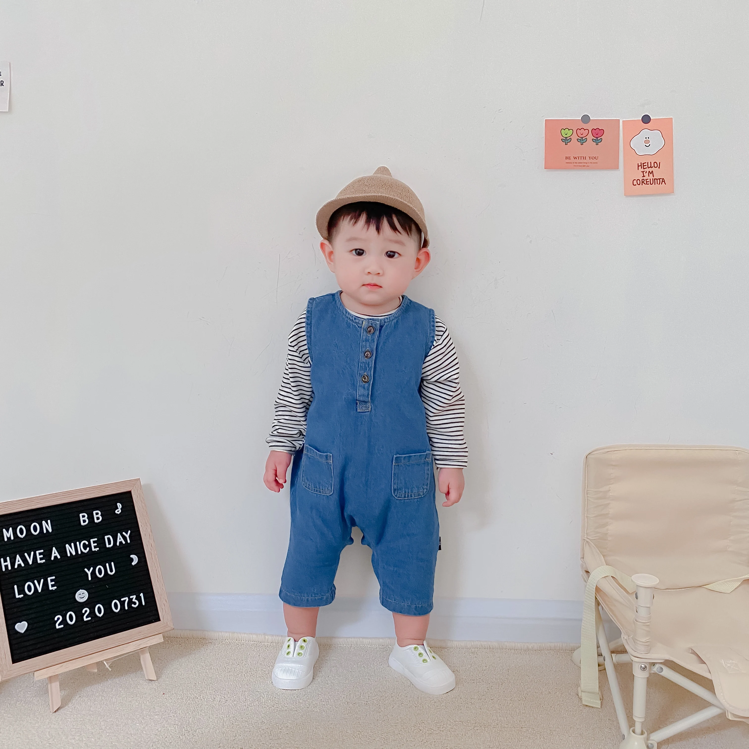 ベビージャンプスーツ デニム ノースリーブボディスーツ つなぎ【mh0006061】