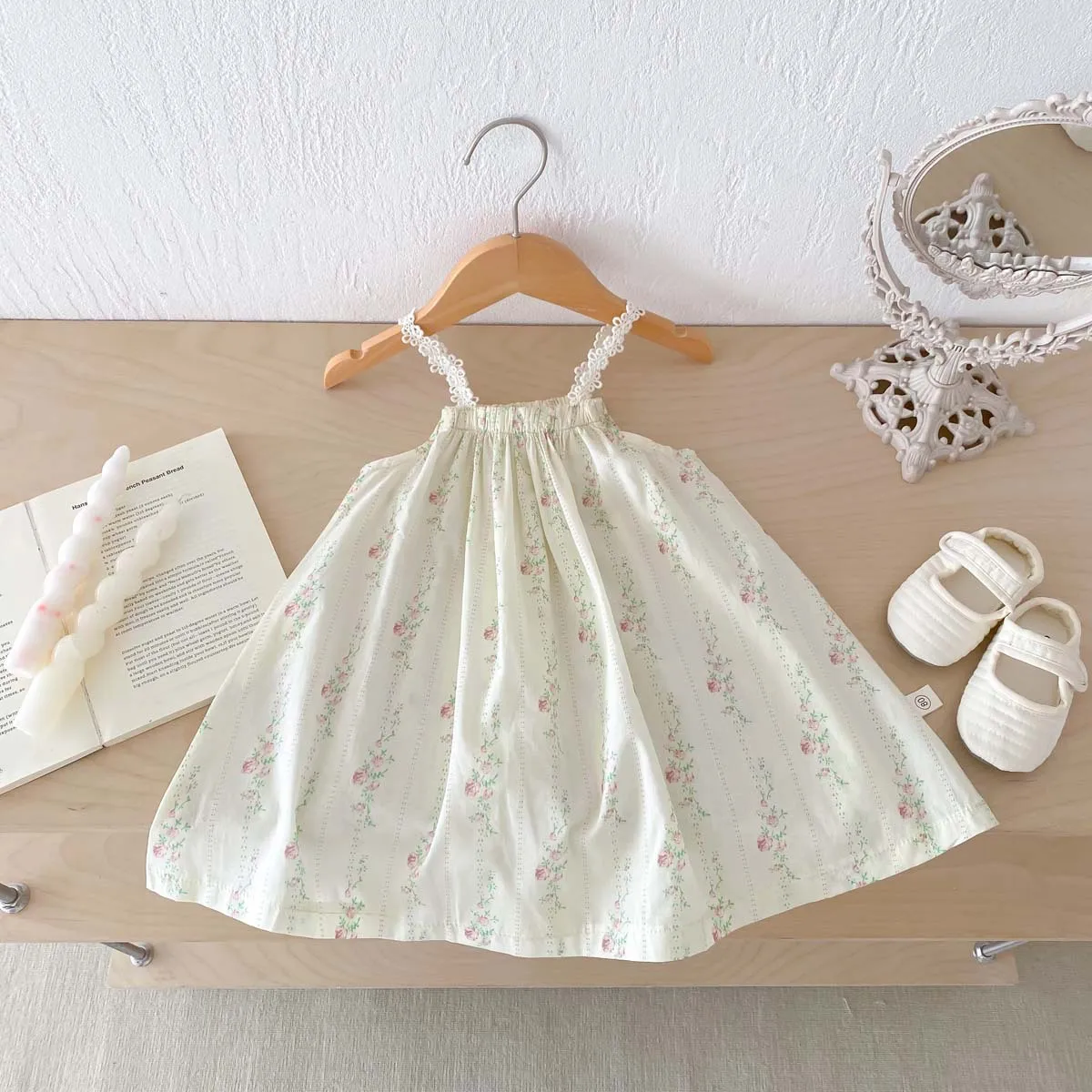 キッズワンピース キャミソールワンピース フラワープリント/刺繍レース【mh0006223】