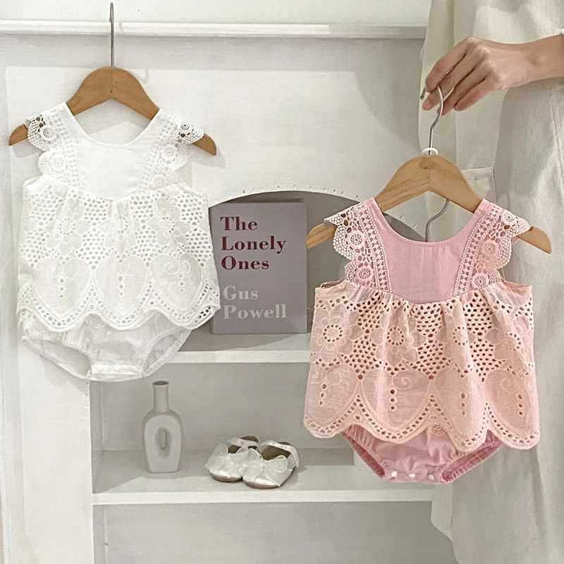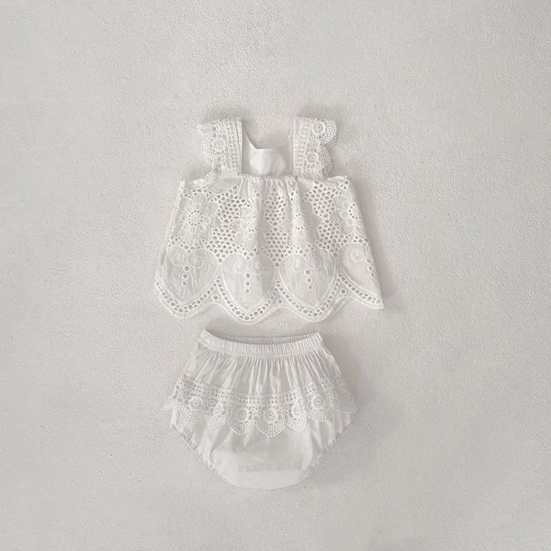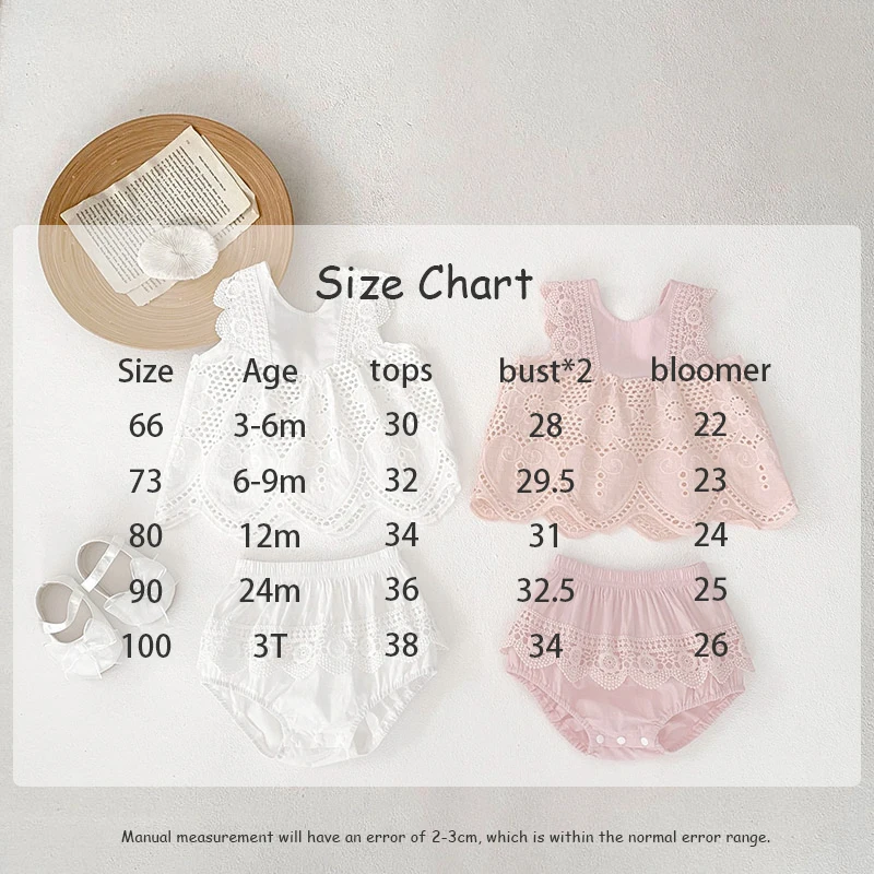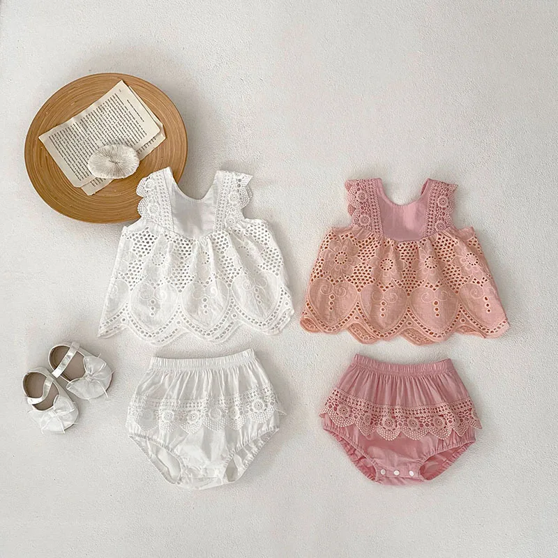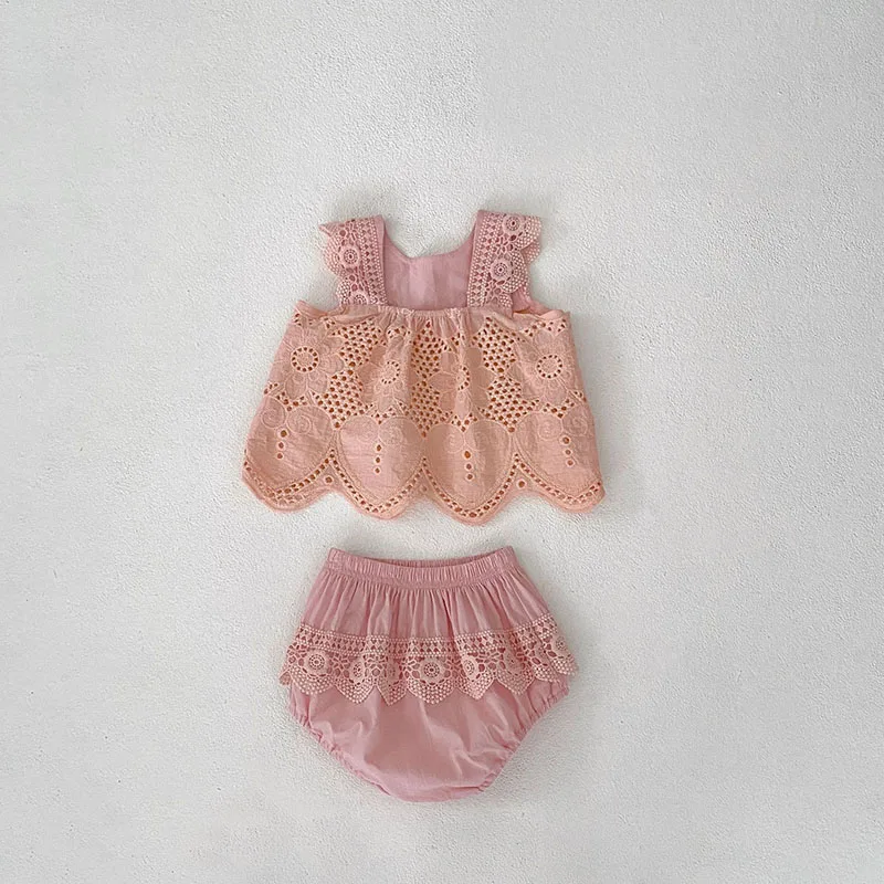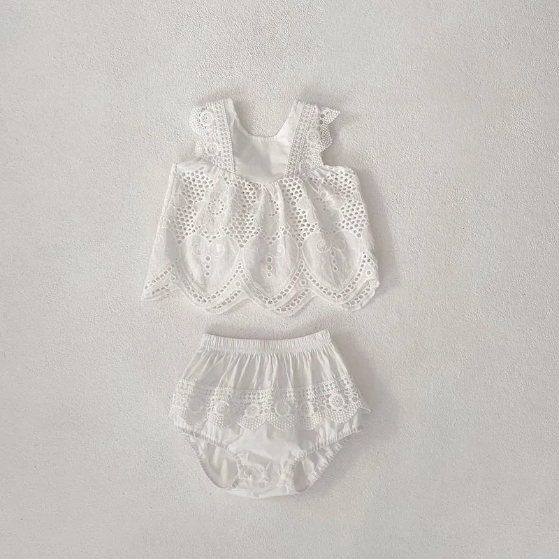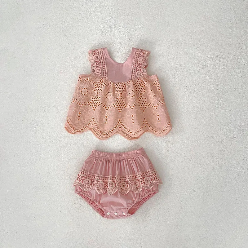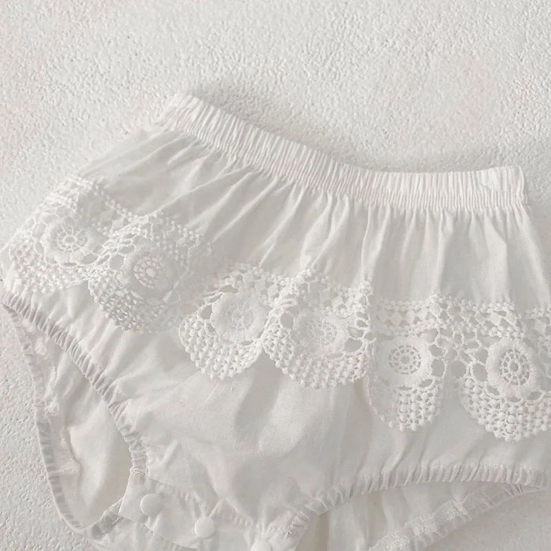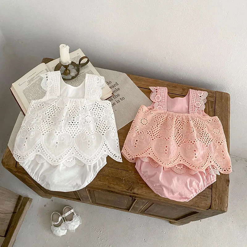 ベビーセットアップ 2点セット レース ノースリーブブラウス+ブルマパンツ 2カラー【mh0006523】