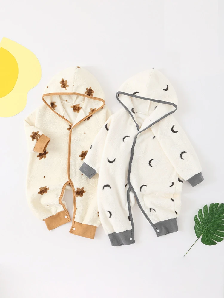 ベビーアウタージャンプスーツ フリースプリントフーディ長袖ロンパース【mh0007883】