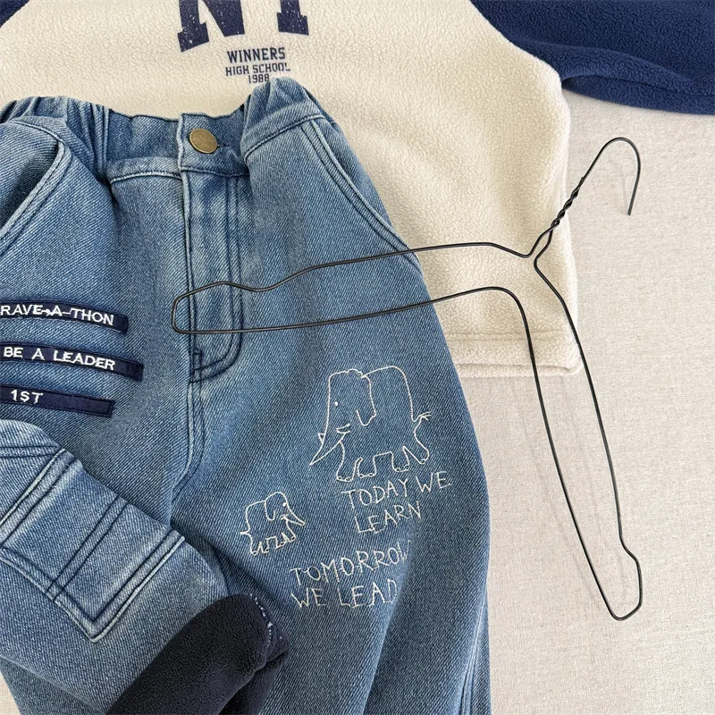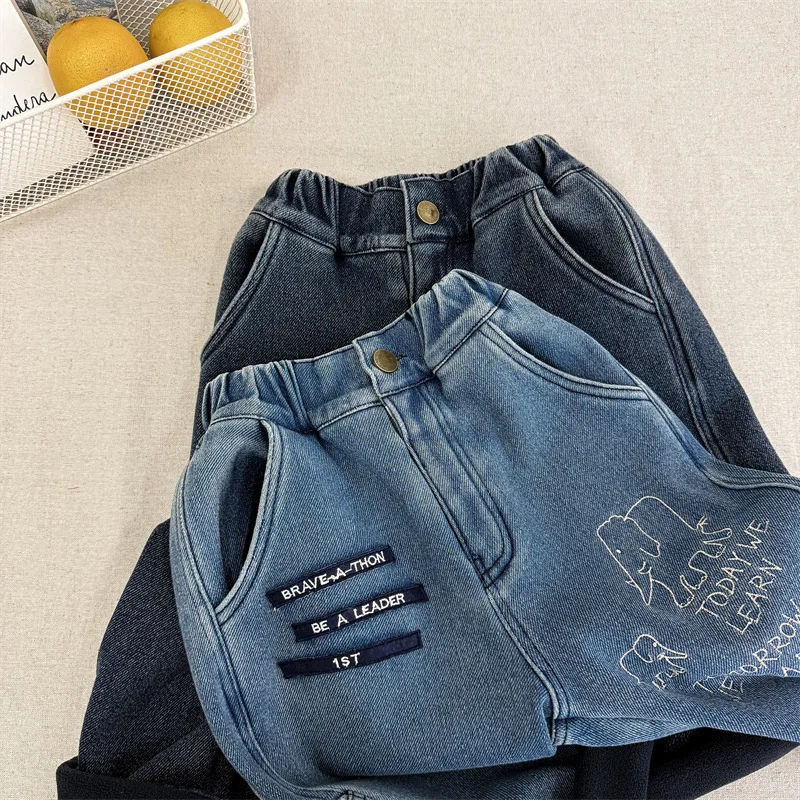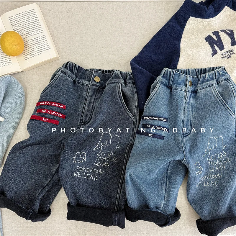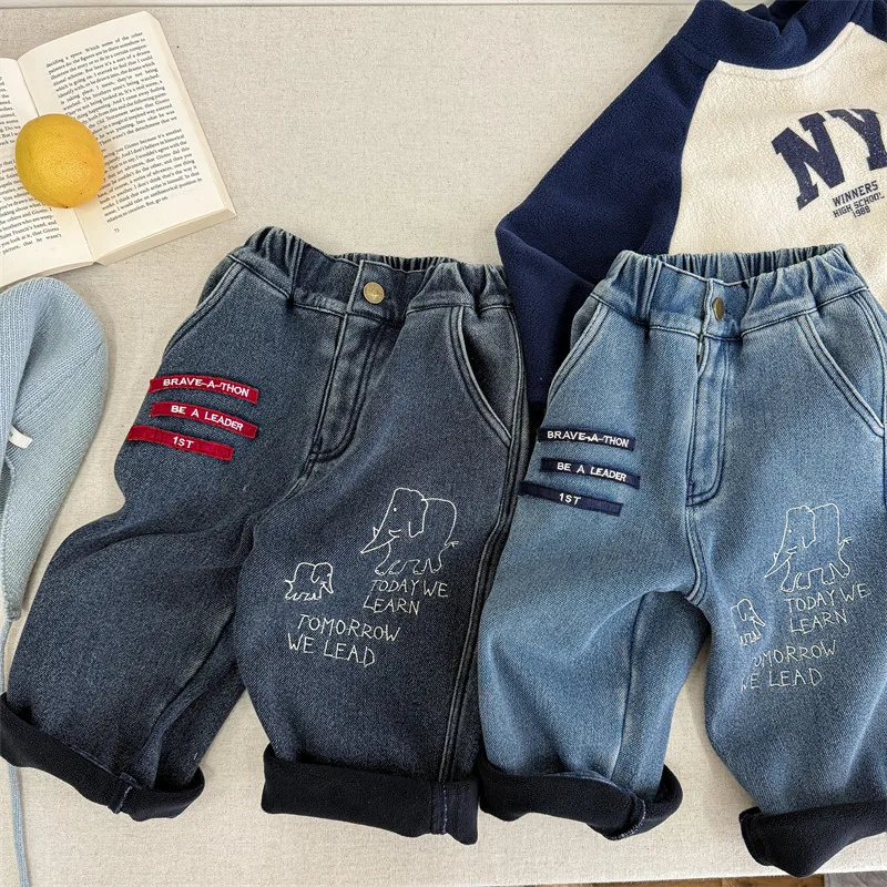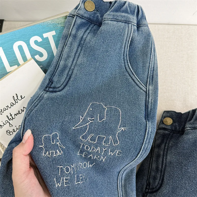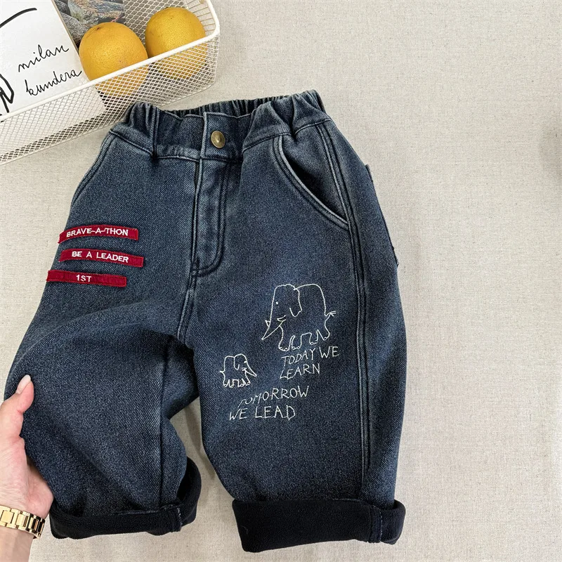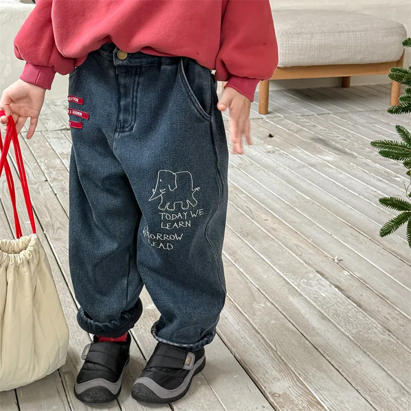 #キッズファッション #ベビー服 #象刺繍パンツ #裏フリース #デニムジーンズ #韓国子供服 #冬用パンツ