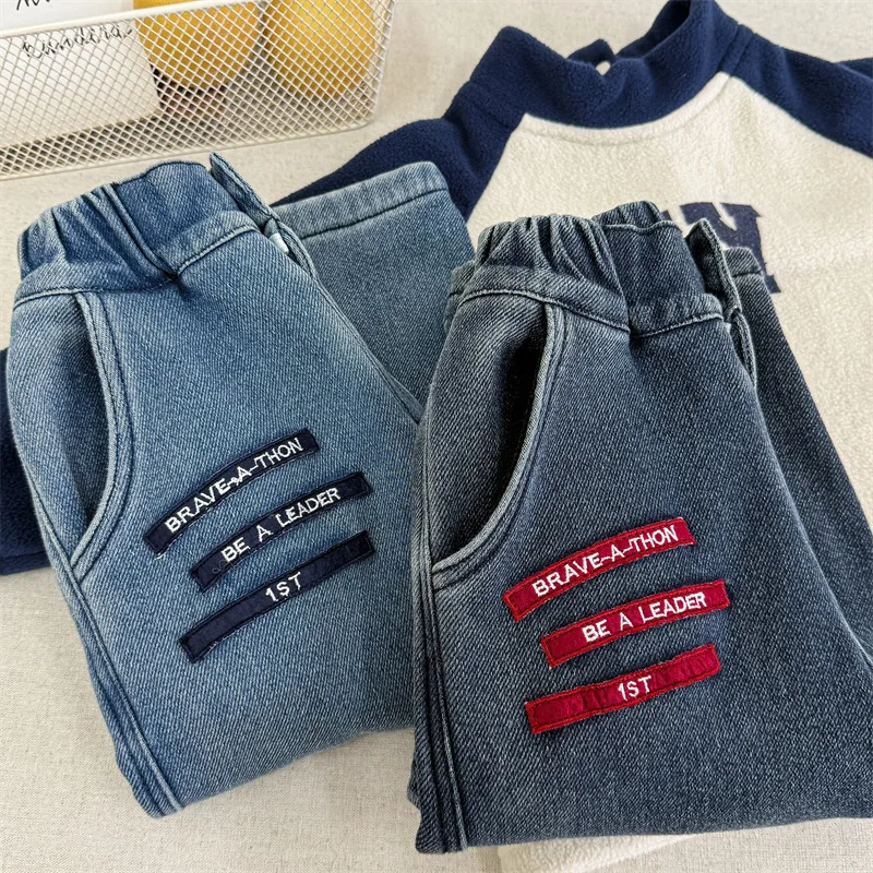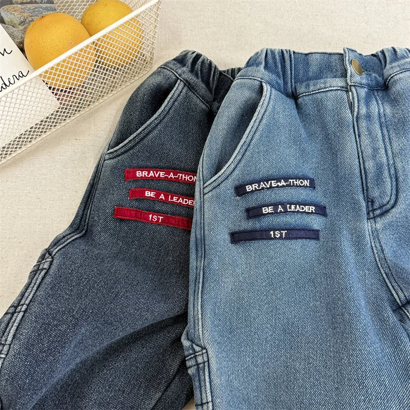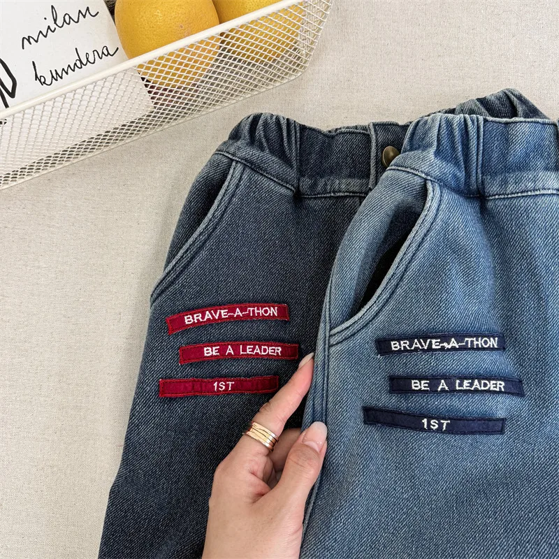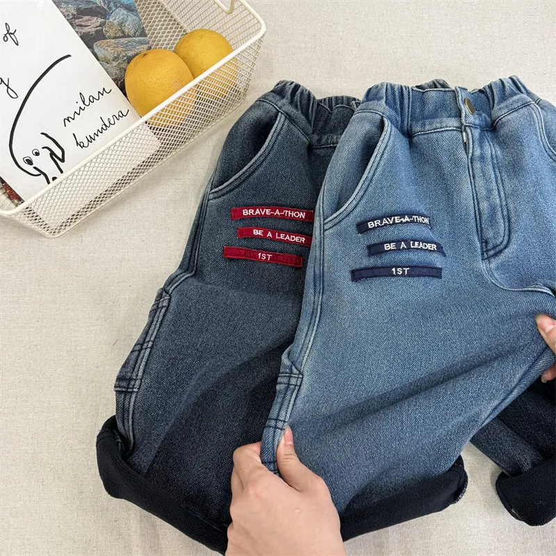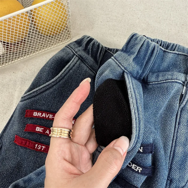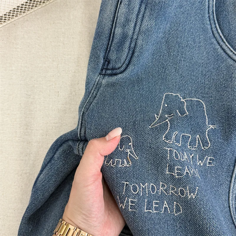 #キッズファッション #ベビー服 #象刺繍パンツ #裏フリース #デニムジーンズ #韓国子供服 #冬用パンツ
