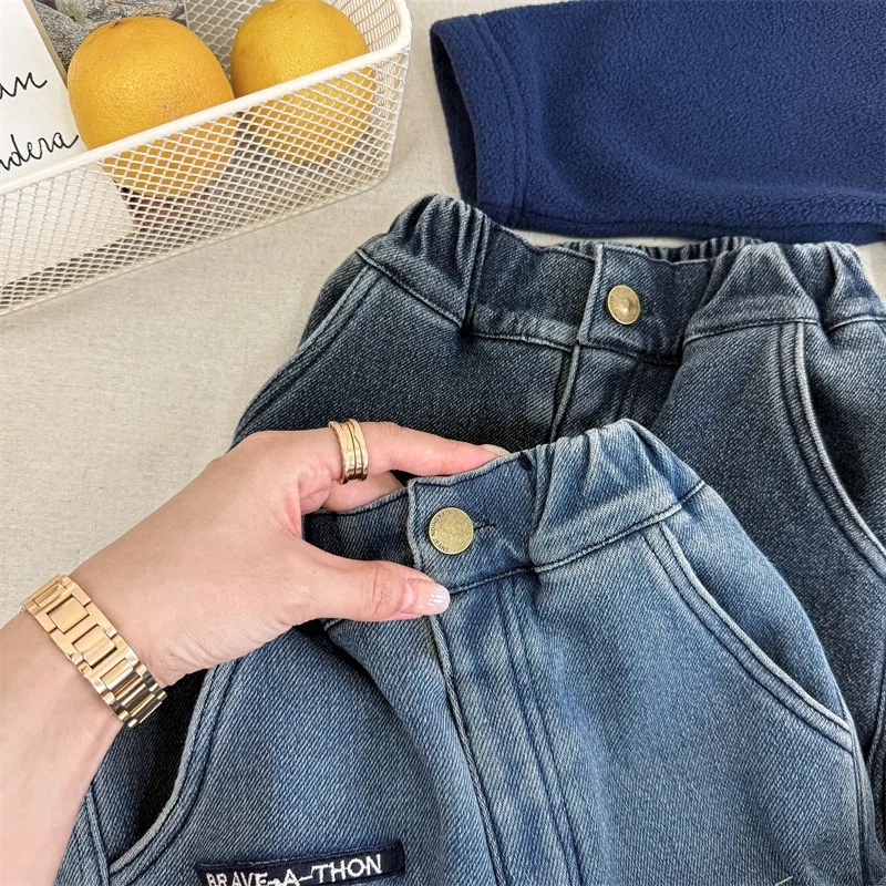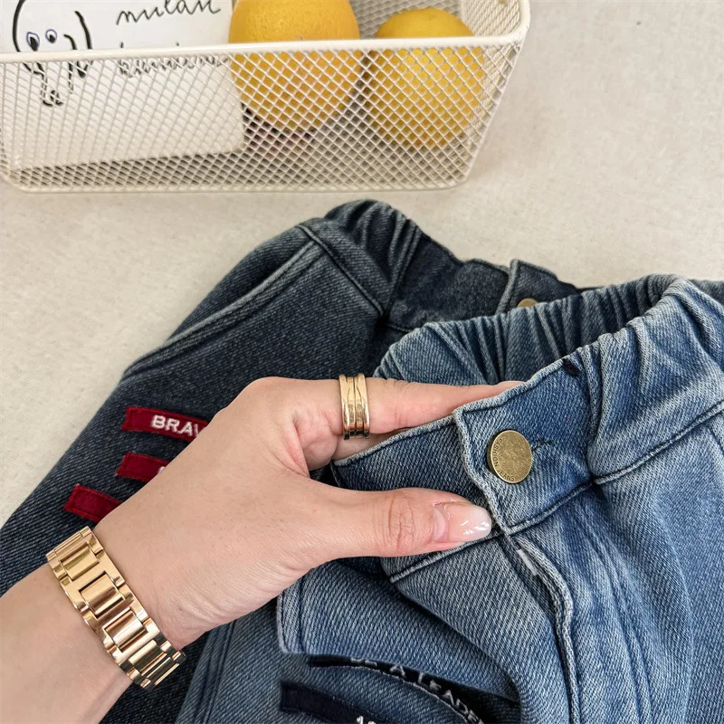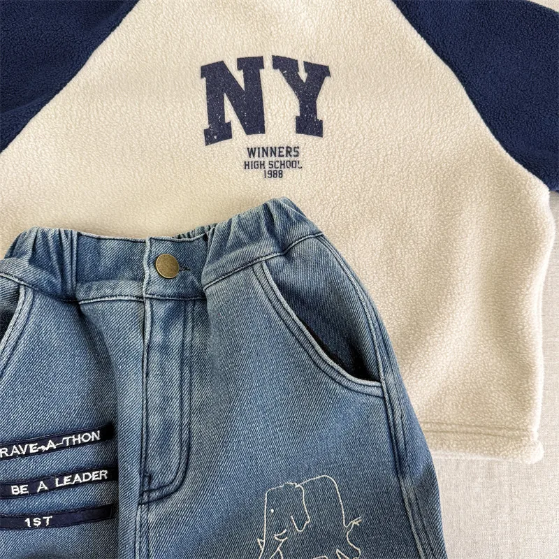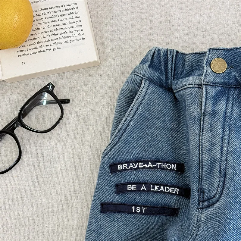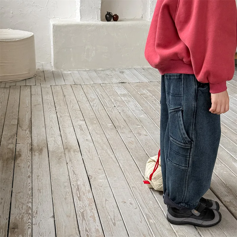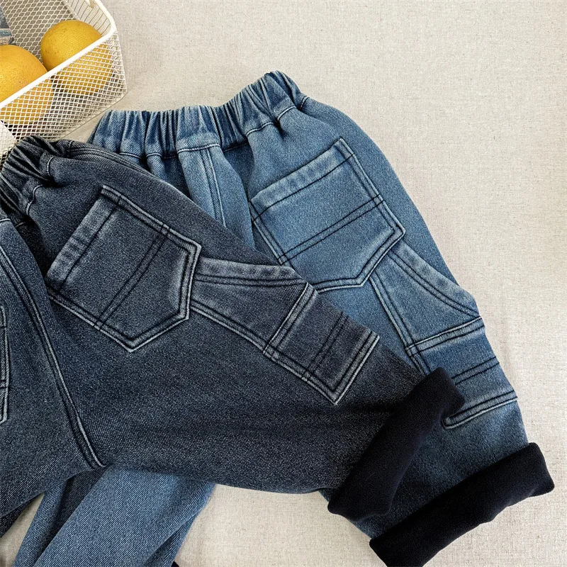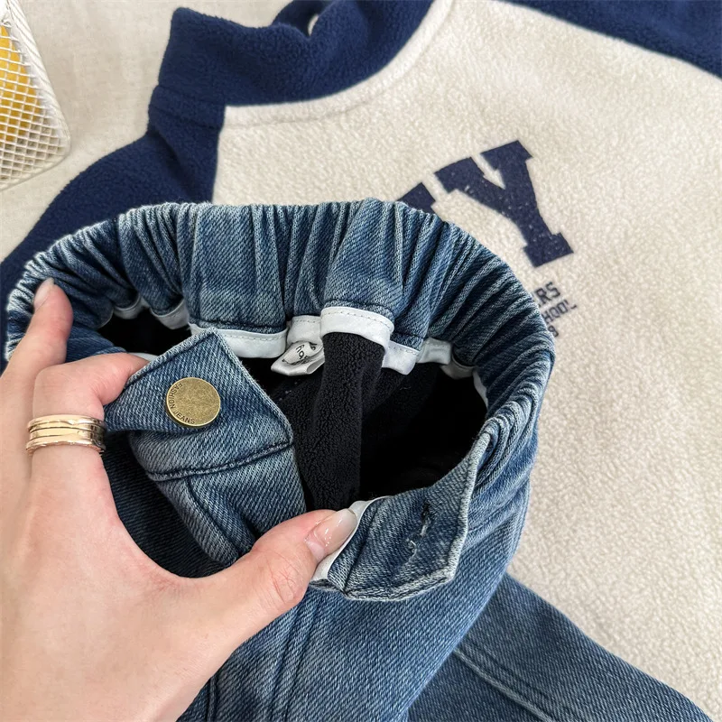 #キッズファッション #ベビー服 #象刺繍パンツ #裏フリース #デニムジーンズ #韓国子供服 #冬用パンツ