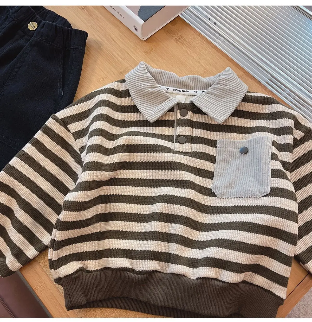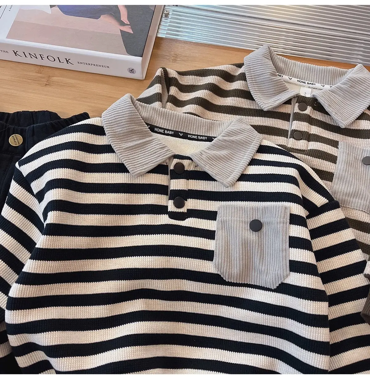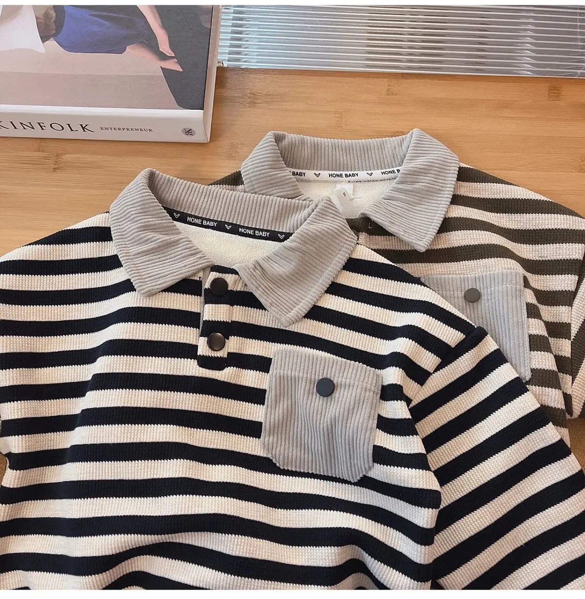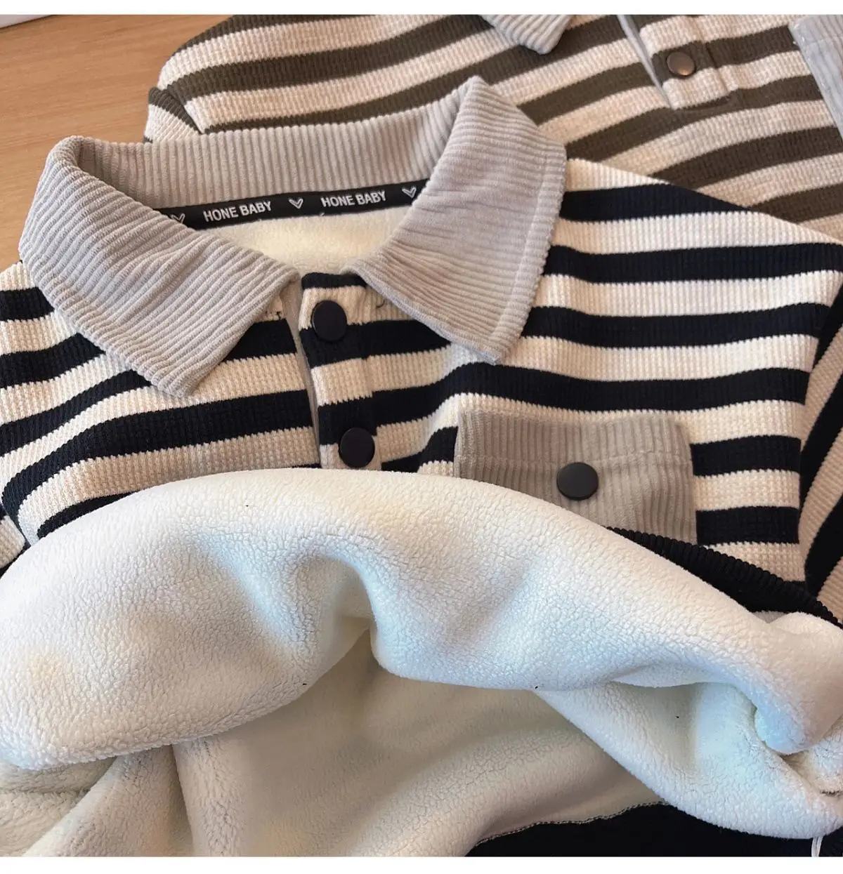 #キッズファッション #ベビー服 #ボーダーポロシャツ #裏フリース #長袖トップス #韓国子供服 #冬用トップス