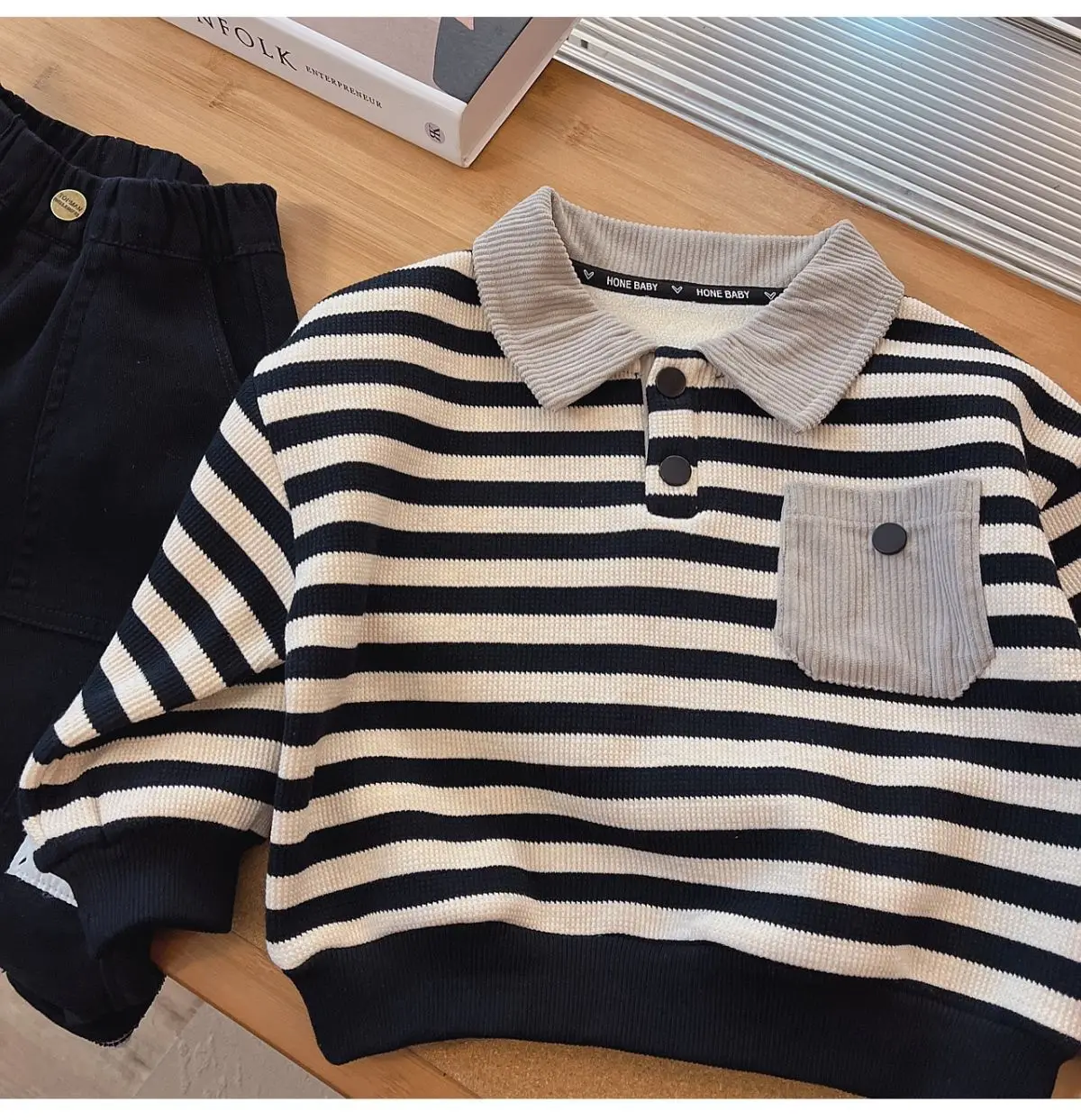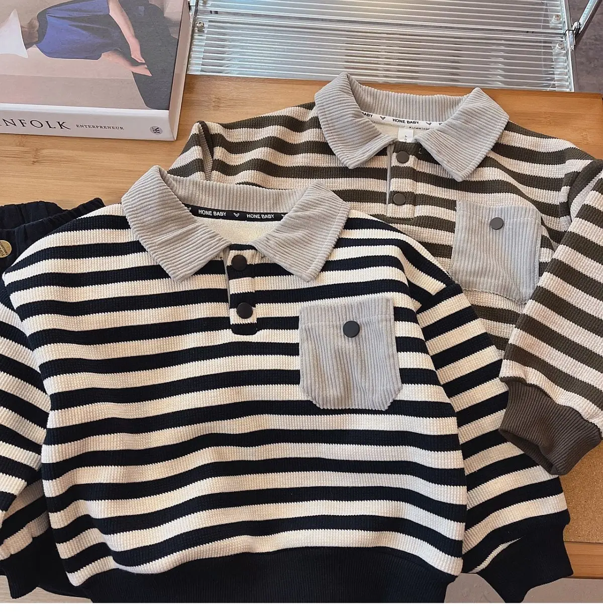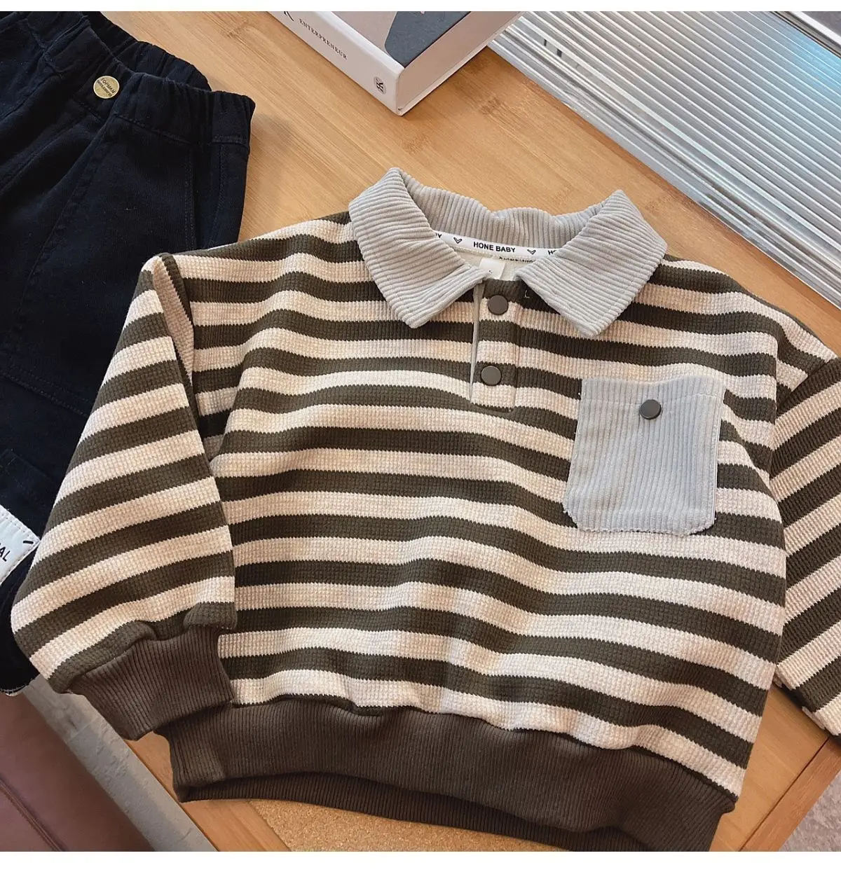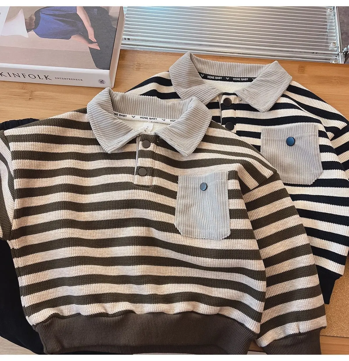 #キッズファッション #ベビー服 #ボーダーポロシャツ #裏フリース #長袖トップス #韓国子供服 #冬用トップス