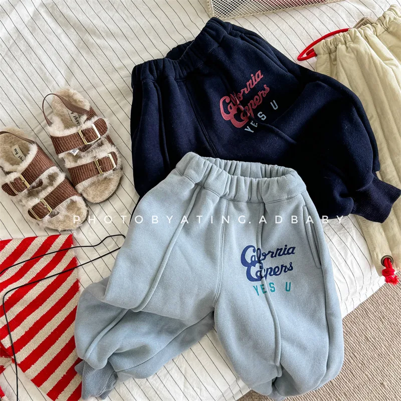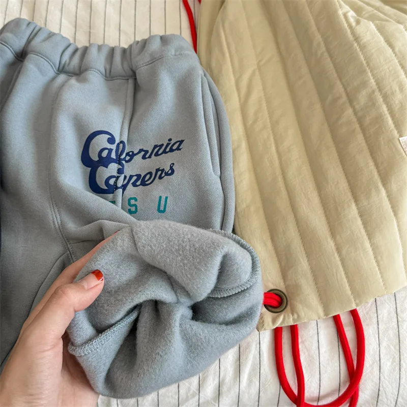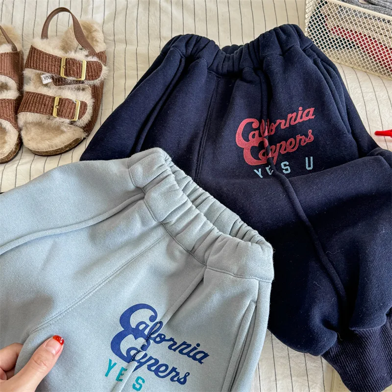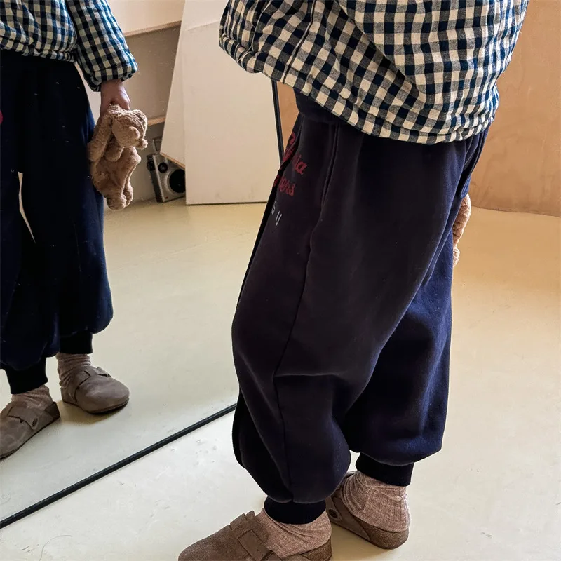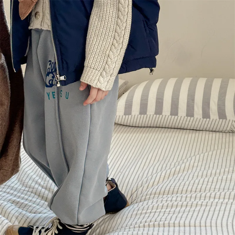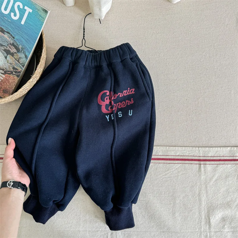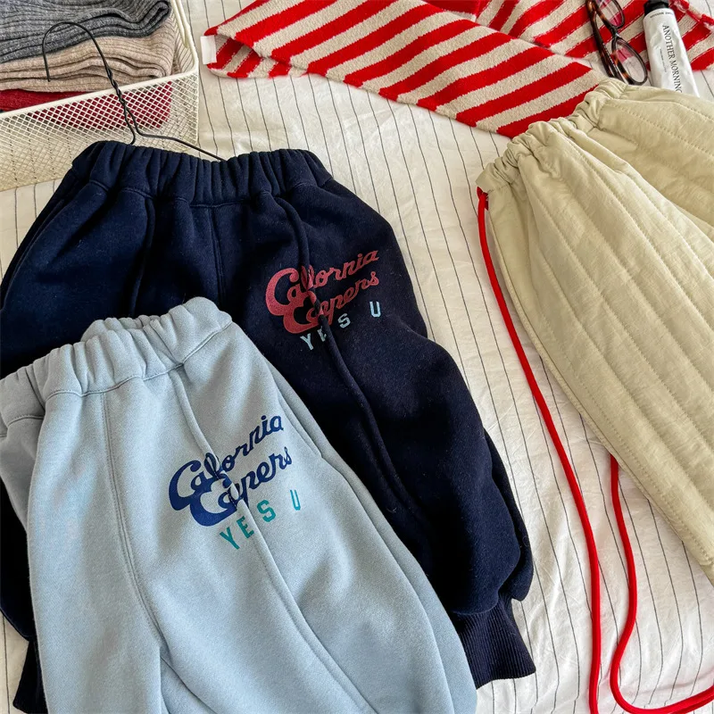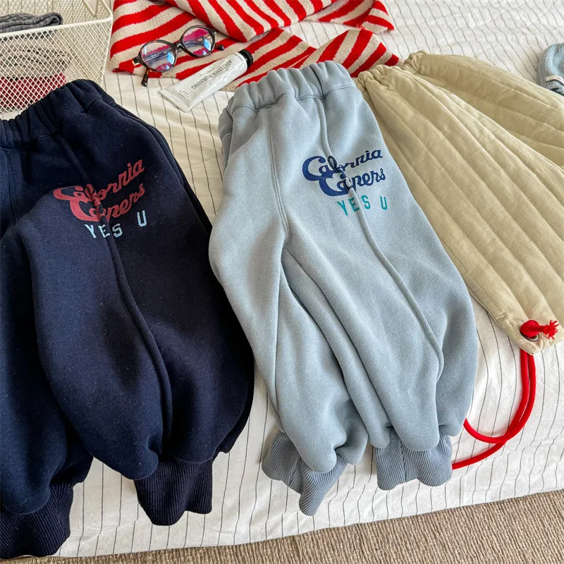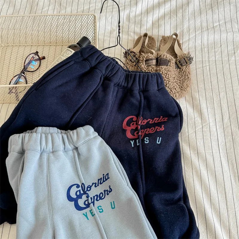 キッズパンツ レターロゴプリント裏フリースロングスウェットパンツ【mh0008450】