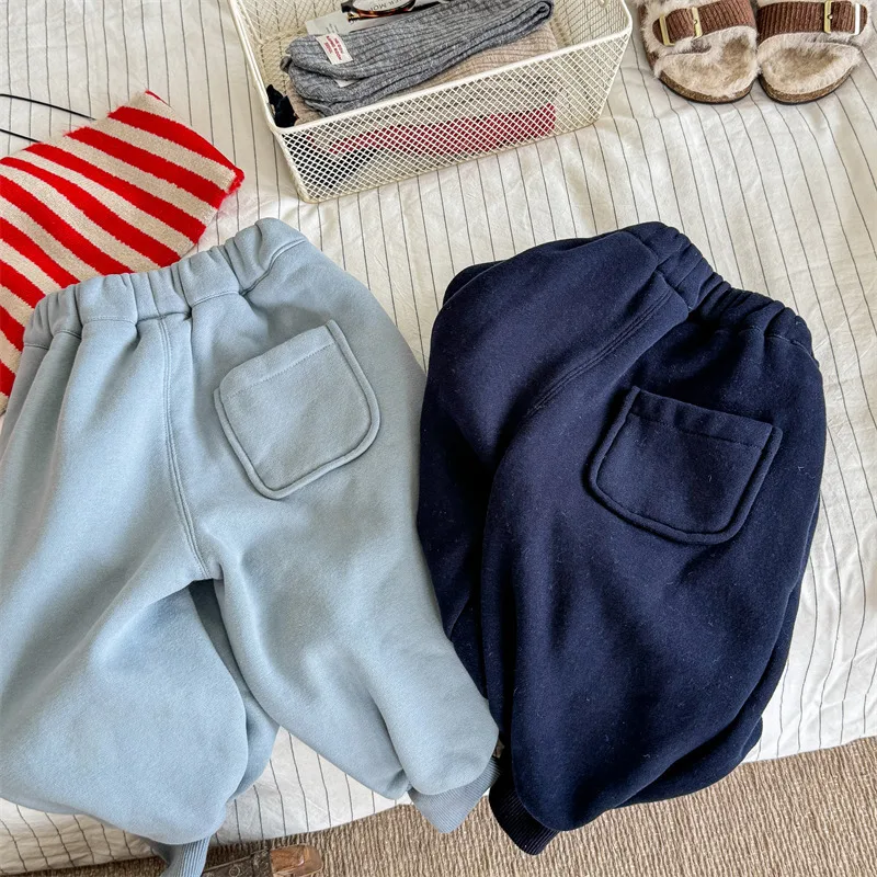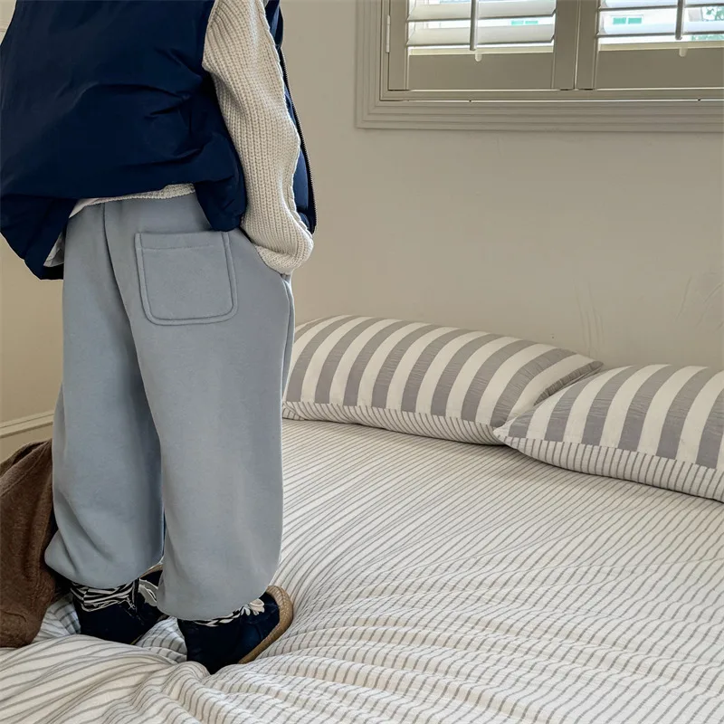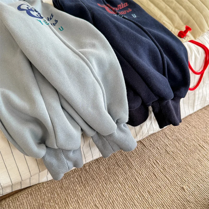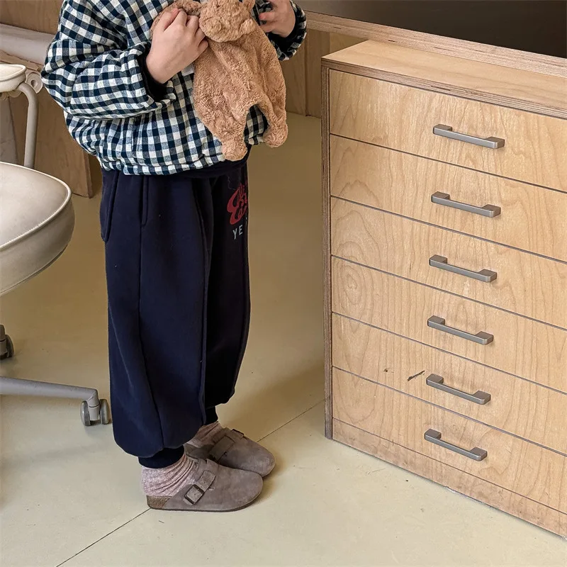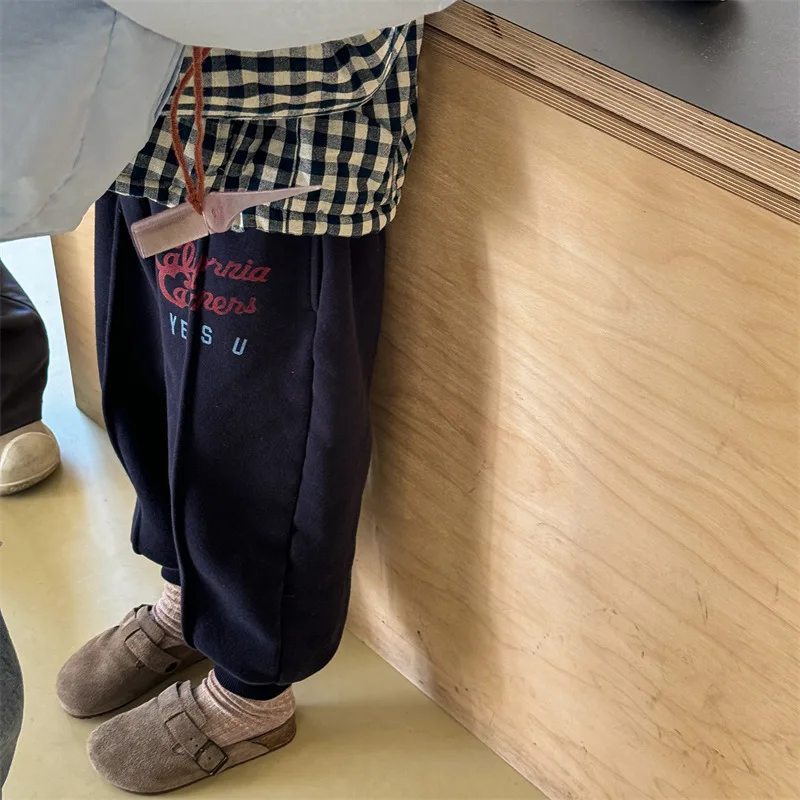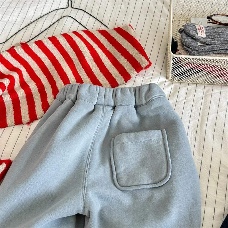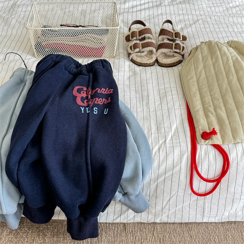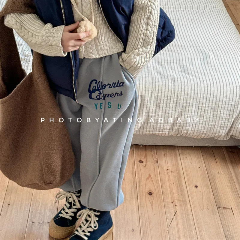 キッズパンツ レターロゴプリント裏フリースロングスウェットパンツ【mh0008450】