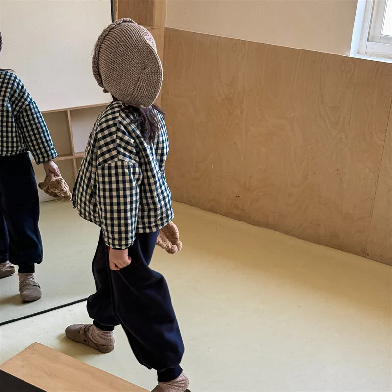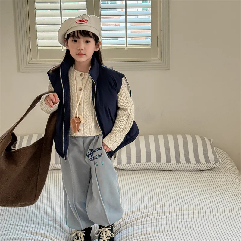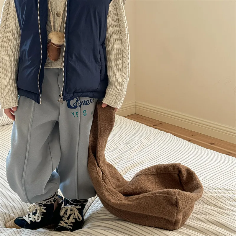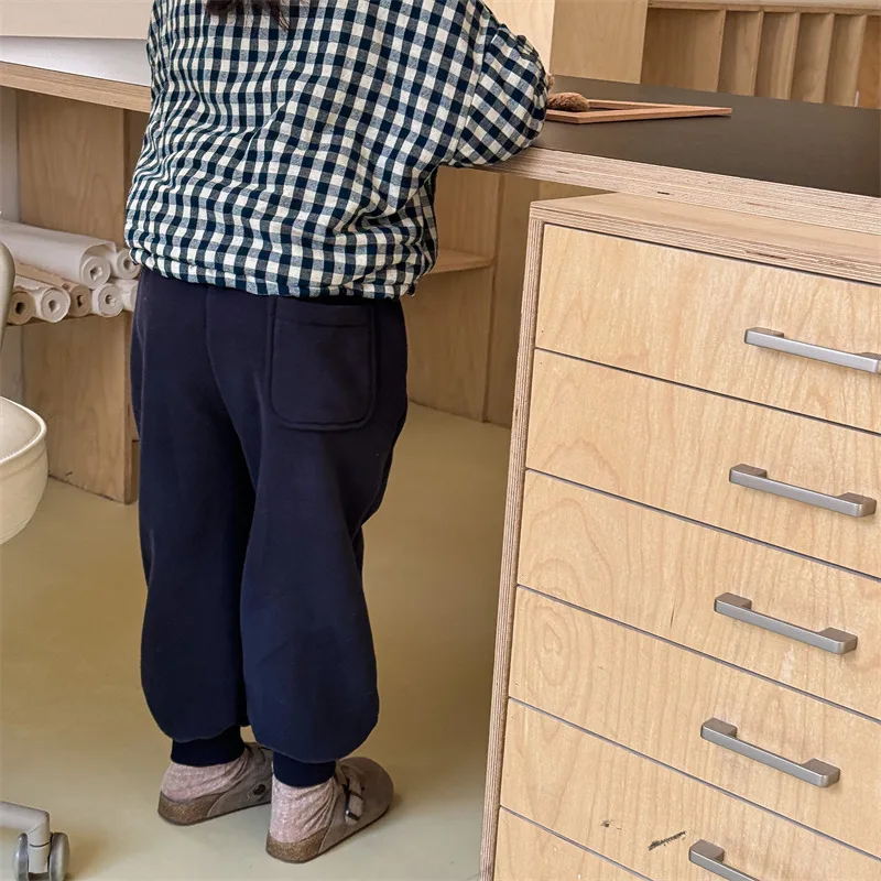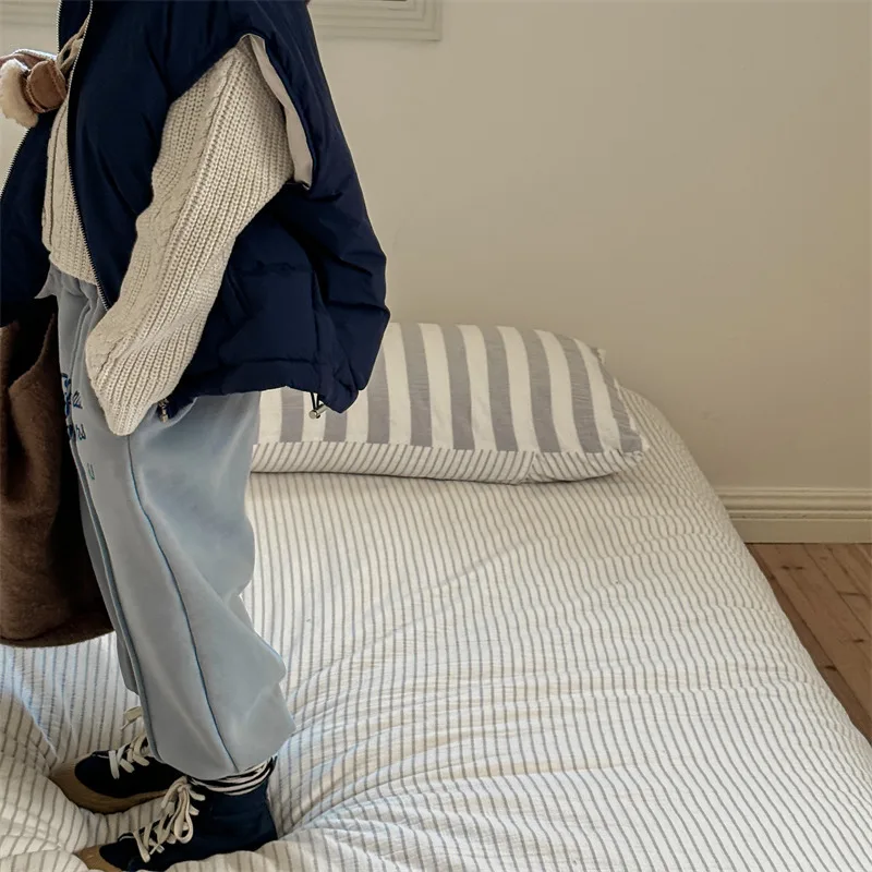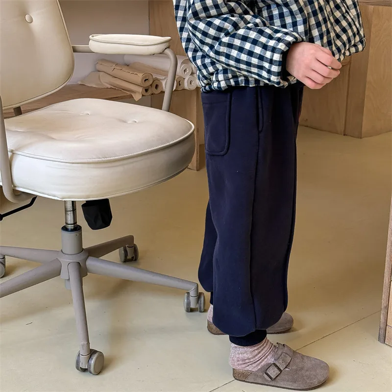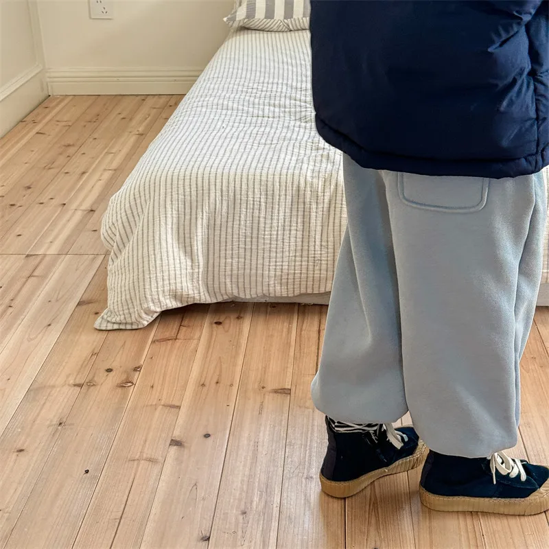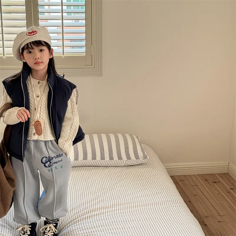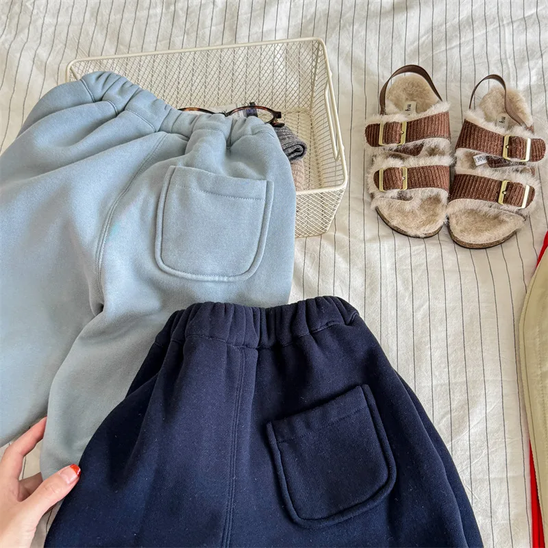 キッズパンツ レターロゴプリント裏フリースロングスウェットパンツ【mh0008450】