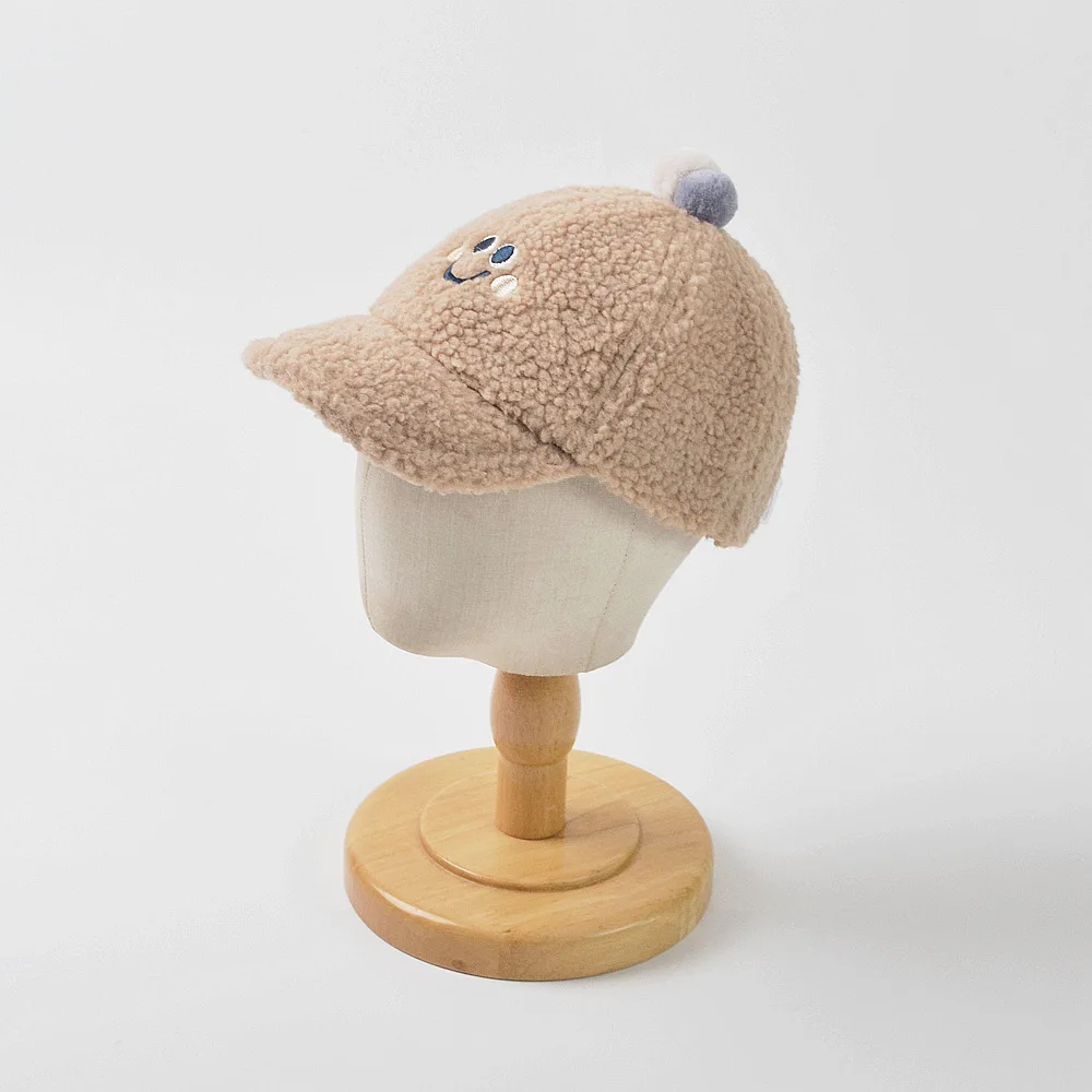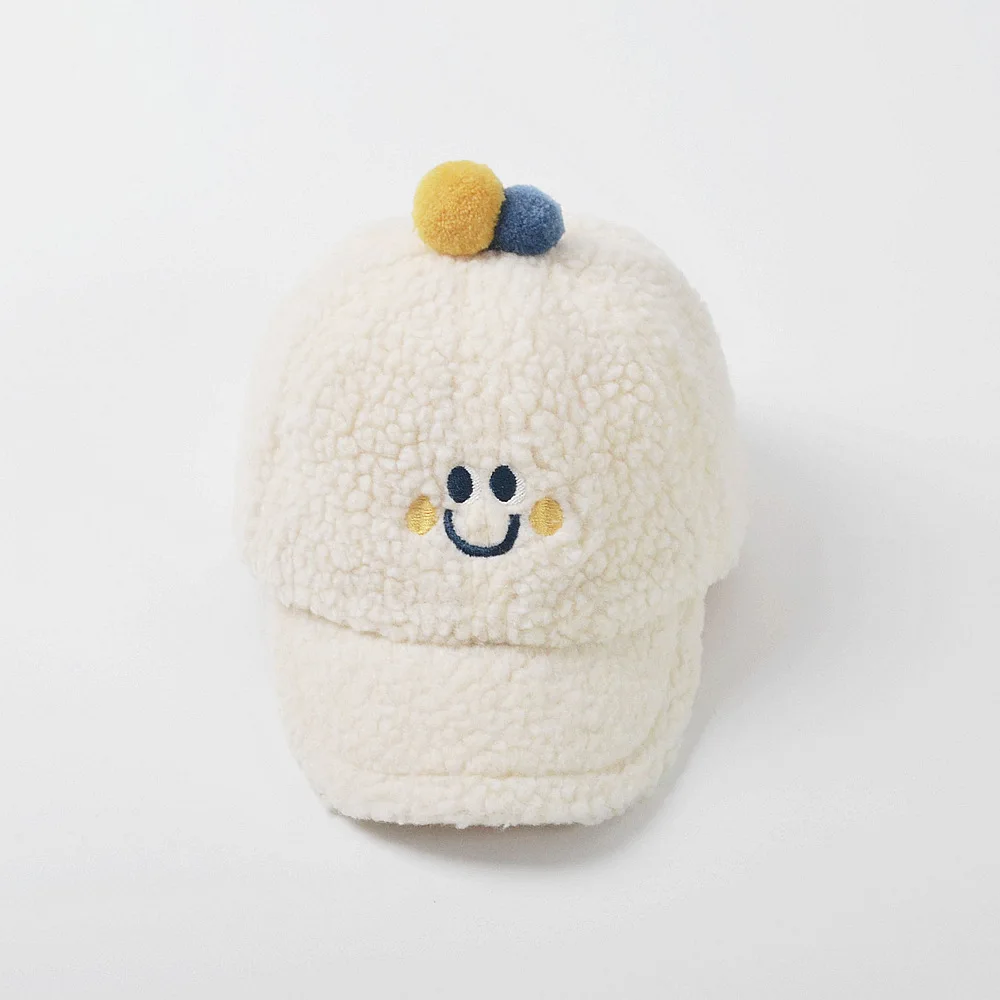 ベビーキッズ帽子 スマイルフェイス刺繍ボアフリース野球帽キャップ【mh0008634】