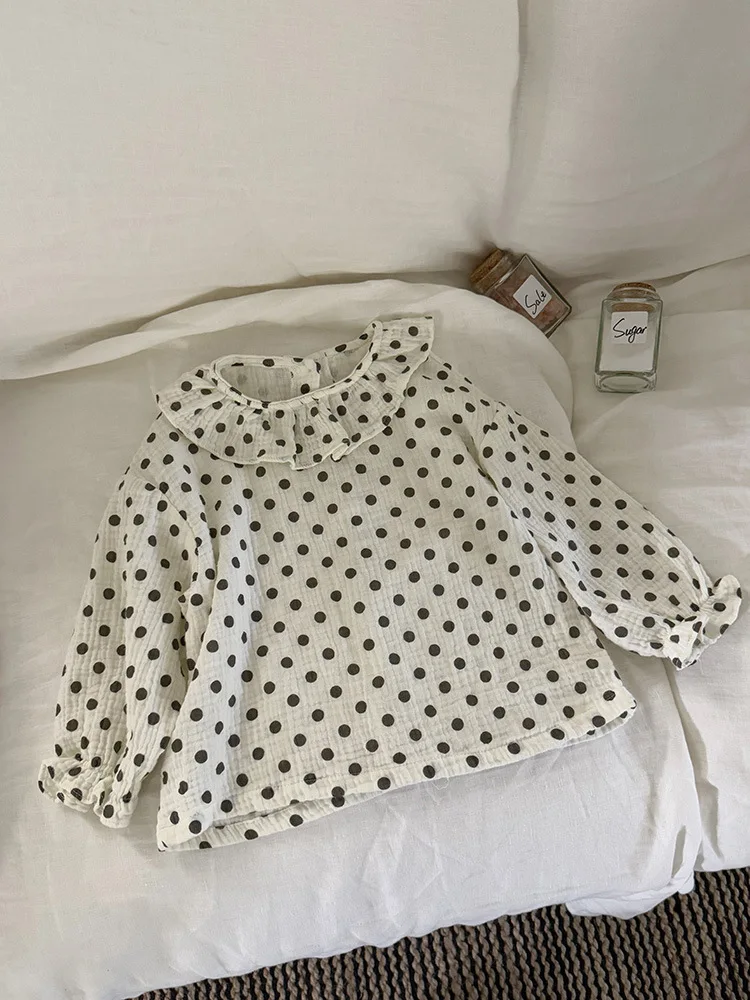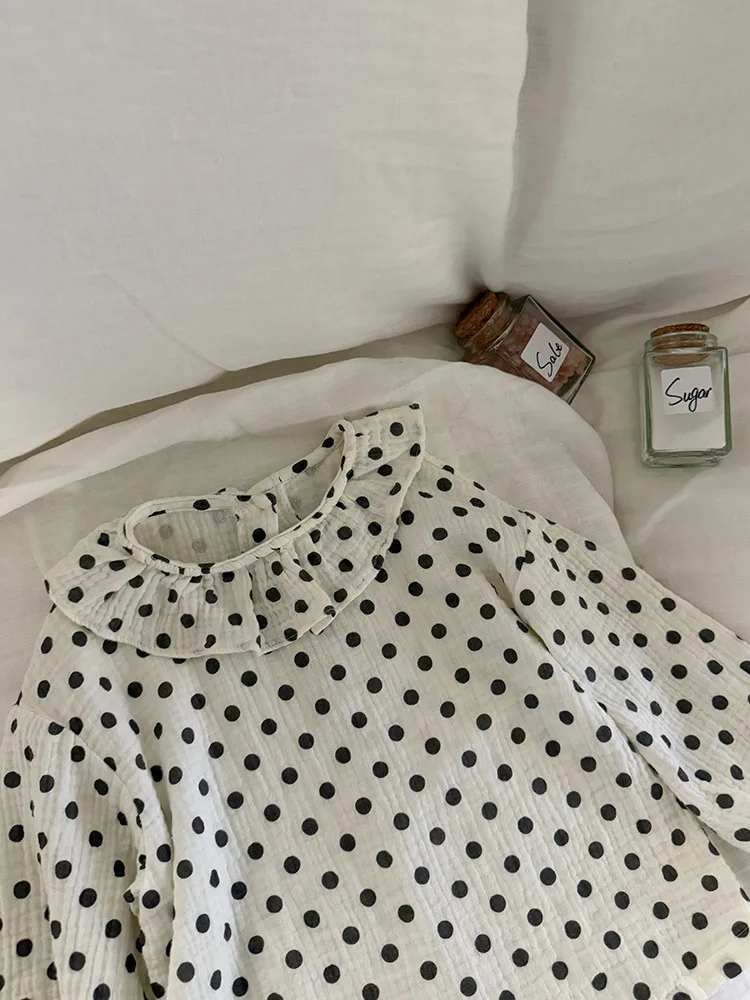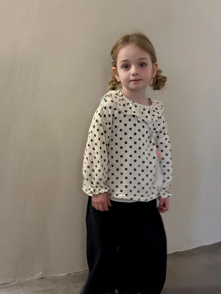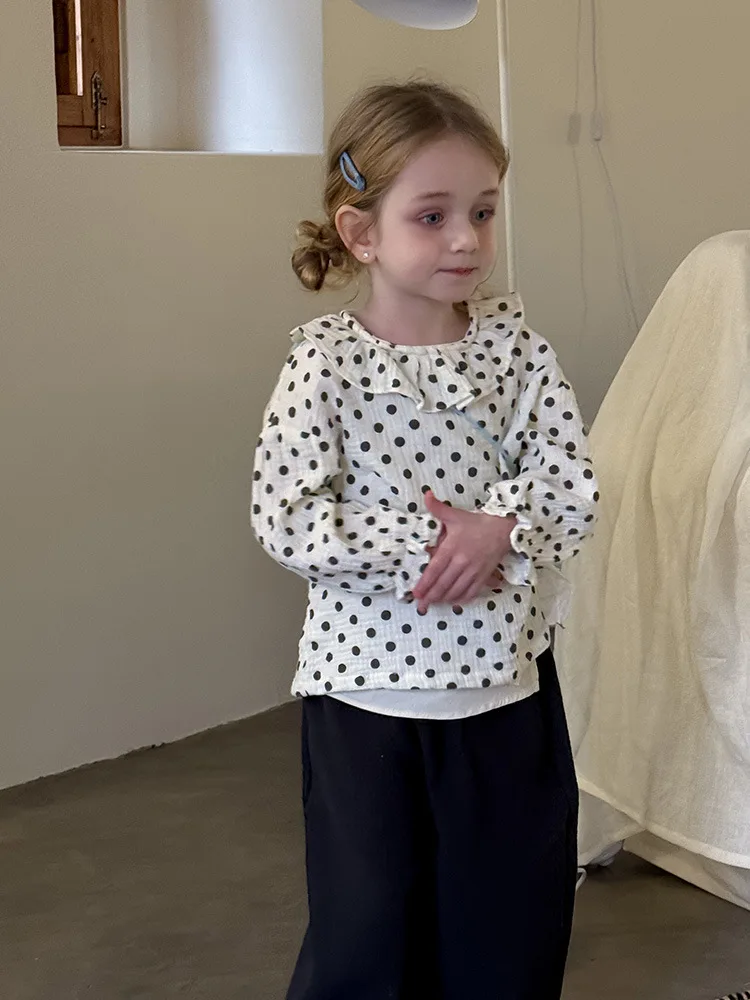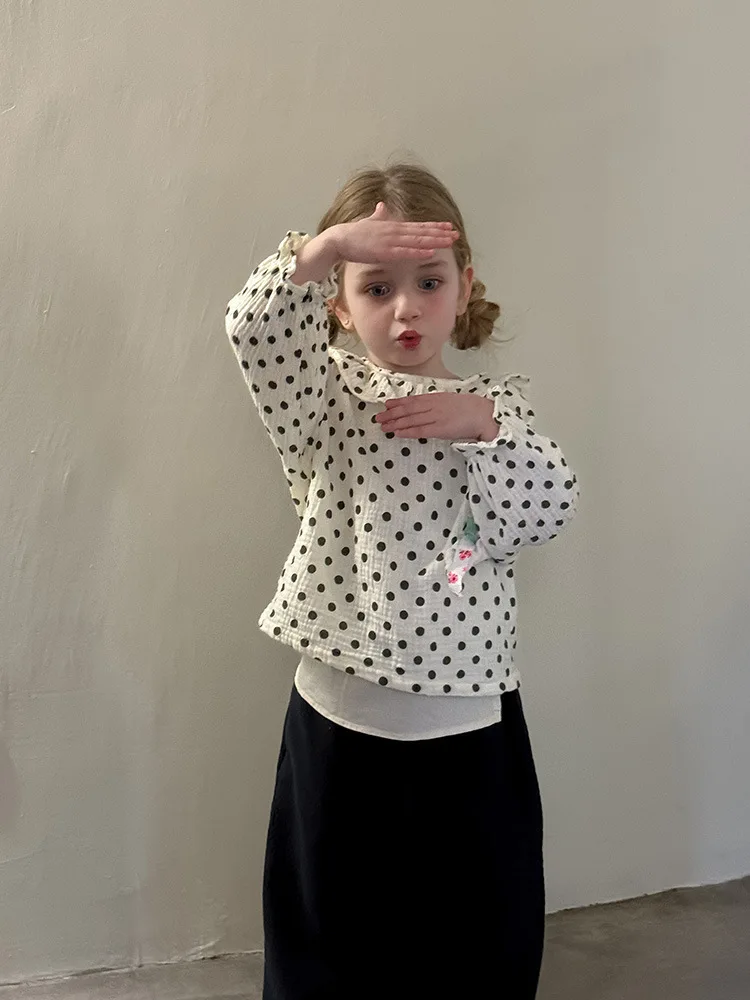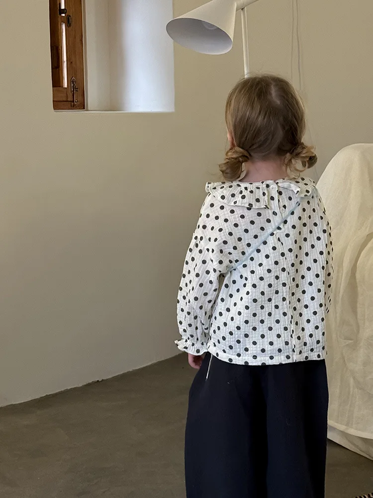 #キッズブラウス #長袖トップス #フリル襟 #水玉ドット #ストライプ柄 #子供服