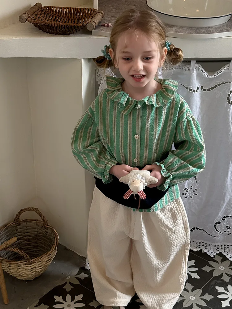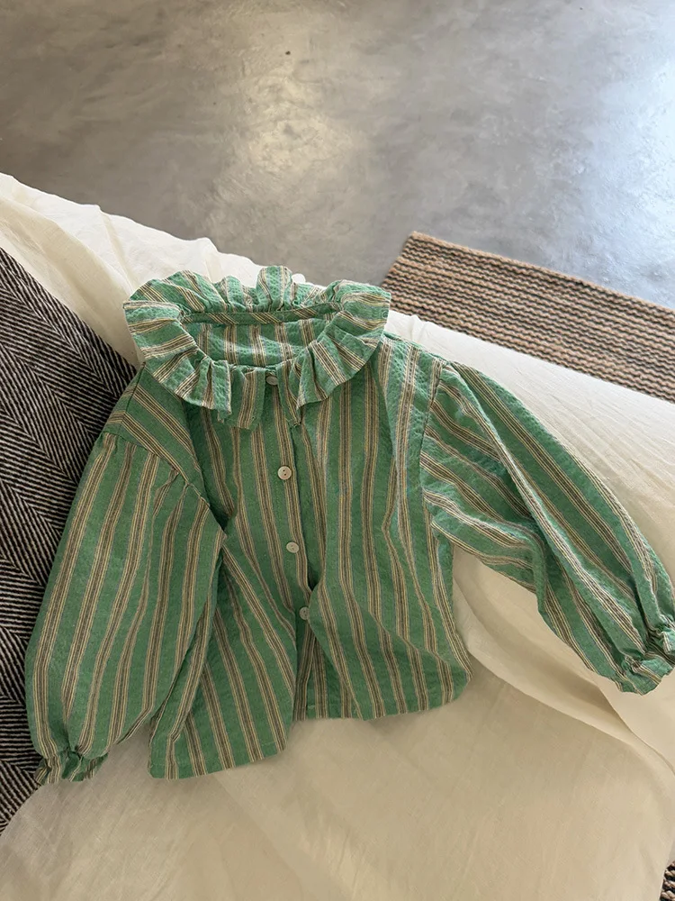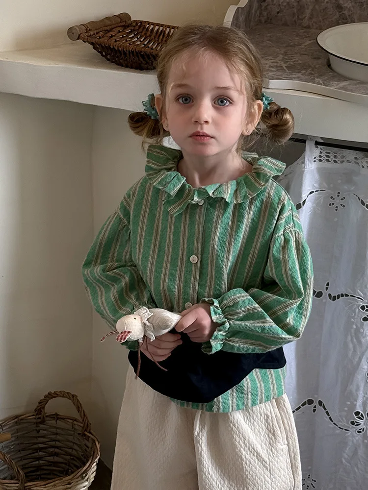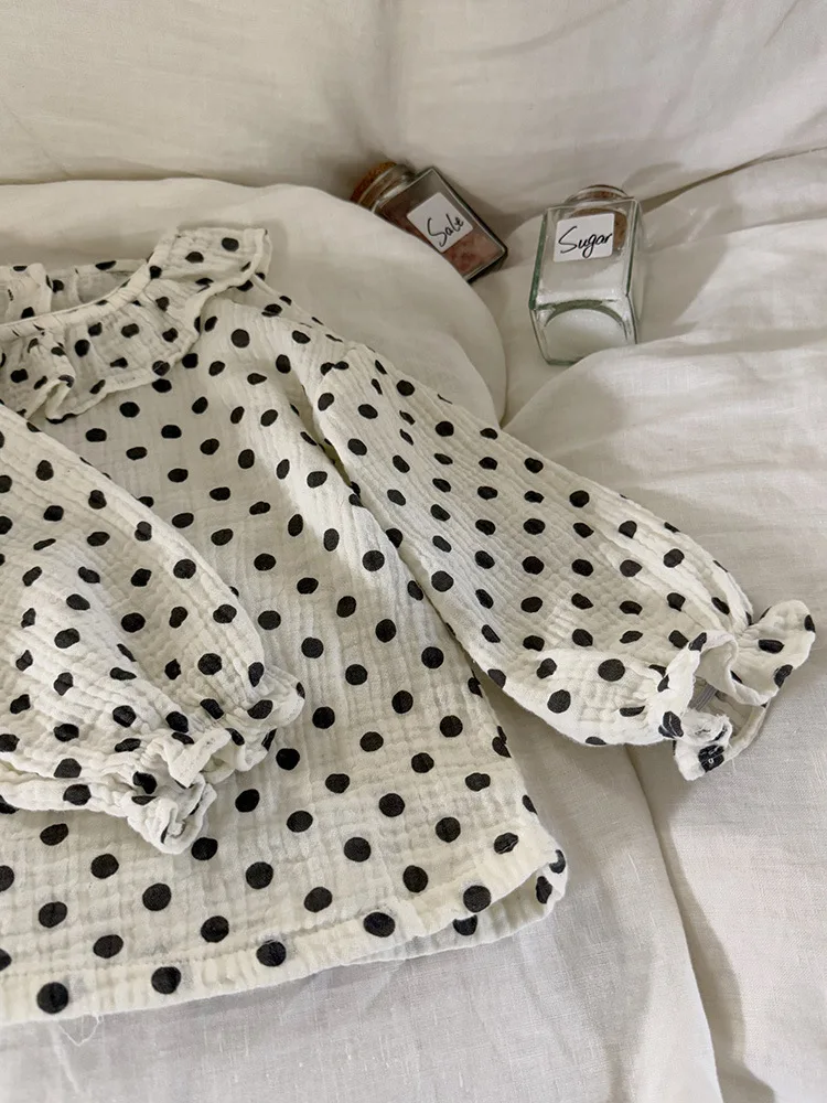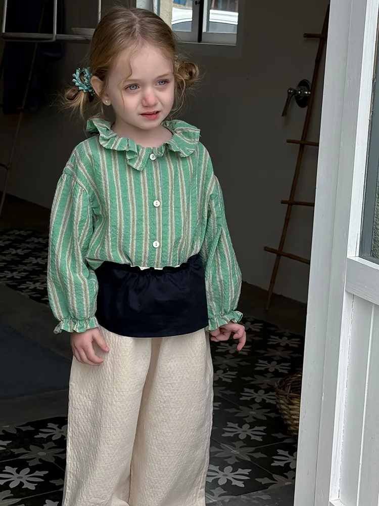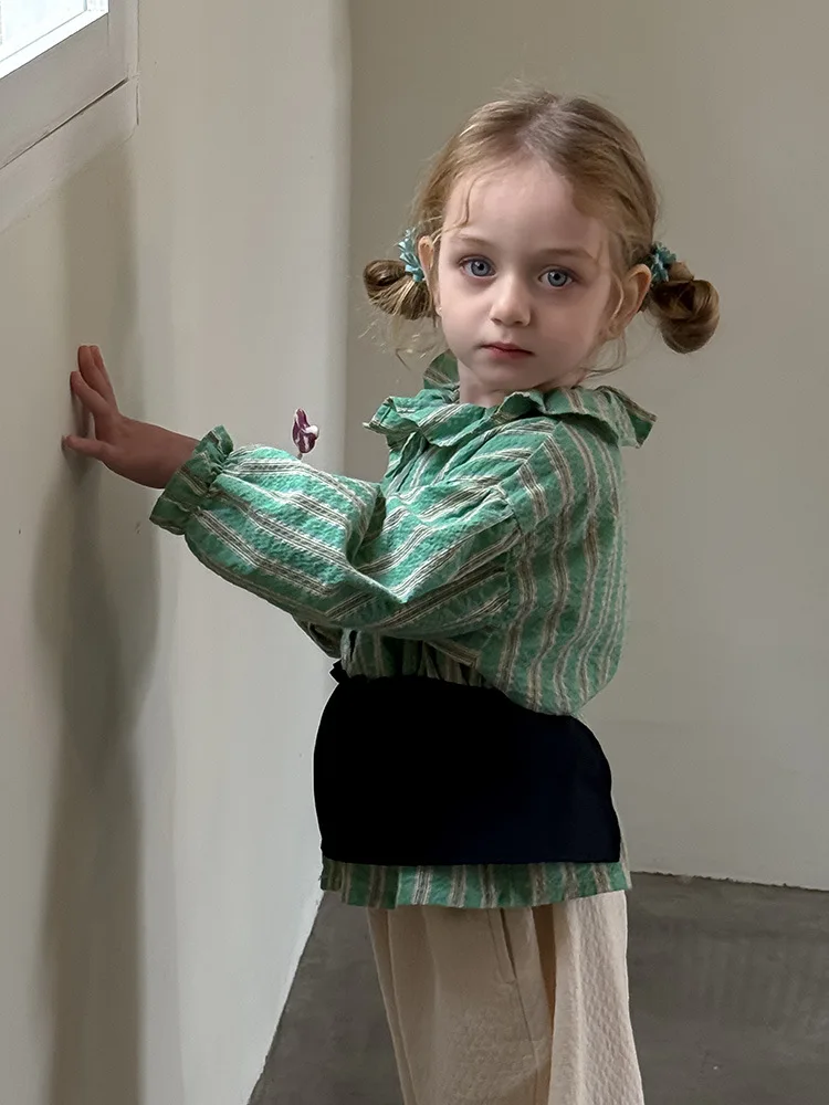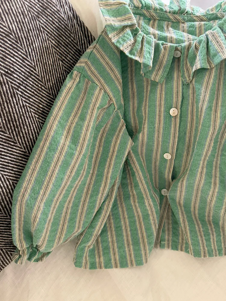 #キッズブラウス #長袖トップス #フリル襟 #水玉ドット #ストライプ柄 #子供服