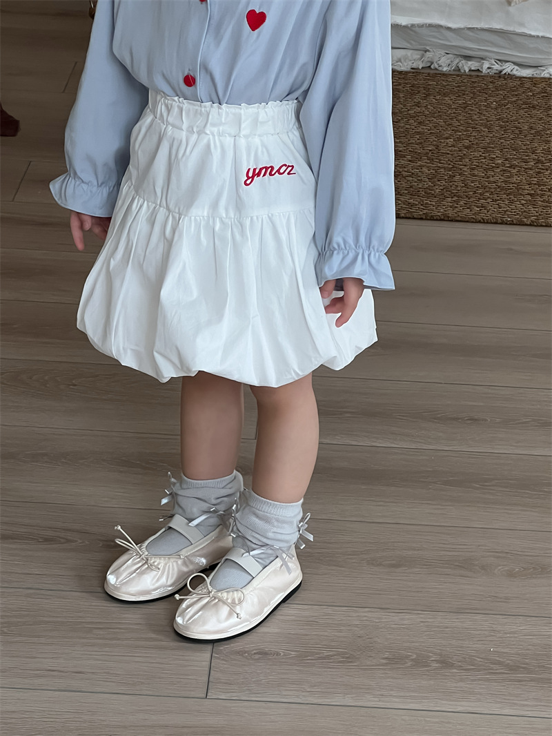 #キッズファッション #バルーンスカート #ロゴ刺繍 #おしゃれ子供服 #カジュアルコーデ #韓国風スタイル