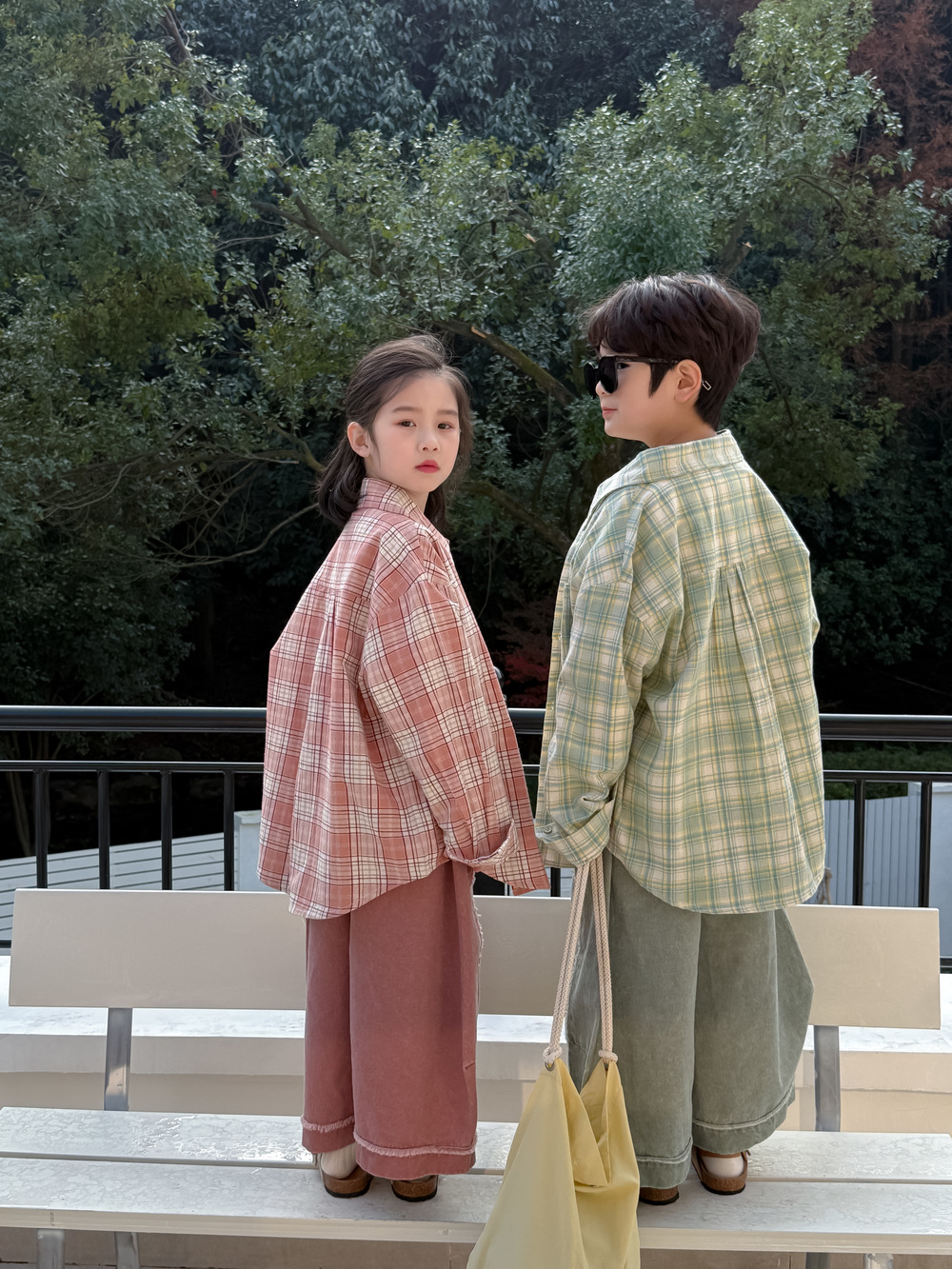 キッズトップス レトロチェック長袖シャツブラウス【mh0009101】