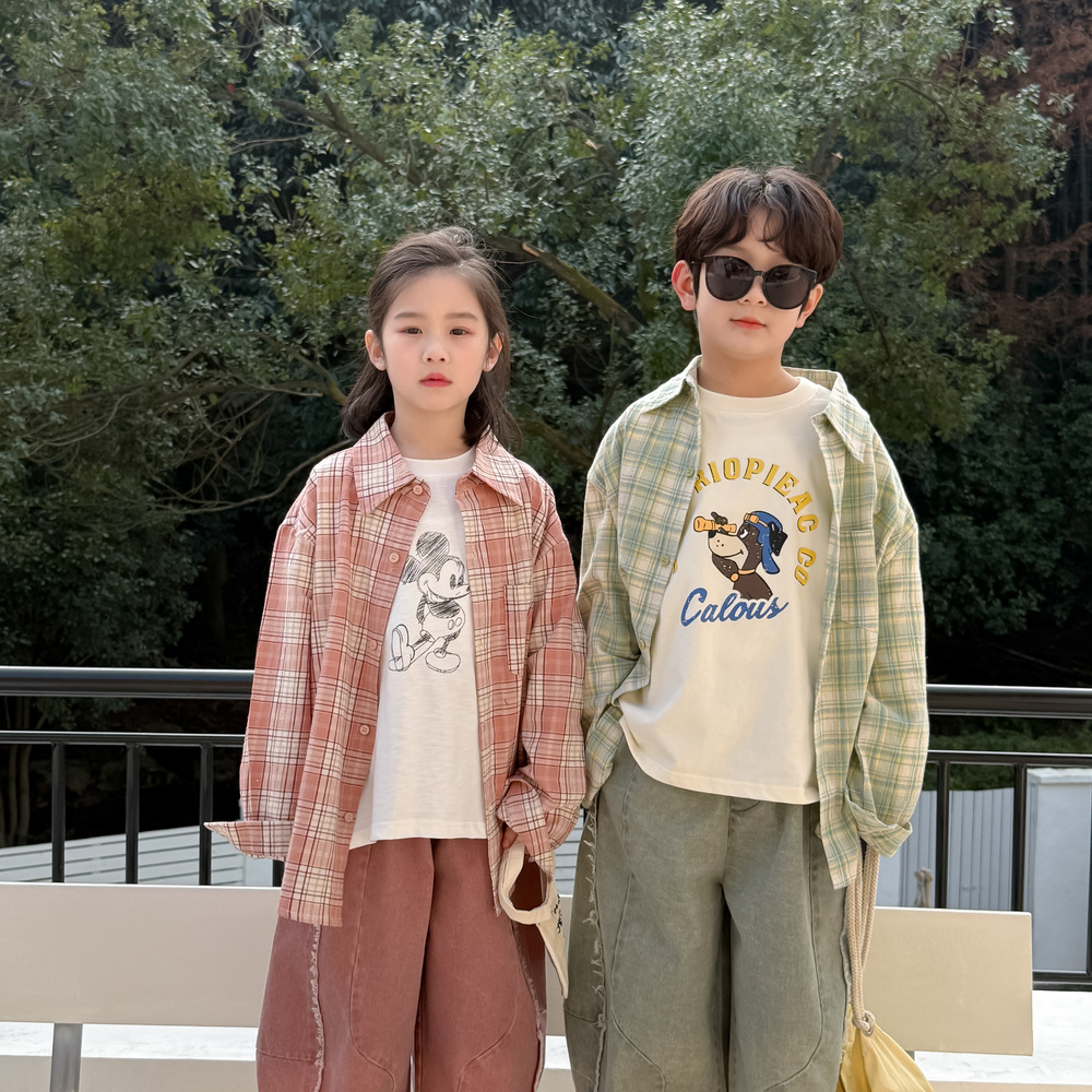 #キッズトップス #チェックシャツ #長袖ブラウス #レトロスタイル #おしゃれキッズ #カジュアルコーデ