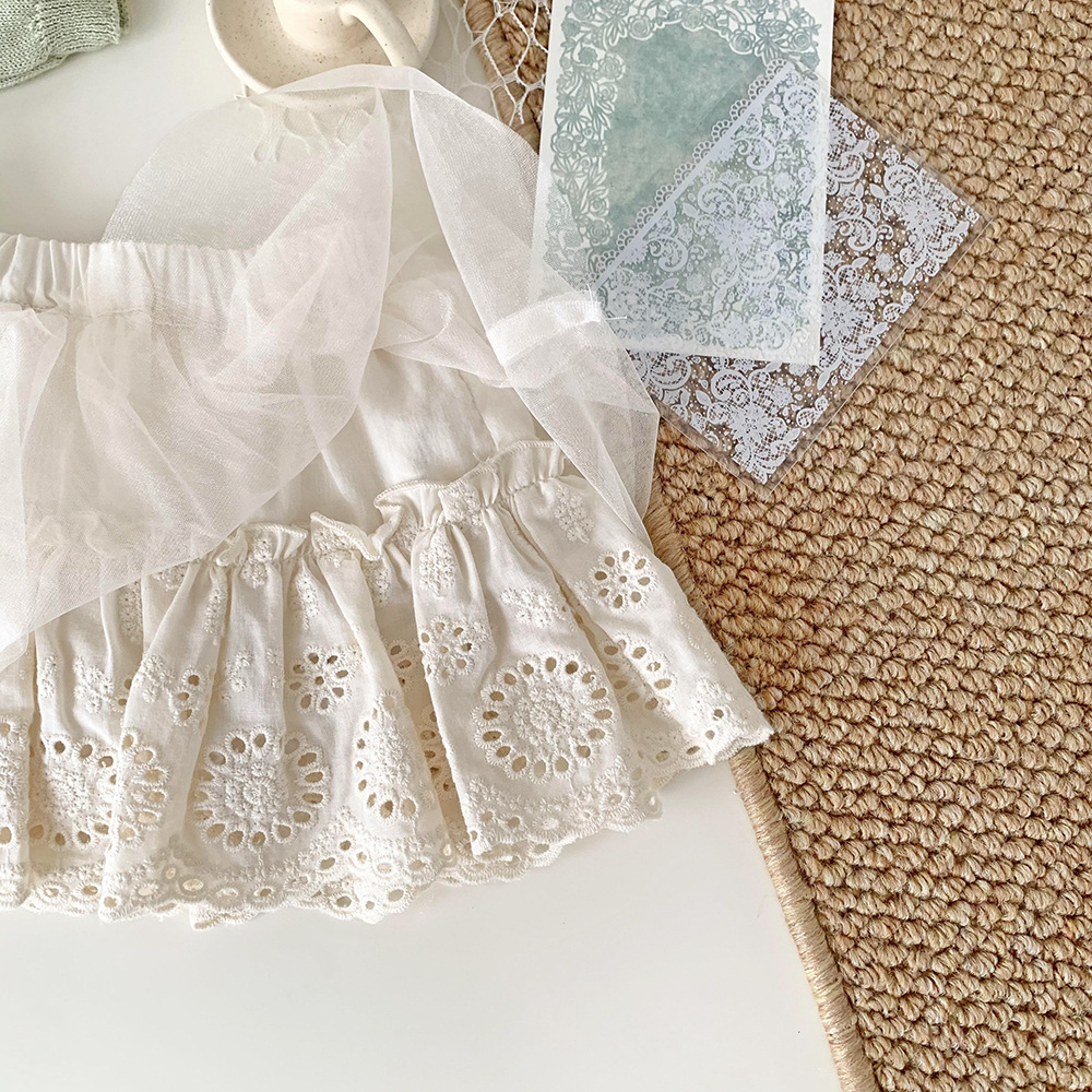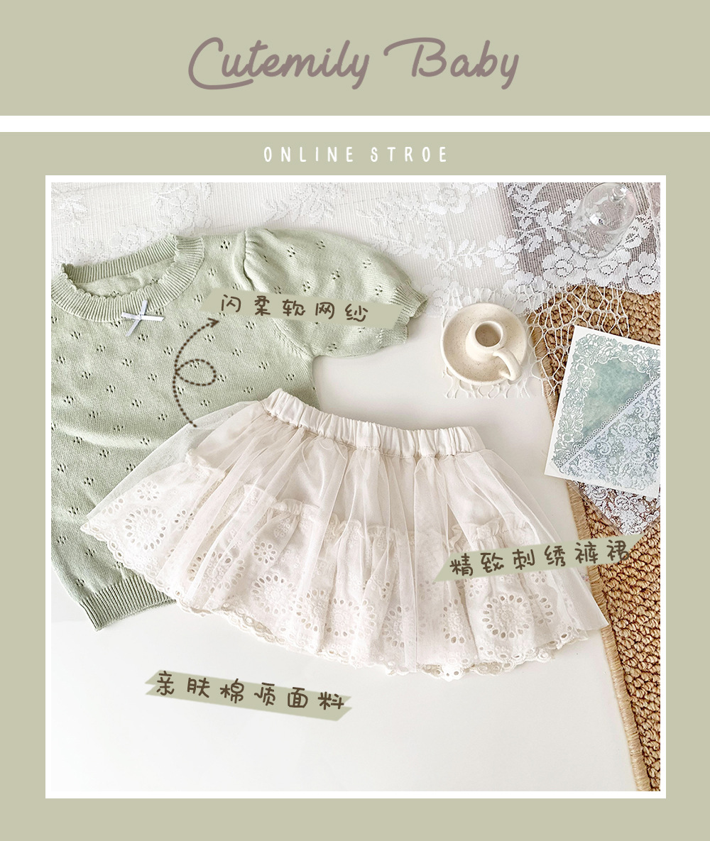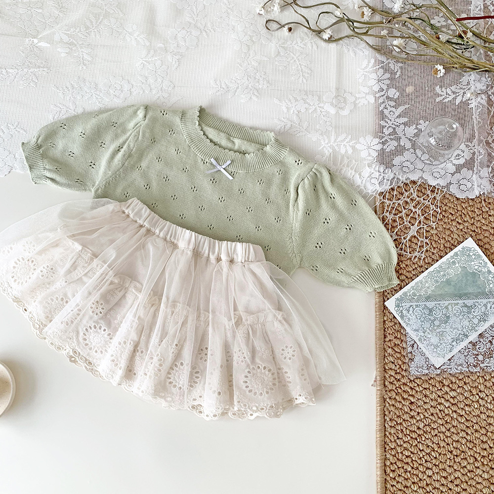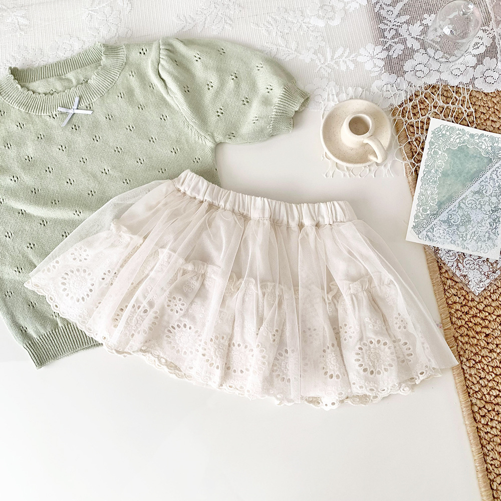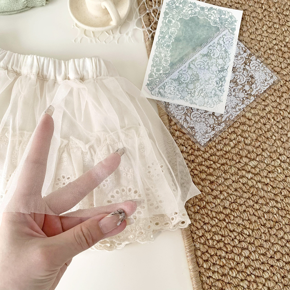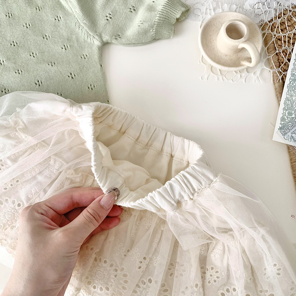 メッシュチュールレースミニスカートは、繊細なレースとふんわりとしたチュールを重ねた華やかなデザインが特徴です。軽やかな素材感で、動くたびに揺れるシルエットが女の子らしさを引き立てます。ウエストは総ゴム仕様で着脱がしやすく、普段使いからちょっとしたお出かけまで幅広く活躍します。インナー付きで透け感を気にせず着用できます。