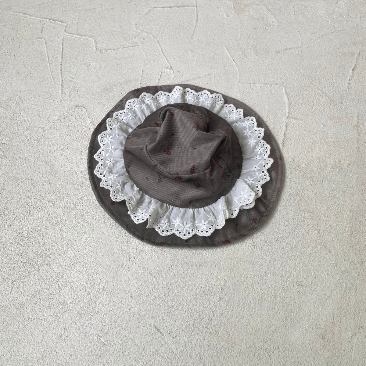 フラワープリントレースフリル長袖ワンピース 帽子セット【mh0009676】