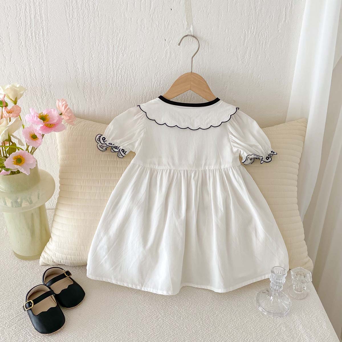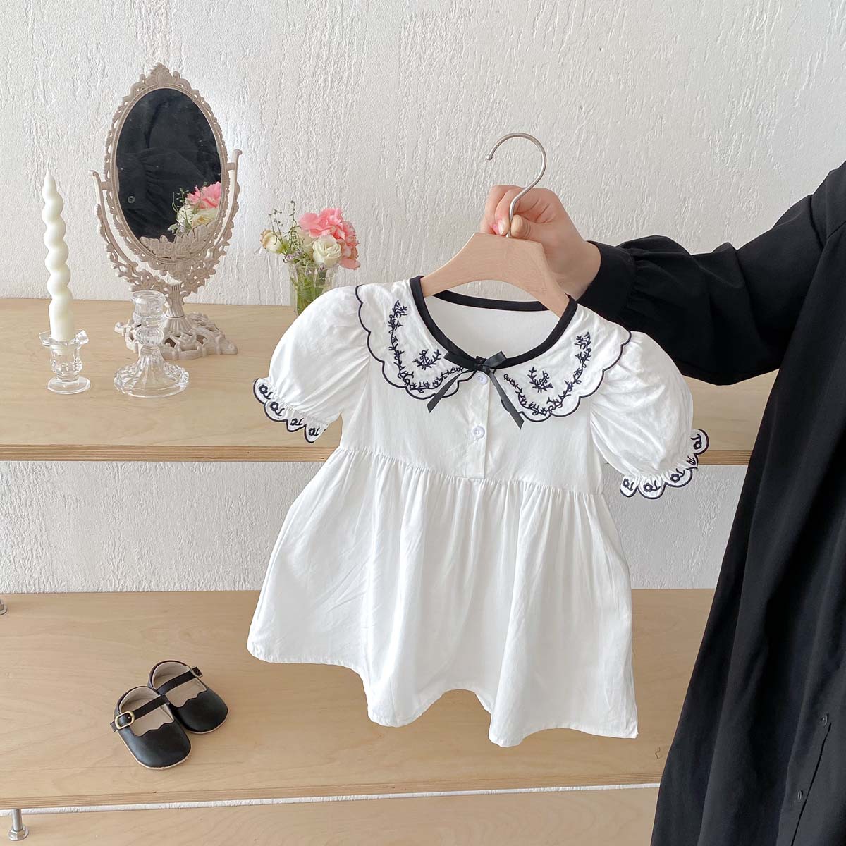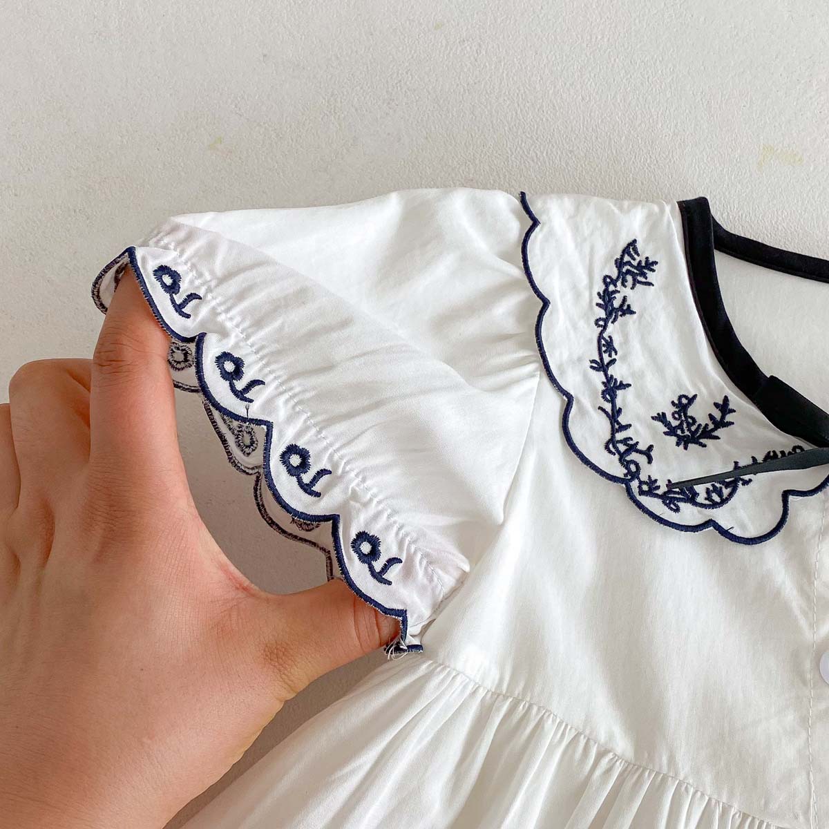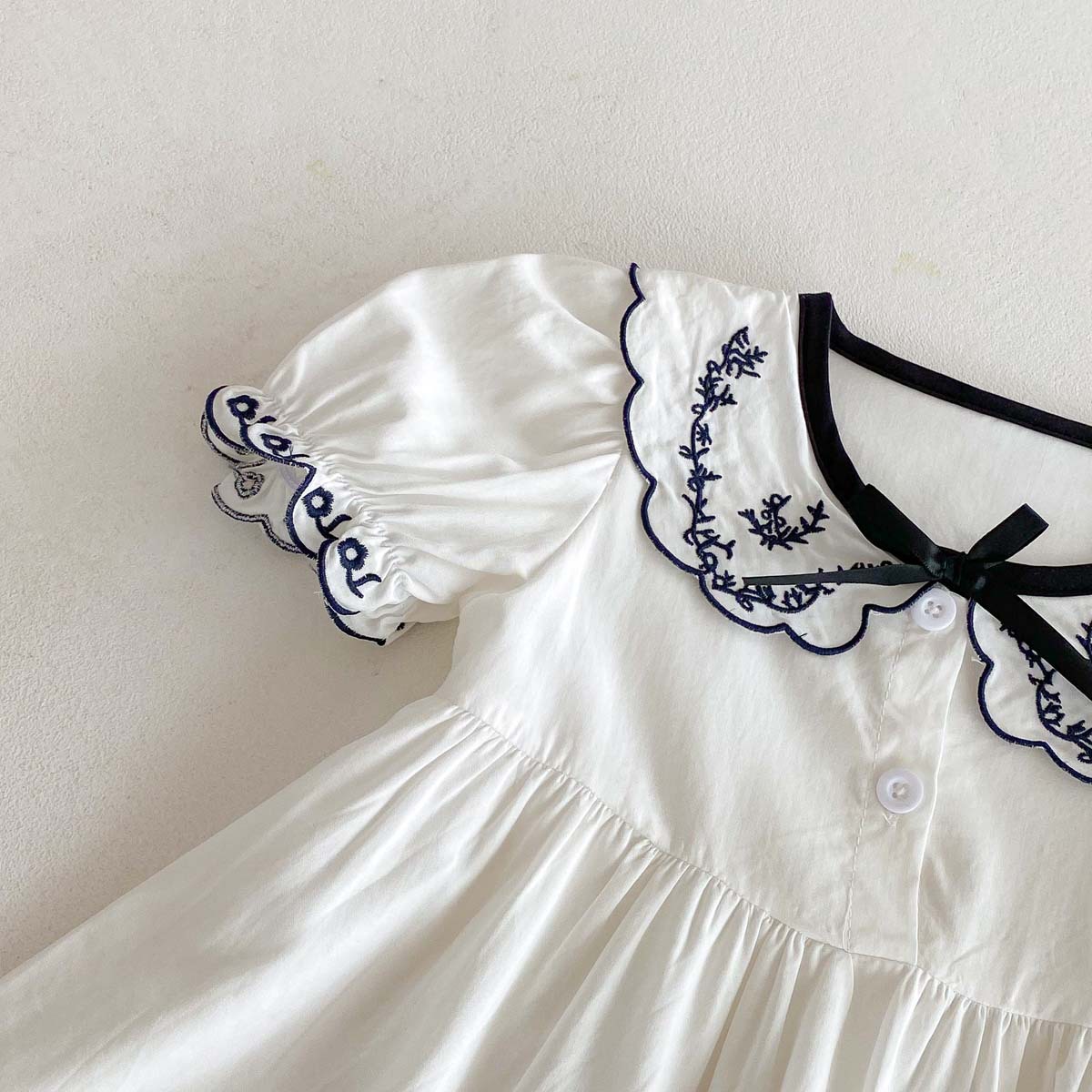 #キッズワンピース #子供服 #女の子 #半袖ワンピース #フラワー刺繍 #パフスリーブ #リボン #夏物子供服 #プリンセスドレス